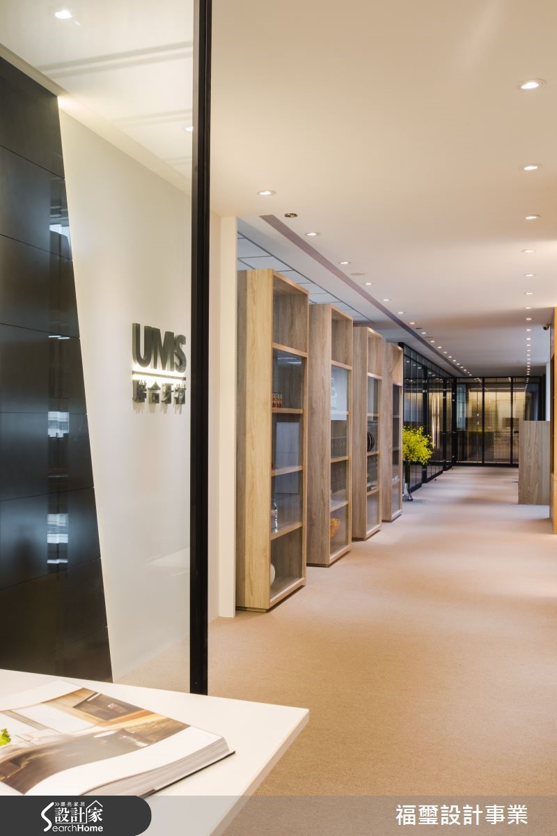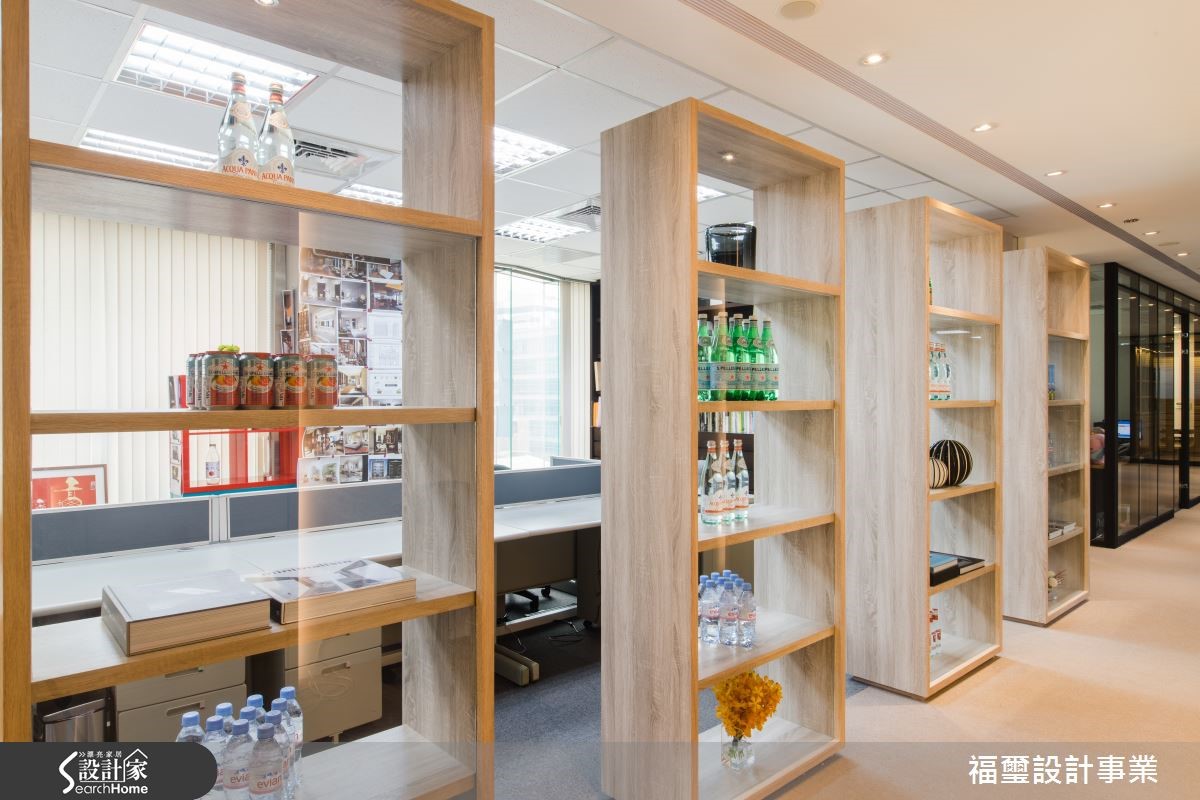 每个上班族至少要在办公室待满8个小时才能回家放松,如果在办公室就像在家里上班一样舒适,不管待多久都能让员工心甘情愿吧!设计师善用采光与材质,为牙材公司打造美好的工作环境。 【注入木质的开放空间,添温馨感】设计核心为利用多维木纹材质及颜色,将413平方米的办公空间区隔为数大区块,包含茶水间、会议室与主要办公区域等。每一个空间皆有着独特的氛围,但经由设计师调整色调与材质后,让整体空间不显突兀。进入迎宾区域,利用黑白相接的墙面与间接照明,营造时尚俐落的形象。更以玻璃与镜面材质打造会议空间,显示开放的企业氛围。沿长廊入内,左侧摆放的数个落地柜,身兼办公空间的隔屏与置物功能,却不失整体通透性。依部门区别,有着舒适或沉稳的风格定调。包含大量木元素的会议空间,壁面与地面采用深浅不一的木材质,给予员工与众不同的发想体验。临窗的独立办公室,则以木材质与灰玻营造质感与朝气,特意设置的酒柜,更看出领导人的品味不凡。