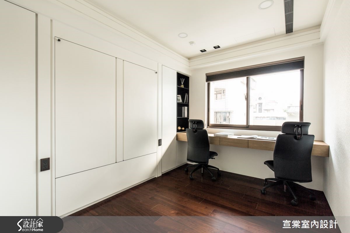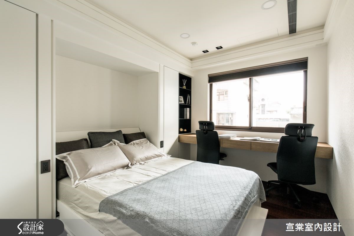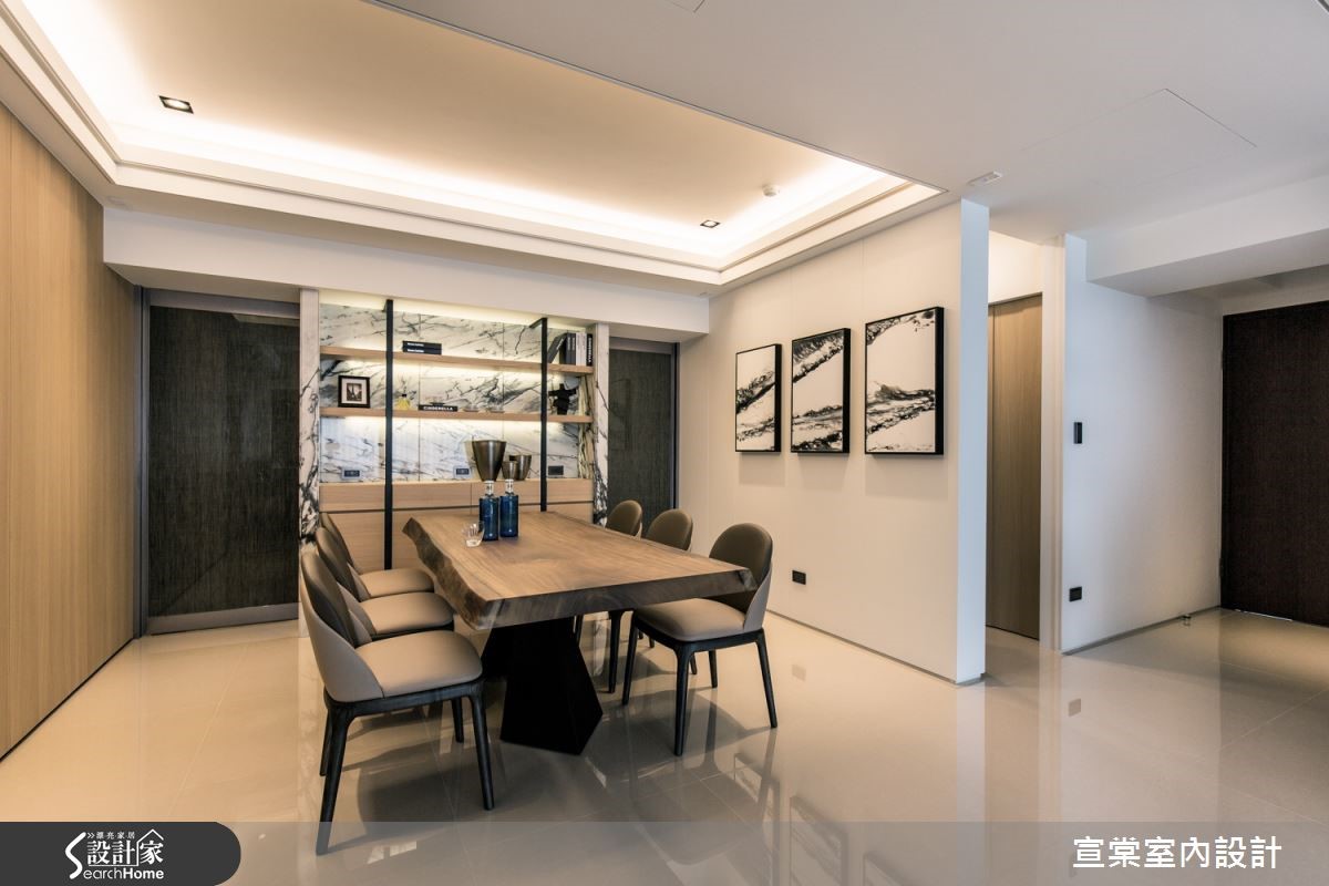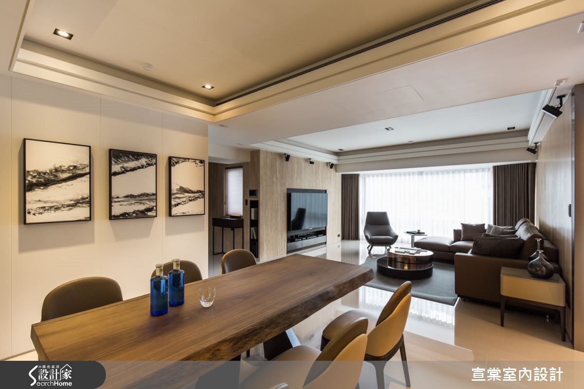 走进本案,便能感受优雅气息,合宜的空间配置与机能规划,让日常生活不显局促。温润的木石材质和框线结构,勾勒出人文质感的居家氛围。除了美观的外表外,设计师更赋予收纳及量身定制的生活设计,满足屋主对舒适度及机能性的需求。【善用智能家具,活络空间使用】开放式空间结合客厅和餐厅,营造更加宽广的公领域。但原先规划的开放式餐厨,在考虑到屋主平时的下厨习惯,以及燃气灶正对客厅的油烟困扰。设计师在厨房与餐厅之间增设隔断,两侧并设置玻璃推拉门,形成弹性的口字动线,满足屋主需求和生活上的便利性。主卧室融入电视墙,有充足的收纳展示空间丰富机能性。此外,由于屋主父母定居国外,回台时间较短,因此长辈房采用可收纳的智能式掀床设计,平时可以将床铺收纳隐藏,成为小孩的阅读游戏区。