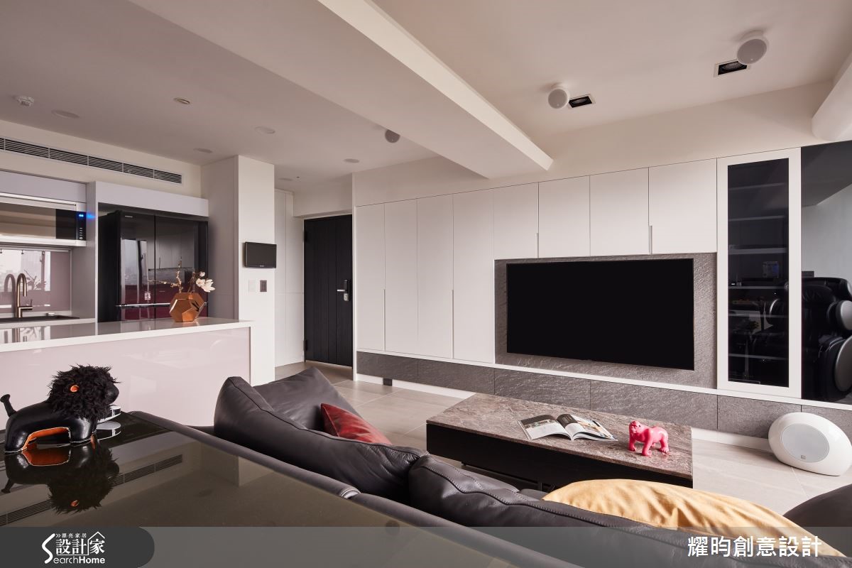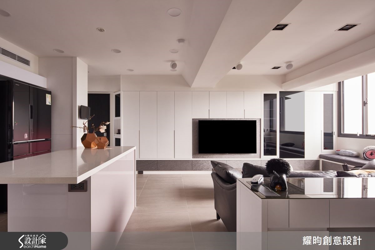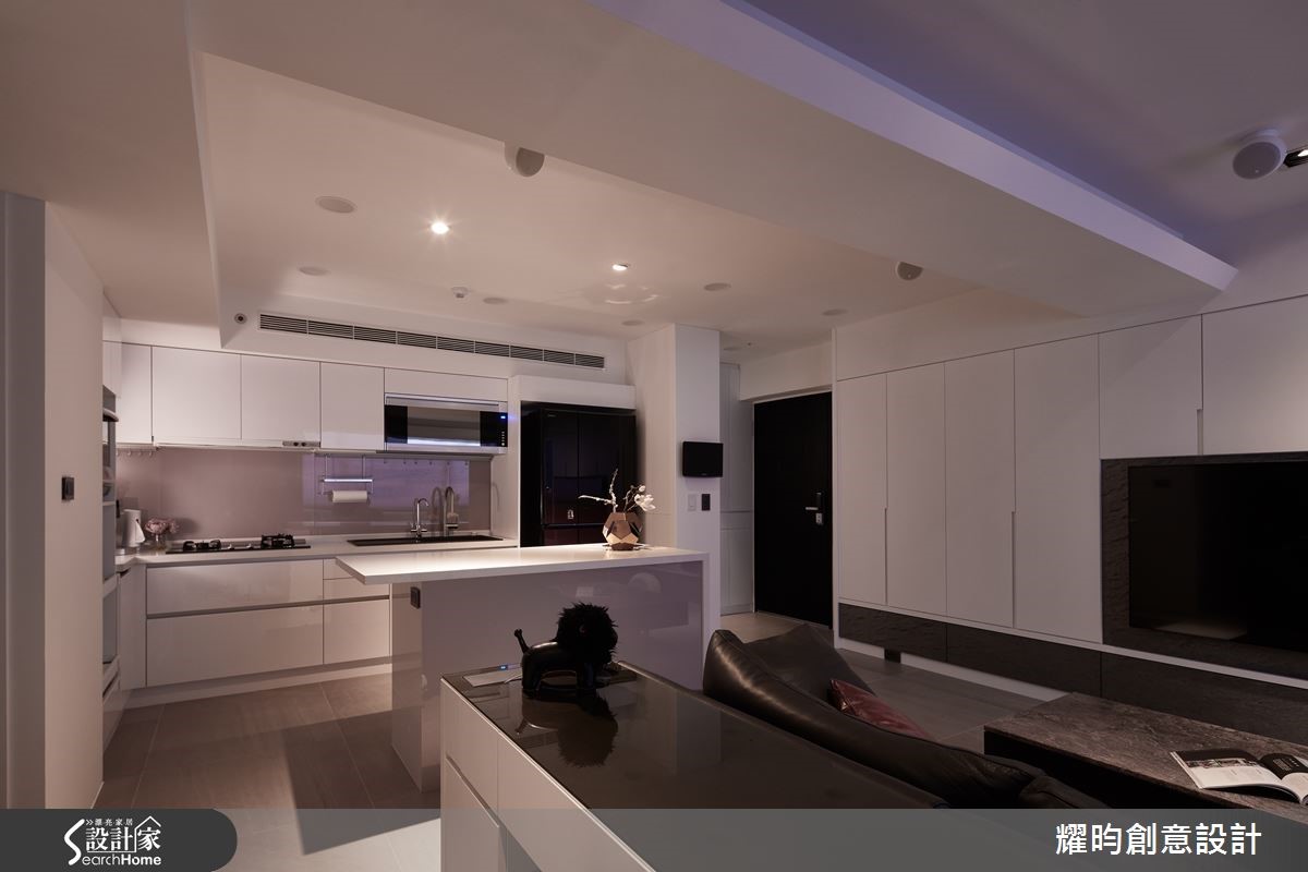 76平方米老屋,原有的柱子及墙面出现歪斜情况,设计师重新修整格局,透过合宜的空间规划,纳入完整生活机能与充足收纳,并以女屋主喜爱的黑、灰、白等简洁色调,创造摩登北欧的都会性格。【开放动线,串联公共场域】客厅、开放式厨房,以及书房,辅以弹性自由的开放动线,勾勒舒适清爽的北欧风格。比例宽敞的厨房附加中岛吧台,增加备料的使用空间及几张单椅,也能是招待客人的用餐区,再妆点浪漫柔和的灯光,更添餐饮时的质感温度。【简约色彩,收整干净视觉】为了着重收纳机能的屋主,设计师自玄关、客厅至卧室,皆有收纳安排,并以简洁的色调及利落的几何手法,收整干净视觉;其中,卧室特地划分更衣室,利用整齐有致的柜体,将衣物分门别类妥善收藏,满足屋主收纳需求。设计师在本案例当中,运用黑、灰、白的简约色调,透过灯光的柔和佐饰,不但不显冷调,洁净的氛围中,也蕴含充足收纳,营造清爽而实用的都会风格。