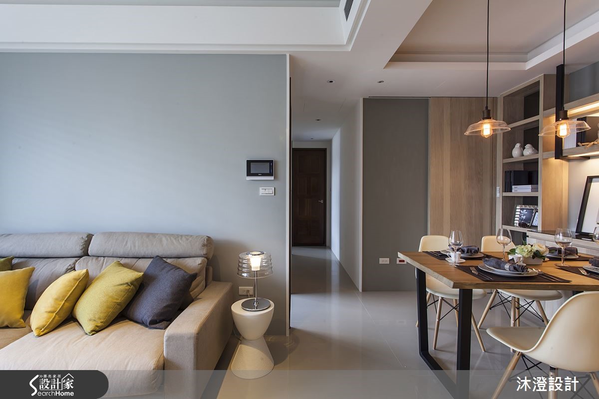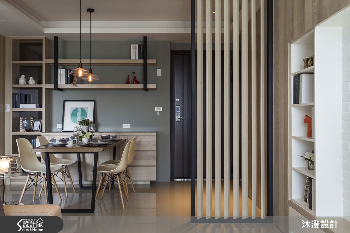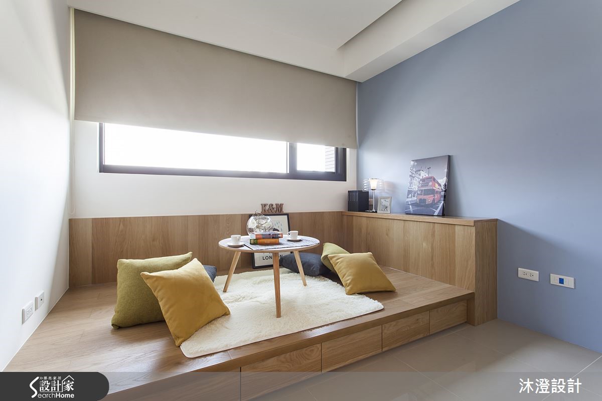 106平方米北欧宅,设计师巧妙运用开放设计扩增视野,并重新调整格局,且考虑主卧深度过小,重新规划衣柜动线,让公共空间能享有自在生活,快跟着小编一起来看看吧!【光线大量流入,造自然北欧感】玄关屏风以格栅方式呈现,分隔出内外界定,并导引光线流通;公共空间运用不同色阶的抱枕展现风格,透过白色文化石墙面搭配轻浅木皮铺设,以灰绿色调刷于局部墙面,当光线流入空间,北欧生活氛围自然展开。和室空间在架高地板内隐藏收纳,兼具美学与实用机能,墙面采熏衣草蓝紫色调,与黄色抱枕相互搭衬,营造色调对比的温暖生活氛围。卧室可见床头墙做出立体的垂直线性设计,无形中拉长立面高度,且让床头与书桌相连,做出简约不复杂的机能规划。