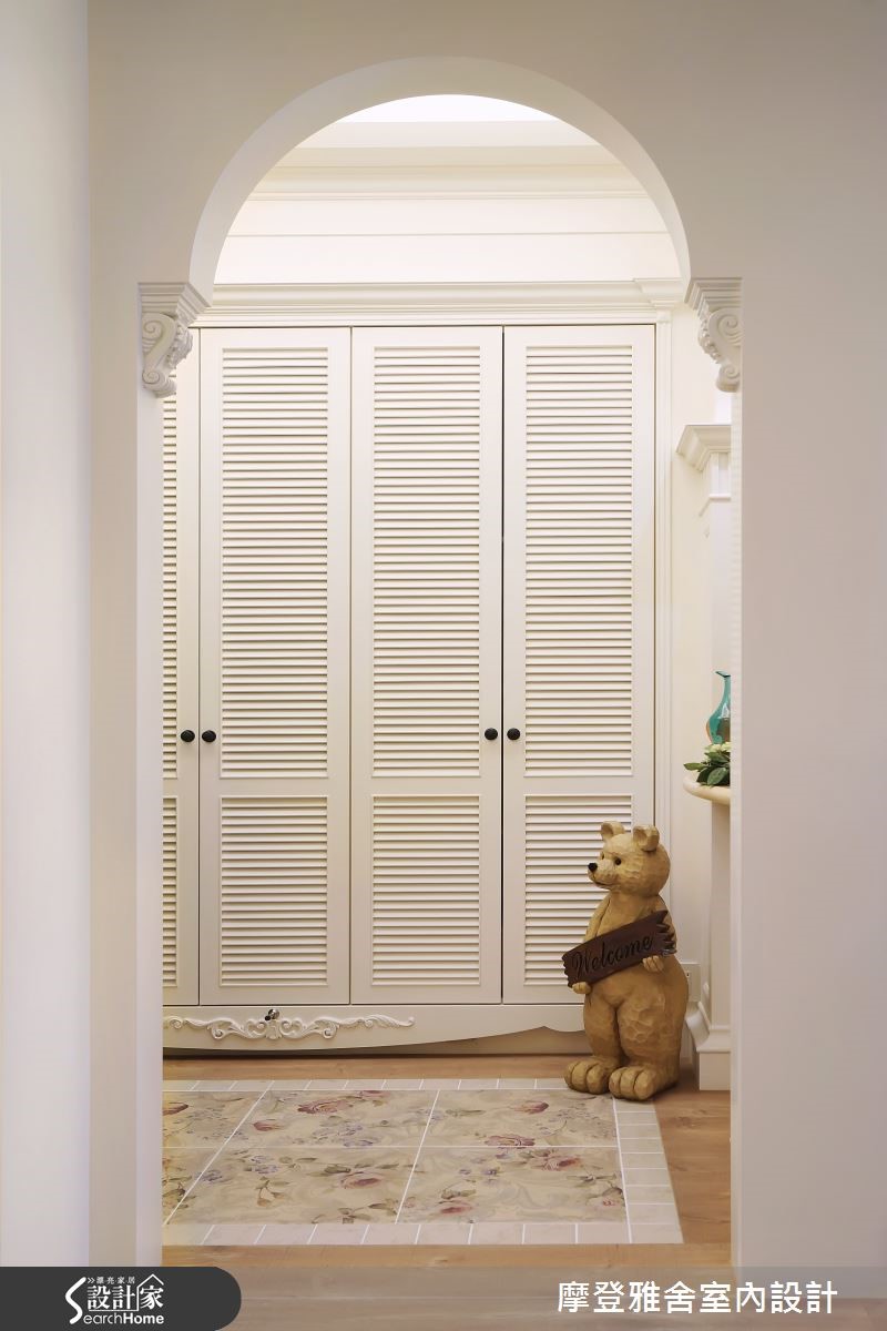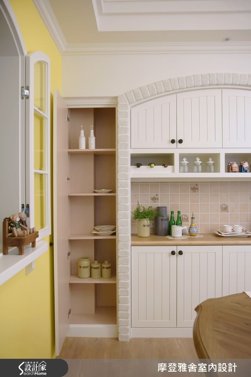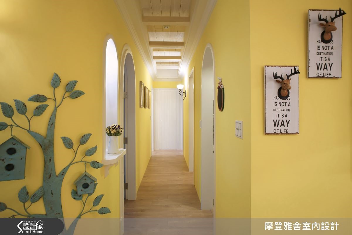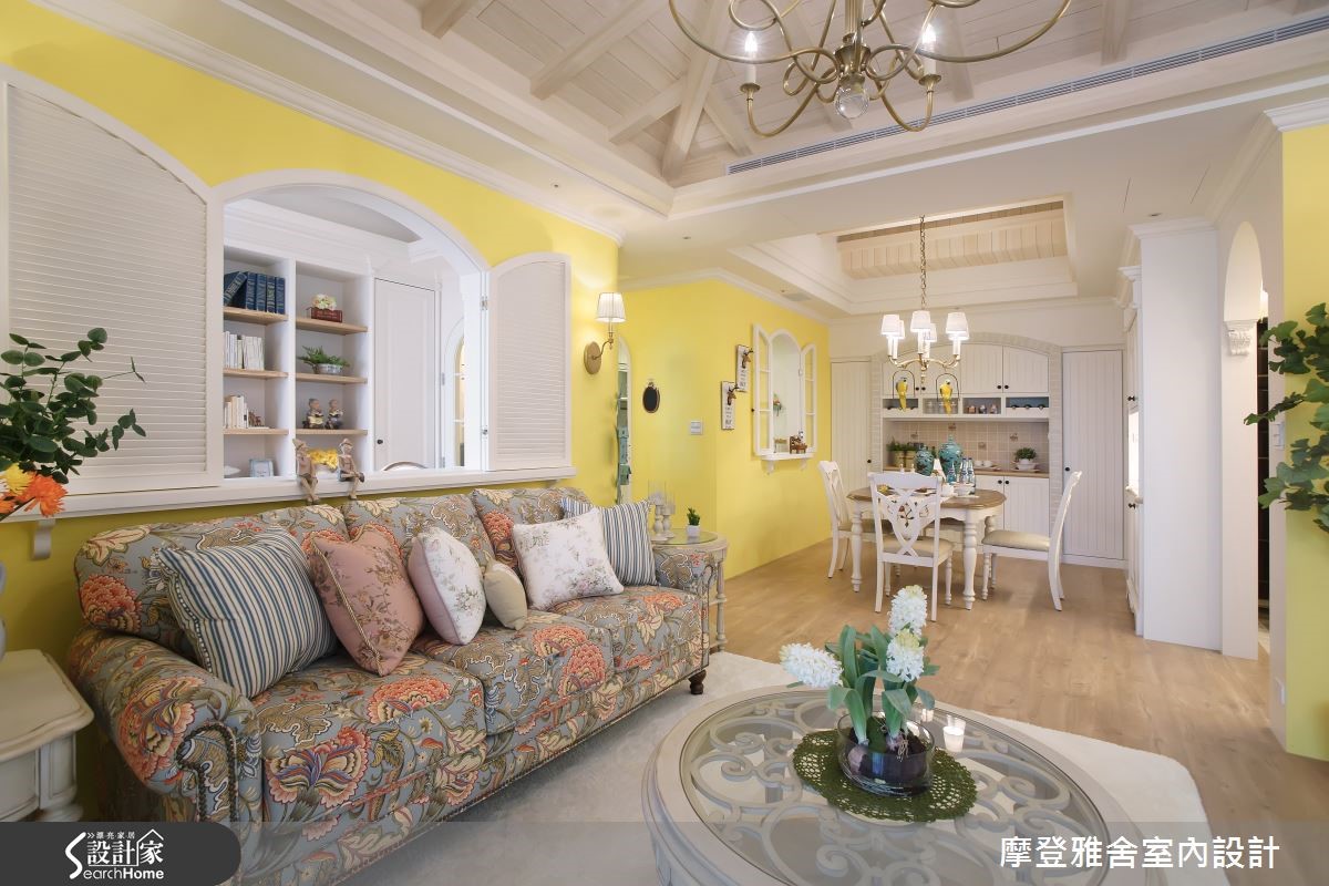 愈来愈多的单身女有能力购屋,而乡村风往往是很合适的选择,乡村风特点细致、有度假感,能表现出女性的魅力,且不拘泥形式,可随着屋主个性需求,从细节做出变化,在此139平方米空间内,即可见完美的演绎。【领域规划完善,妆点缤纷配色】玄关铺排复古砖,与室内场域界定,挹注质朴、亲切的小镇风情,并加入圆润优雅的拱门、略带法式感的雕花造型,增添视觉层次;室内则重新隔断,区划必要的使用场域,陈设上则点缀色彩缤纷的抱枕、窗帘等软件,创造舒适的画面。【打造度假氛围,享受雅致生活】坐拥3米3的屋高条件,于天花上施做斜屋顶造型,以厚实木作带入悠闲的度假风情,电视墙则嵌入壁炉造型,加入手抹泥材质,呈现温朴手感;同时在书房、餐厨区结合窗型设计,增加场域间的互动,并规划书柜与酒柜,满足收纳机能。