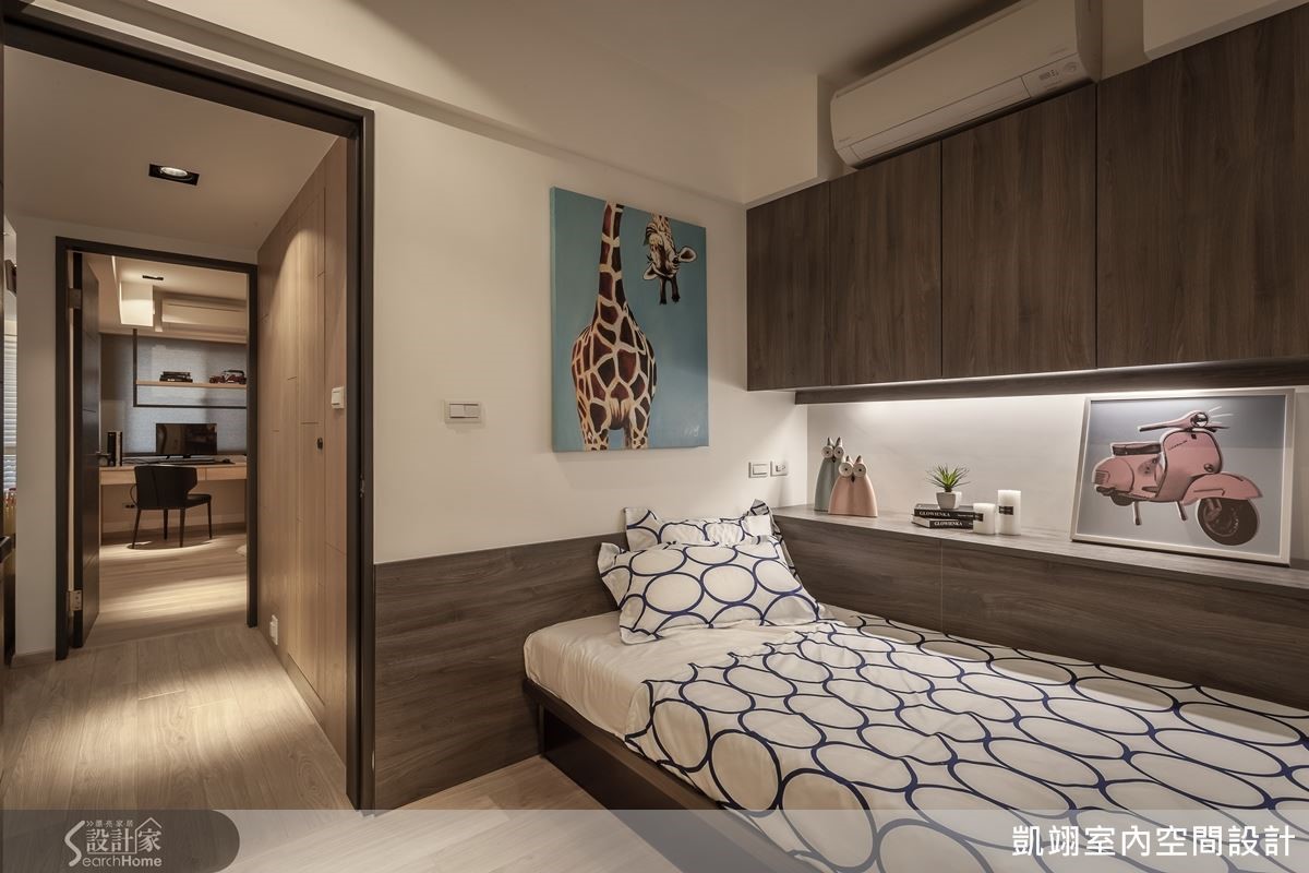 梁信文也进一步谈到,屋主渴望室内有充足的收纳空间,以满足一家四口的置物需求。于是在重新规划格局时,将主卧旁的空间整合并改成更衣间,不仅让主卧机能更加完整,也同时解决部分的收纳需求;至于在其他卧房里,则是尽可能地在天花板、樑下规划了置物柜,善用每一吋空间也将环境中的收纳量做足。