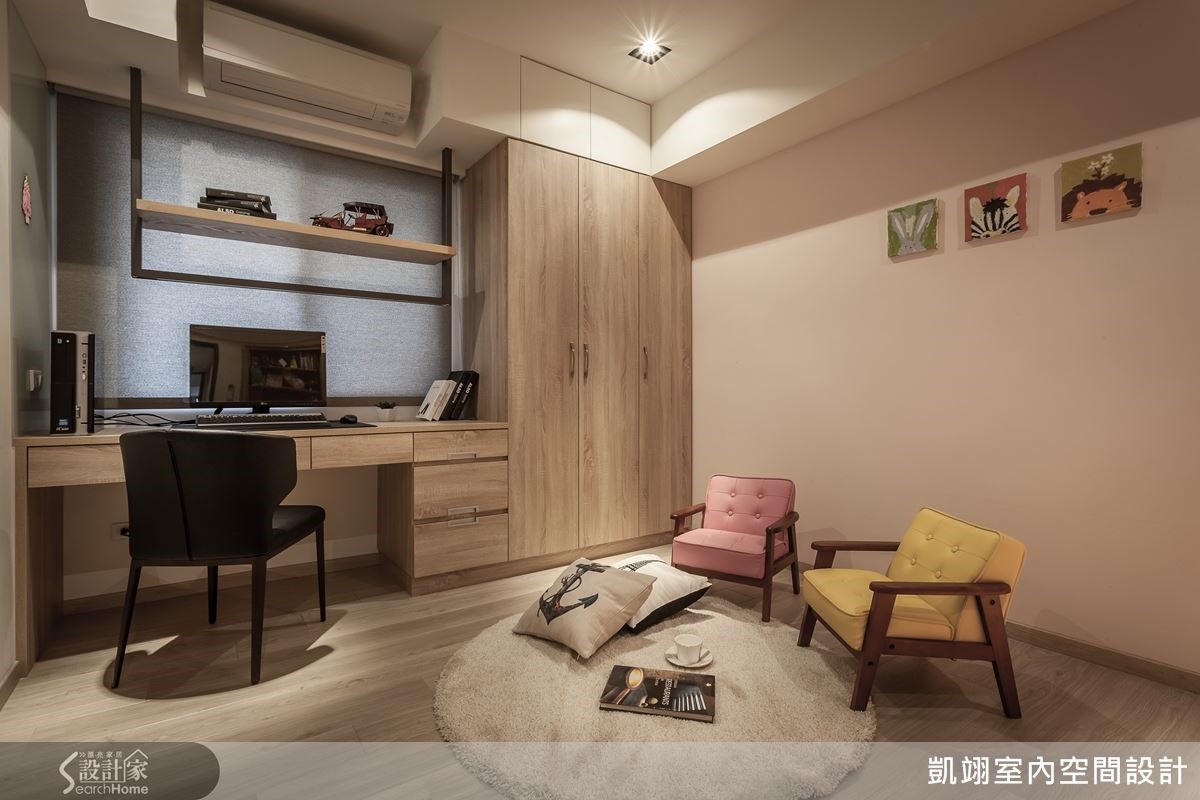 由于现在小孩仍年幼,因此在规划上,已先将基础柜体、书桌等配置好,日后可依需求再做家具上的添购,使用上充满弹性。另外,因孩童有过敏体质,尽量以系统家具为主之外,在电器配置上也特别留心,以利减少尘蟎的堆积而影响身体。