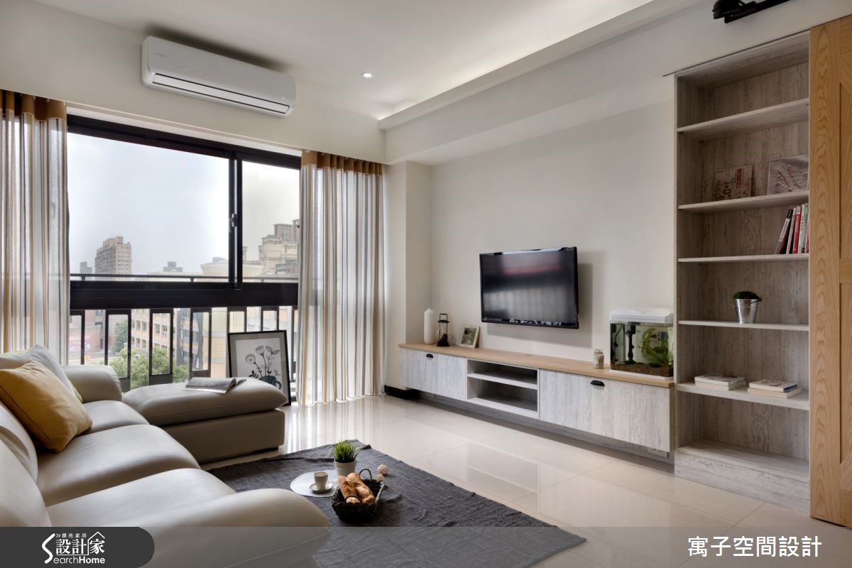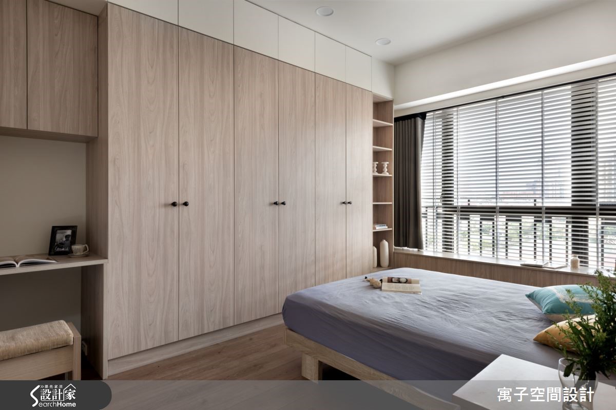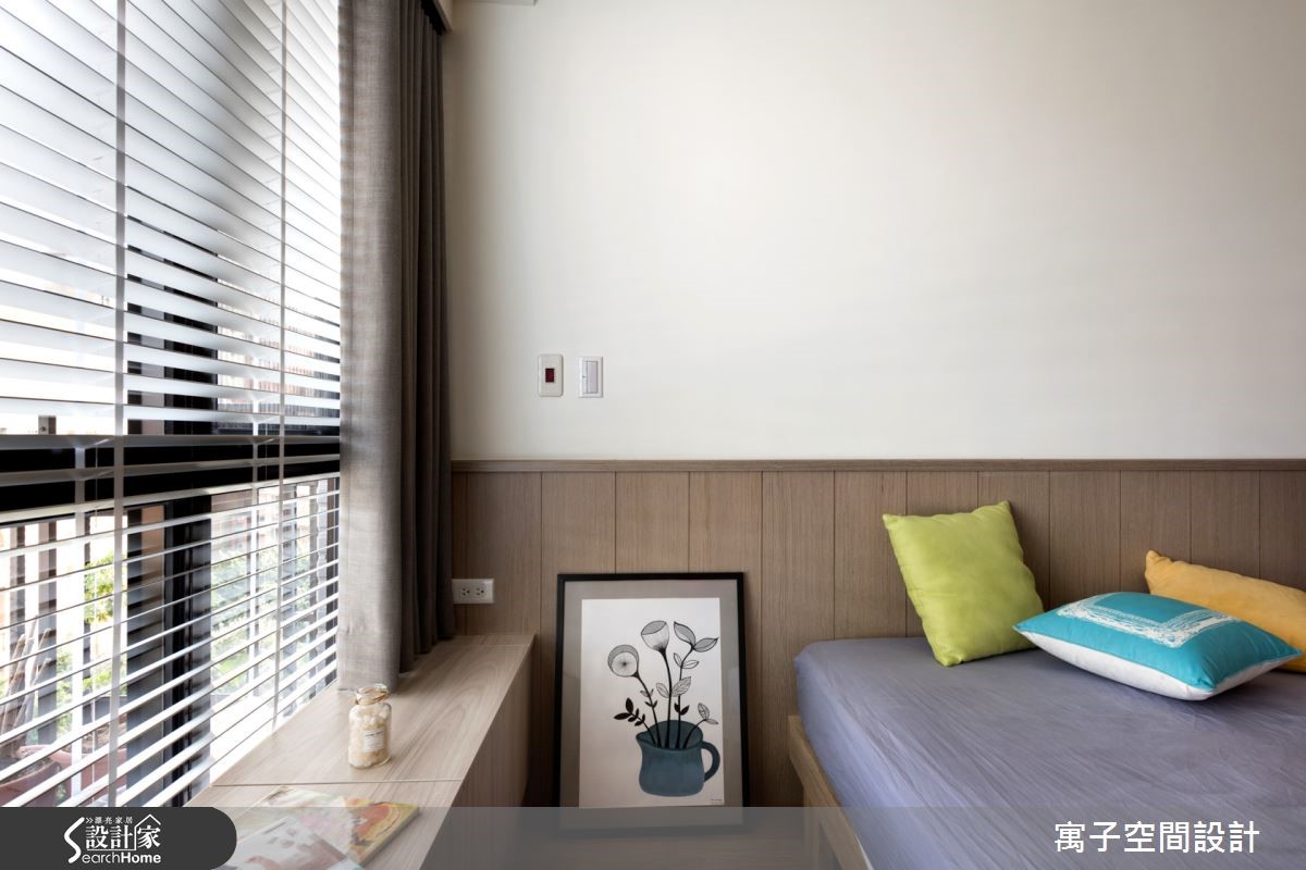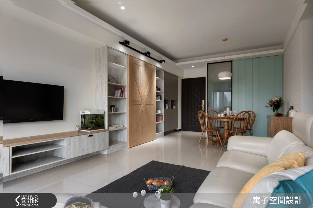 在这99平方米的空间中,设计师以独创的6+3美学,意即6分装修、2分家具与1分布置,为屋主保留1分空白,让屋主得以自行挥洒个人风格,达成10分的空间效果。【谷仓木门,打造显眼视觉】公共空间的设计亮点即是屋主钟爱的谷仓门片设计,由玄关延伸至电视墙的大面积系统柜,以及铝框喷砂玻璃取代制式门片,成为客餐厅与厨房的分界,更引入客厅的采光,打亮厨房。此外,将电器柜藏于湖水蓝壁板后方,搭配文化石墙纸与木质餐桌椅,更添北欧气息。主卧在大面积衣柜与地面采用大量木元素,更善用零碎空间,以开放柜搭配梳妆台,打造完美收纳机能。善用窗边优势设置长型飘窗,展开惬意生活。经由妥善规划的儿童游戏室,将成套游戏组与收纳格柜搭配得宜。