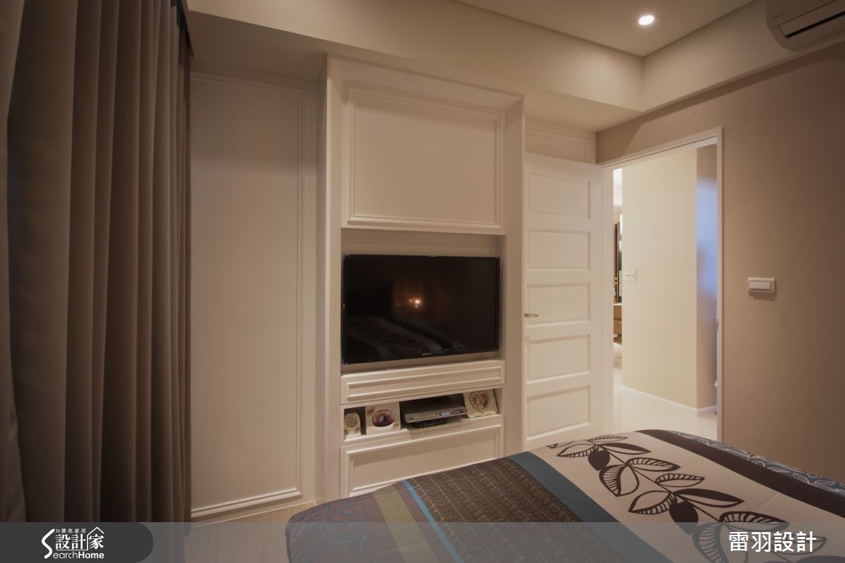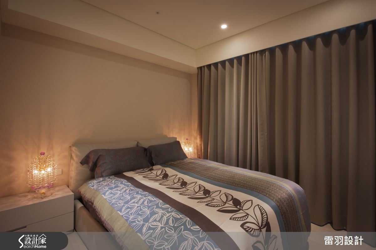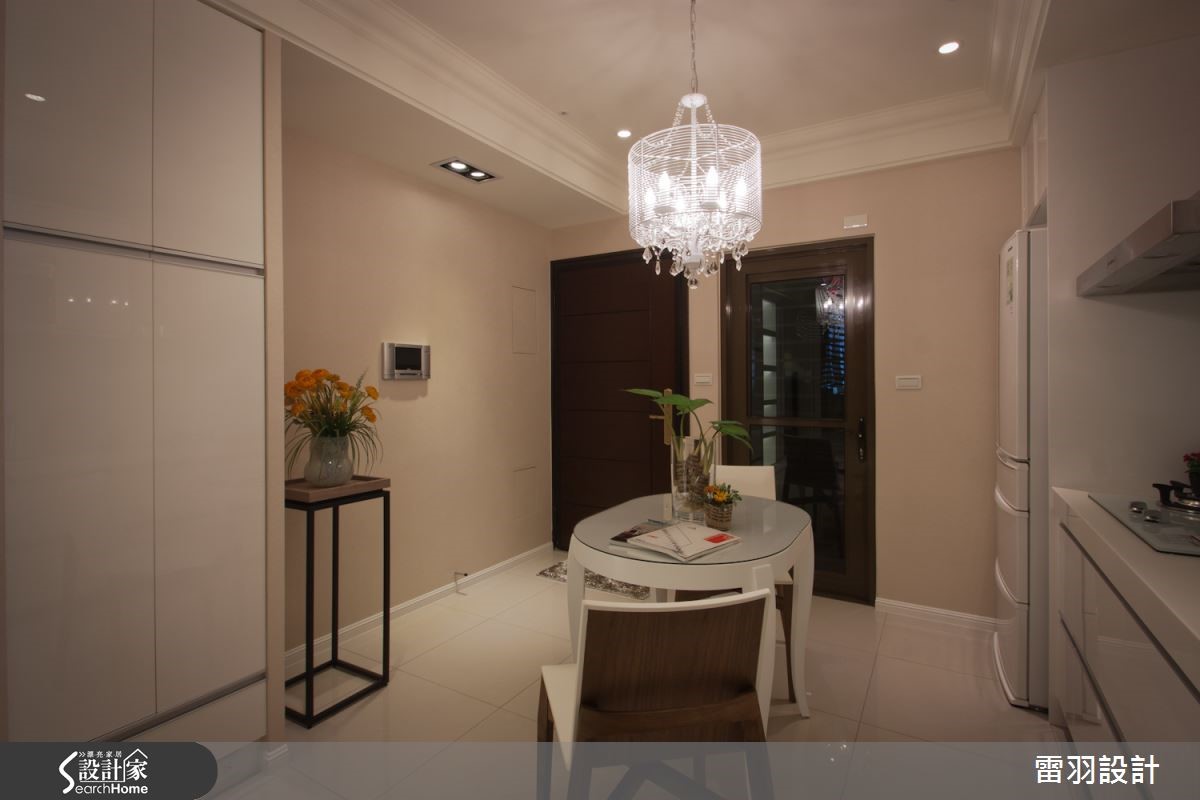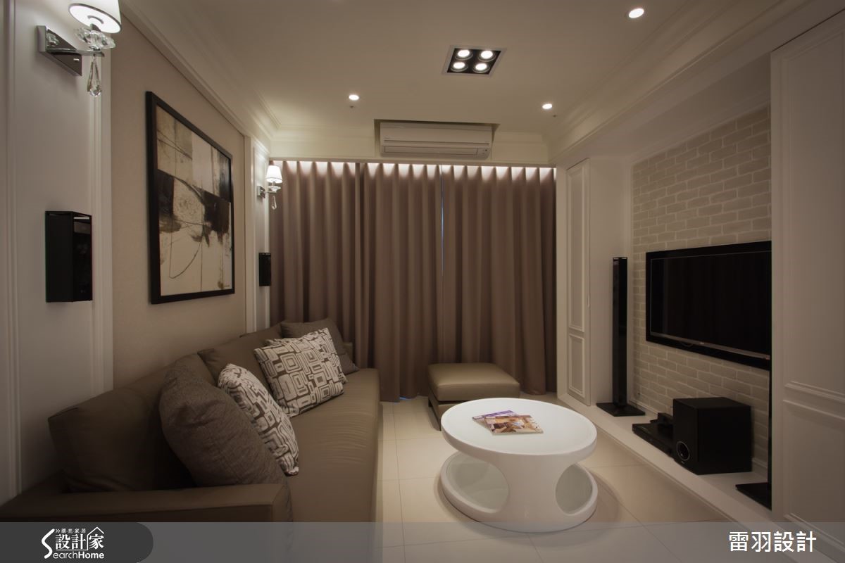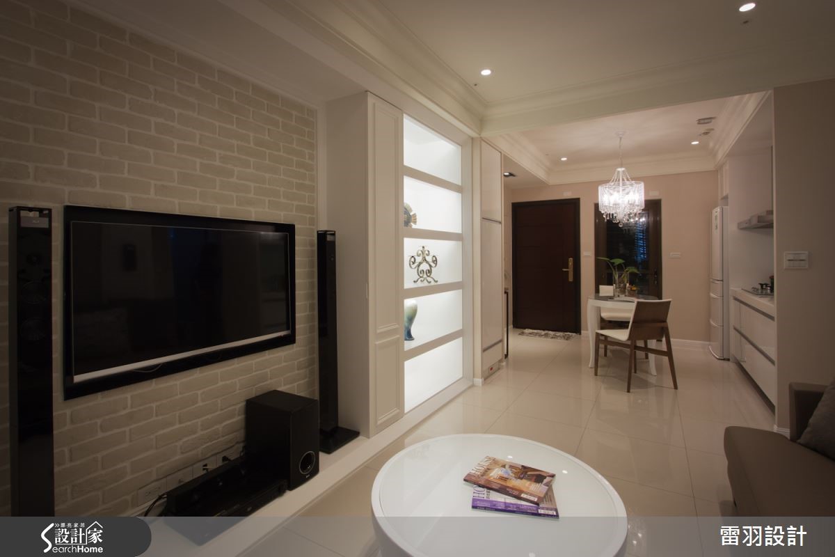 甜蜜夫妻不用大房子,找到属于两人的小天地,再注入喜爱的风格,就是幸福温馨宅。这间仅有56平方米的空间中,看设计师如何用有限预算,打造新古典的幸福小窝。 【善用线板,点缀精致古典风】由于空间有限,设计师抹除玄关界线,打造开放客餐厅空间,藉此延伸视觉效果。设计师在柜面与天花利用线条纯粹的线板与水晶灯,提纯新古典风情。电视墙则利用文化石墙纸,搭配浓淡相宜的大地色家具和窗帘,营造温润感受。主卧延续公领域手法,采用线板修饰柜体,让风格趋于完整。整体巧妙使用柔和的大地色和白色,营造轻柔的氛围。而空间虽小,但卫浴却不显马虎,干湿分离的设计与大面积镜柜,让屋主的生活更加清爽舒适。