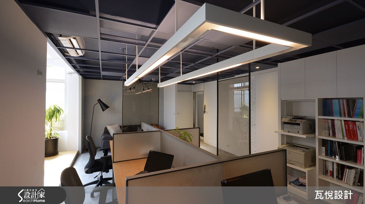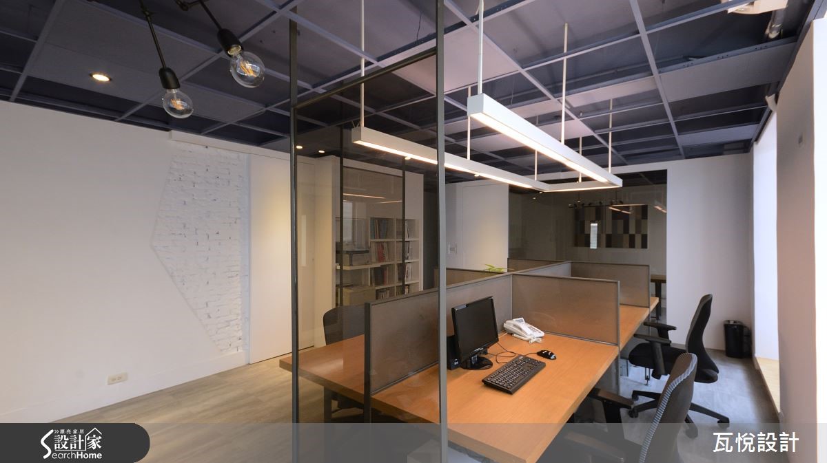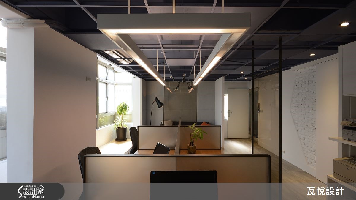 以Loft风定义的93平方米办公室,善用材质,实践环保再生的"Recycle"概念,并采用纯白色作为色彩基底,营造纾压无负担的疗愈氛围,纾解上班时沉闷的心情。 【不做吊顶和玻璃隔断,开阔视觉】清爽明亮的氛围,改变封闭式的传统办公室印象。空间配置上,除了一般的办公区、会议室,还有简单舒适的小客厅,在繁忙的工作之余,也可放松休息。取代实体墙面,改以通透的玻璃隔断设计,不仅彰显各自空间的独立性,也让充裕日光能在空间中自由流动。天花不做吊顶,涂上蓝紫色作为底衬,展现温和理性的空间氛围。利落的铁件设计保留局部空旷,创造空间的高度层次,化解压迫感。而铁件吊灯从间隙中穿出,并向外延展,攫取视觉焦点,为工作空间营造出独特的个性风景。