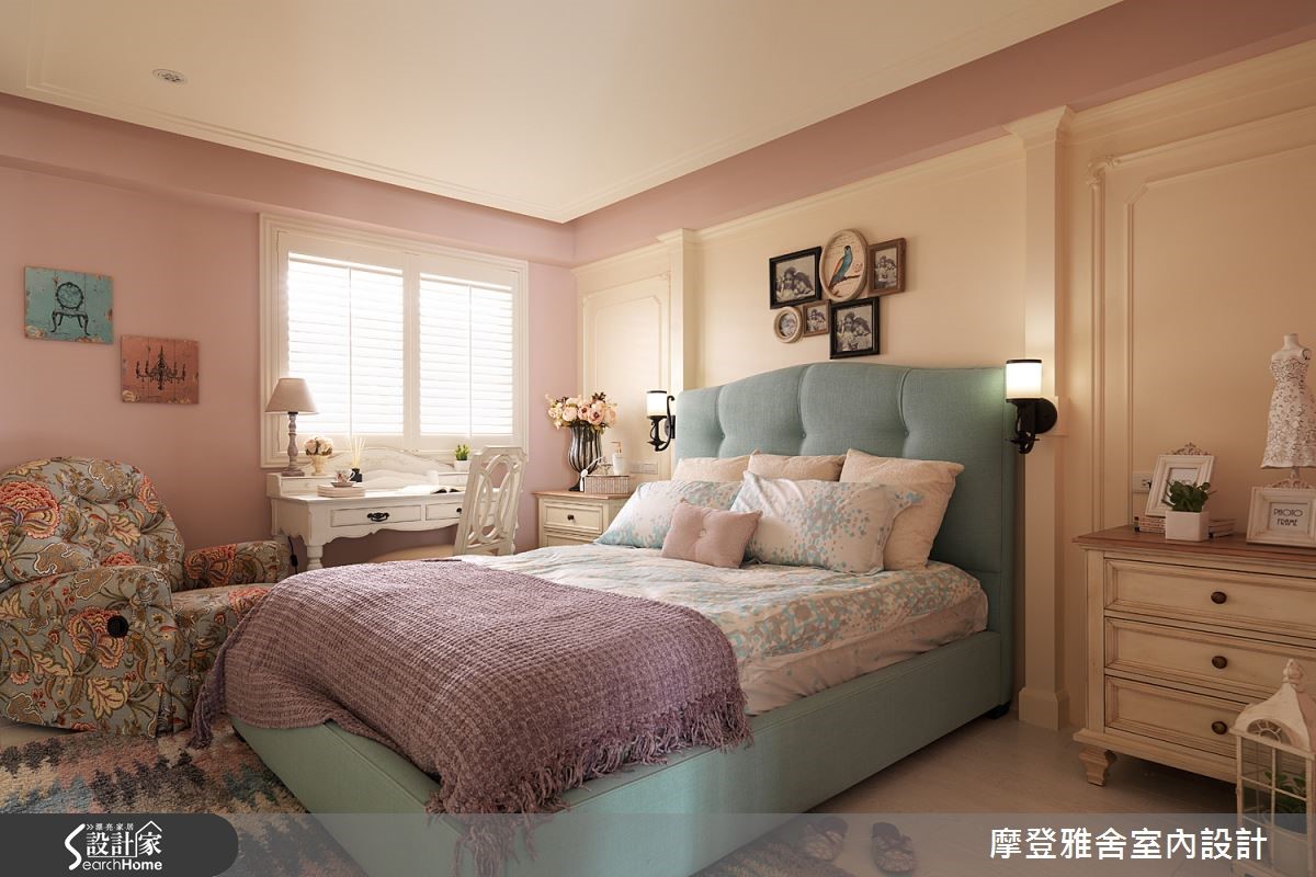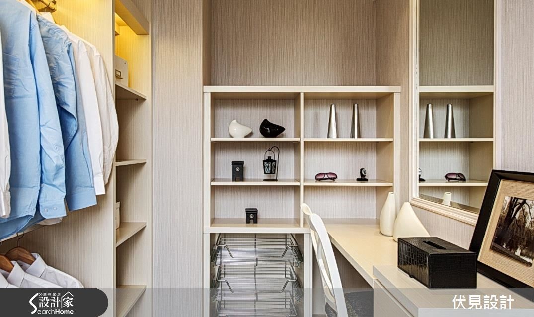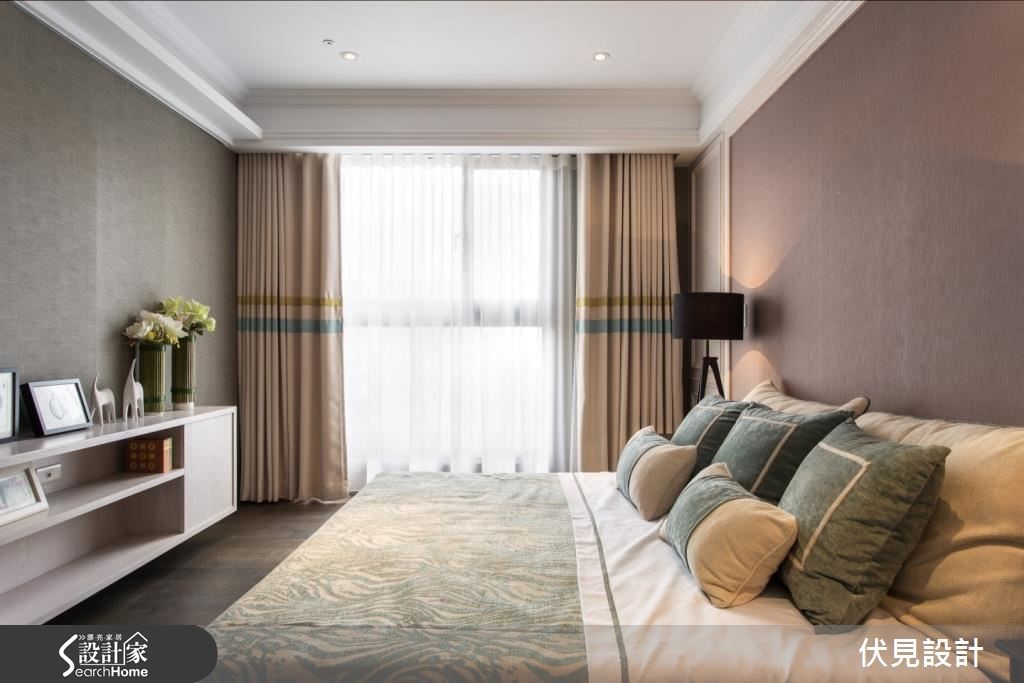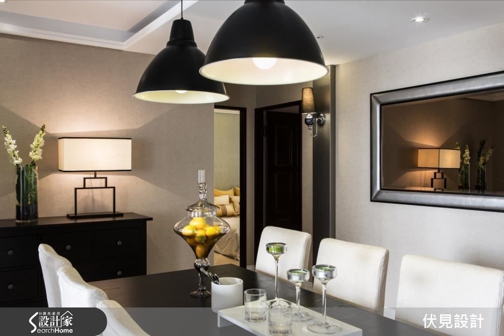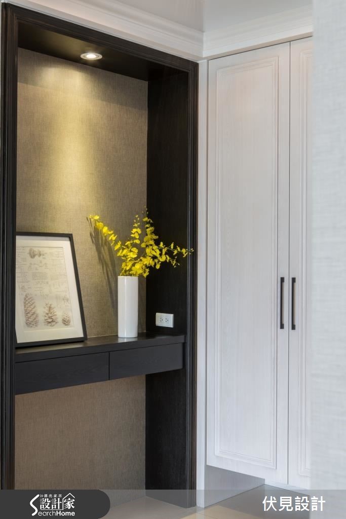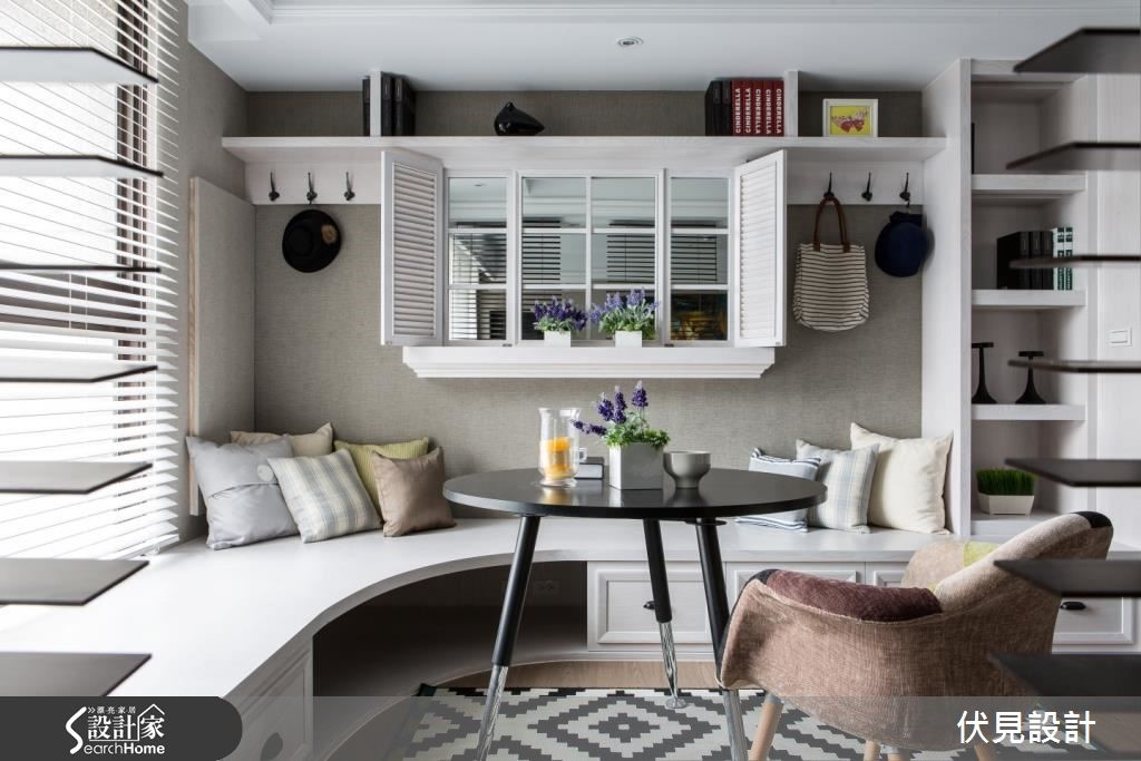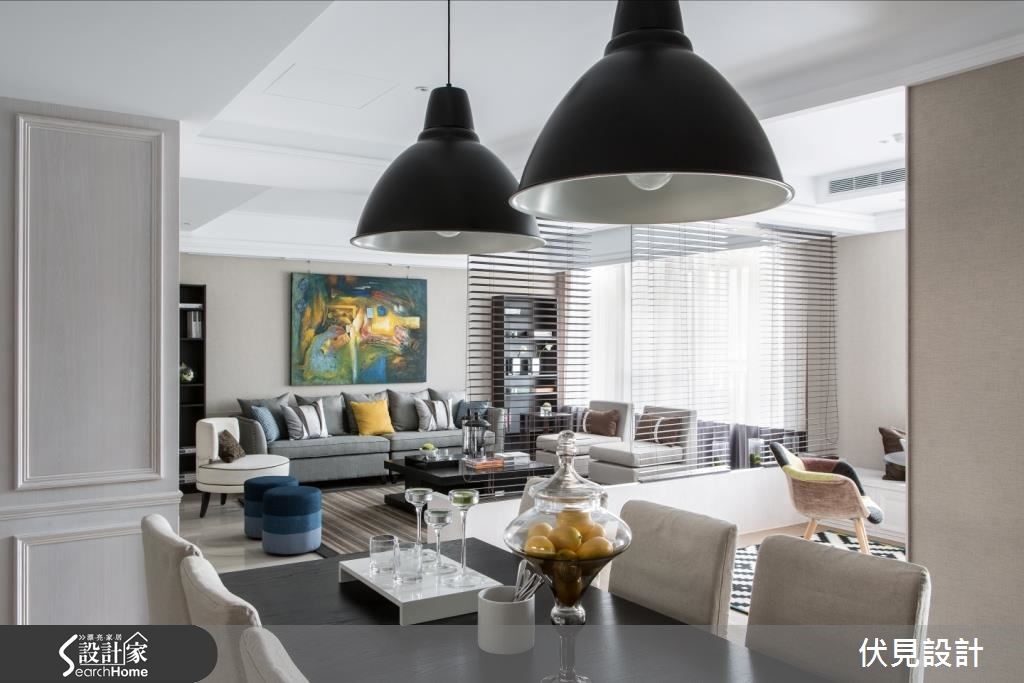 这户美式风空间,挥别了传统的沉重感与繁复细节,让整体结构、色调表现得利落优雅,并注入简约线条设计,营造清爽的空间调性。快跟着小编一起走进来看看吧!【百叶窗取代隔断,视觉更通透】走进居家,设计师规划深色木作展示柜,陈列植栽、灯光为空间增添暖意。一旁则配置玄关鞋柜,满足收纳机能。客厅呈对称式设计,天花妆点流畅的线板,并陈列冷色调家饰给予舒适感。更藉由画作、抱枕点缀少许暖色,创造平衡的色彩布局。客厅舍弃电视墙,以百叶窗取代传统隔断。书房则避免锐角,做出圆弧型飘窗,且让墙面成为空间视觉焦点,既透过层板、柜体做足机能收纳,巧妙设计假窗加入镜面背景,延伸放大视觉。餐厅区则以简约色调,并加入金属色泽饰边,于墙面融入镜面材质与灯光辅助。卧室则延续简约的线板规划,采以墙纸丰富空间。更衣间以浅色木皮铺底,产生放大空间感,且给予充裕的柜体配置,体现清爽简洁的视觉画面。