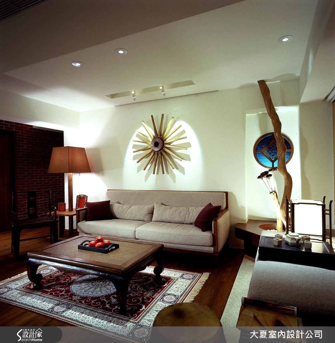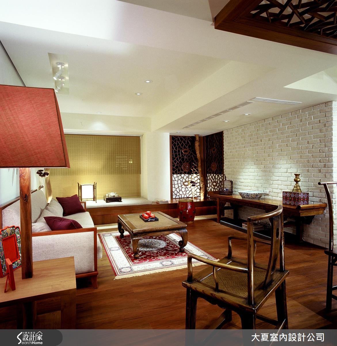 屋主为爱好中国文物的风雅之士,设计师除了替空间挹注东方风元素,更以屋主收藏多年的古董窗花、艺术品、老家具等元素妆点,赋予空间丰沛而古朴的情感,快跟着小编一起走进来看看吧!【以中式家具打造东方人文味】从玄关开始,一进门刻意酝酿昏暗低矮的长廊,抿石子的墙面及地面来搭配格栅木门片,尽头则是大面积的红砖墙,墙前置放实木展示台与风狮爷雕塑,利用压缩的手法及光影变化来型塑空间,让人一进门心绪就跟着沉静下来。室内空间里,灯光设计保留原有结构,在点状灯光下拉出视野层次,客厅沙发背墙则悬挂纺纱木头辐轴,在光影投影之下格外鲜明,不花俏却温暖人心。客厅主墙与墙面分别使用不同颜色的文化石,白色砖墙用以衬托沉稳的中式家具,红砖则面积较广,增添居宅的稳重自持。卧房则透过墙纸铺贴,搭衬光线折射后的层层光影,创造出富有生命力的东方风情。
