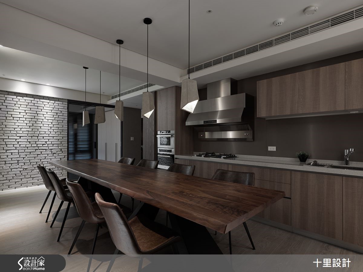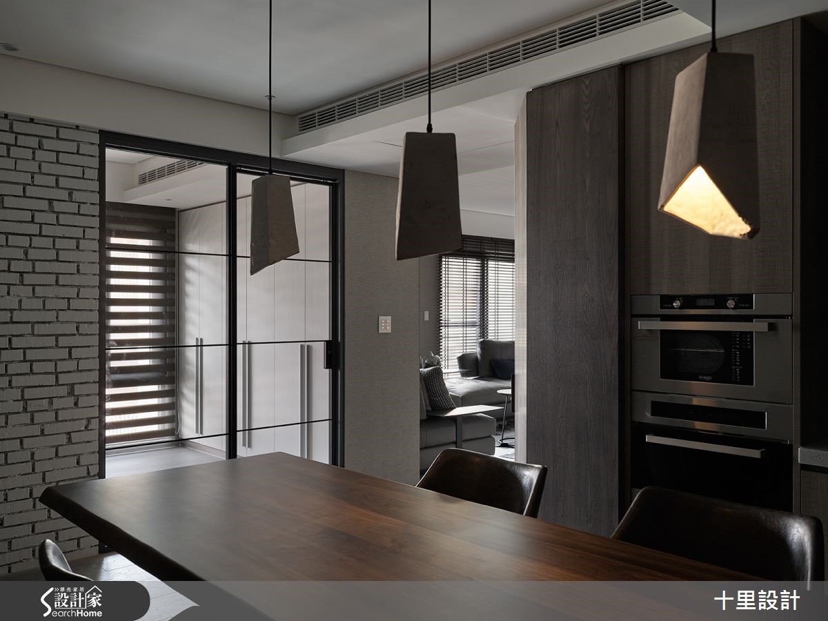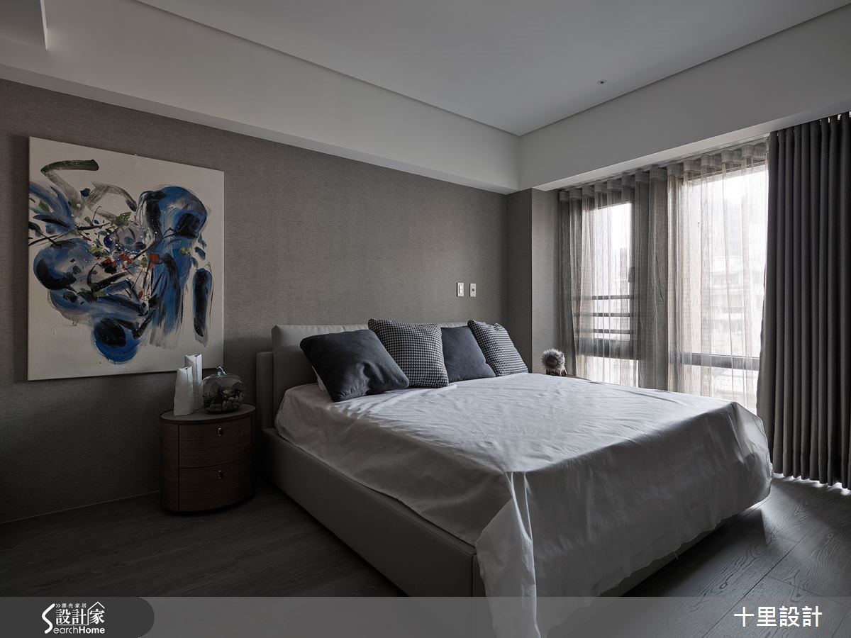 这是为屋主设计的第二间房子,在格局上将原先的四室改为三室,把空间让出,给予较为宽敞的公领域范围,并因应屋主需求,规划整面琳琅满目的收纳书墙,让居家在书香、日光、休闲感的交织萦绕中,共创美好生活氛围。【善用木石纹理,拼接错落之美】从玄关起始,在墙面镶嵌镜面,作为穿衣镜使用,并拼接木皮与石材薄片,衔接玄关和电视墙面,构成连续的动线导引。对应电视墙的石材,客厅墙面也顺势以中性灰作为主色,搭配温润的木地板,形成有暖度的空间。且规划整面开放式书墙,辅佐灯光照明与百叶窗光,注入书香韵味。餐厅一旁配置玻璃门片做出采光导引,且规划开放式一字型厨房分享采光,位于中央的餐厨区不致于阴暗。寝卧延续公领域的素雅基调,将冷调灰色及沉稳木质作出完美结合;墙面悬挂以一幅艺术挂画,透过大胆抽象的图绘替空间画龙点睛。