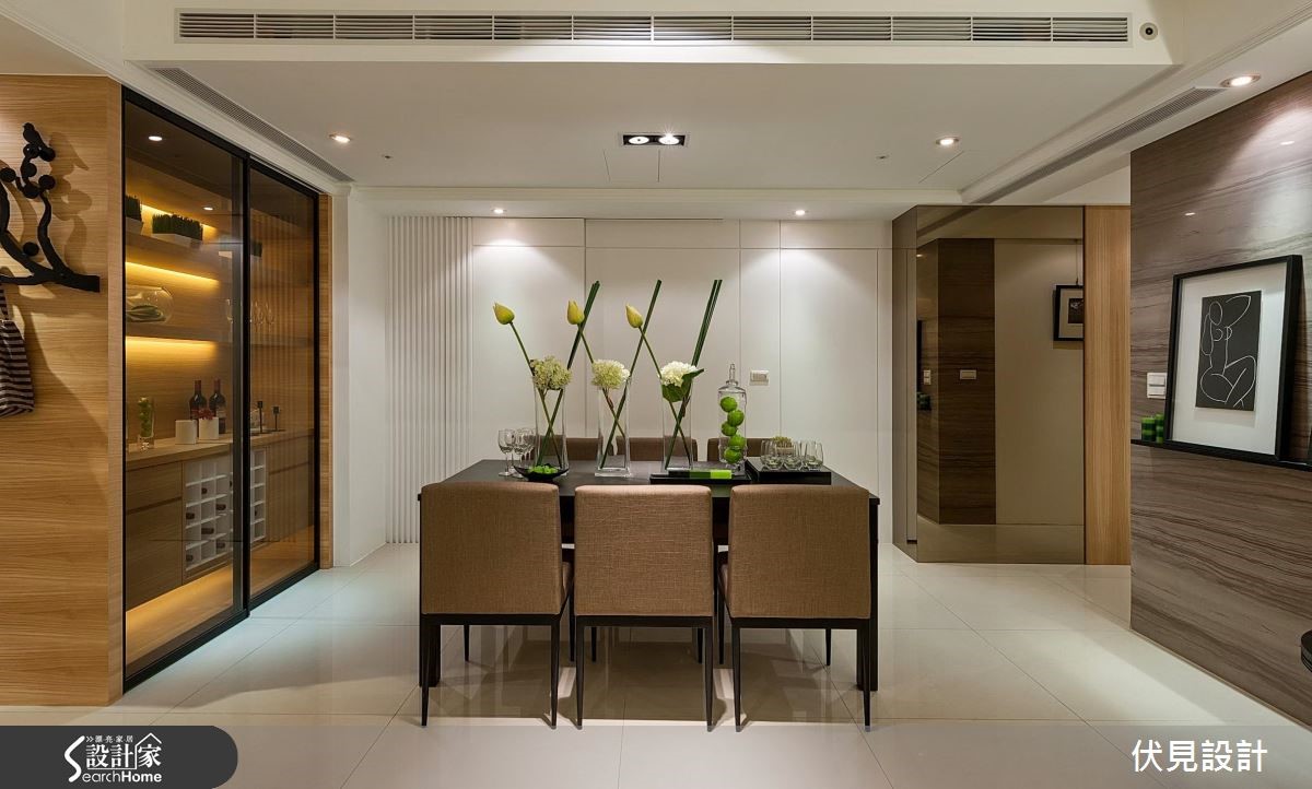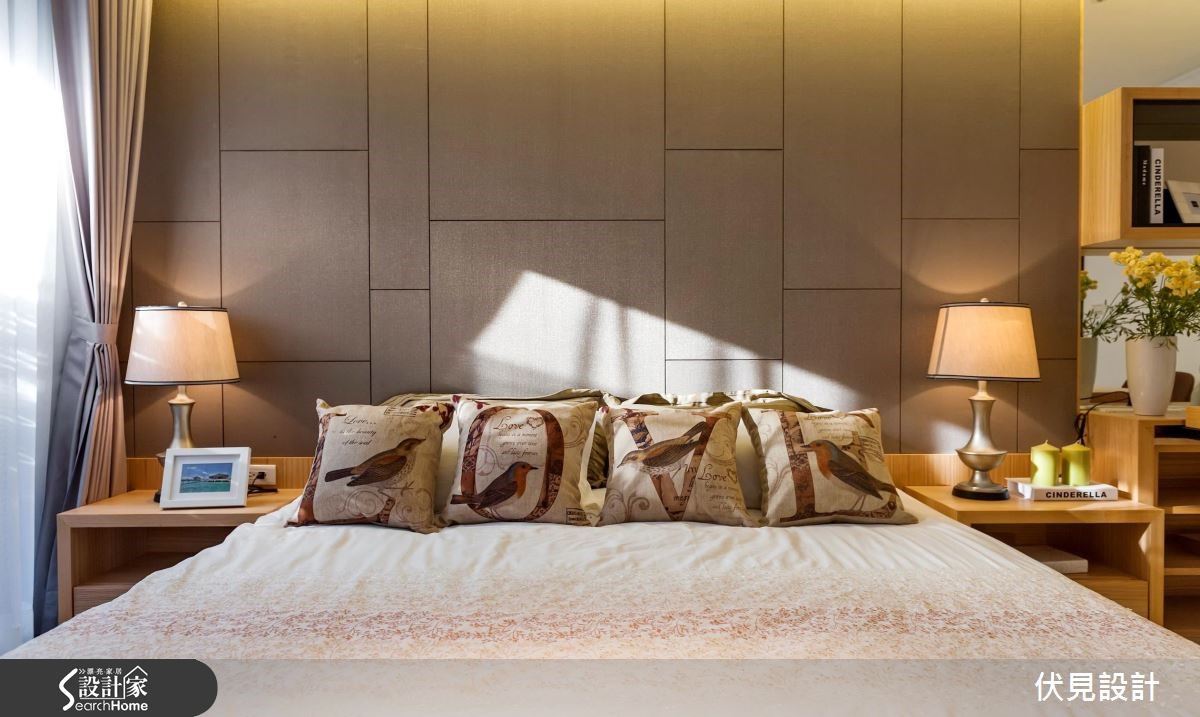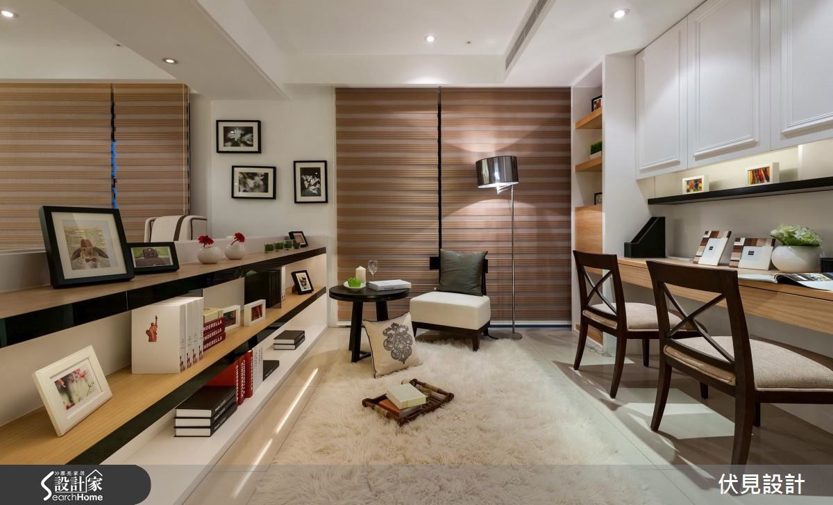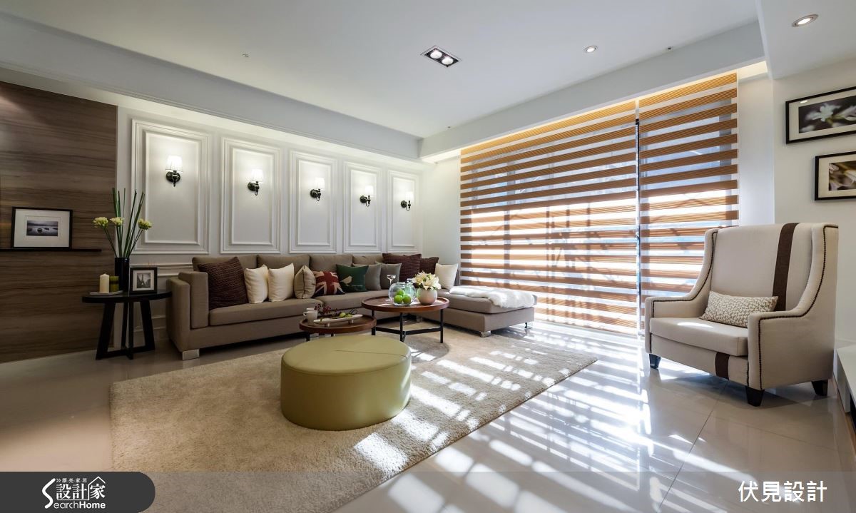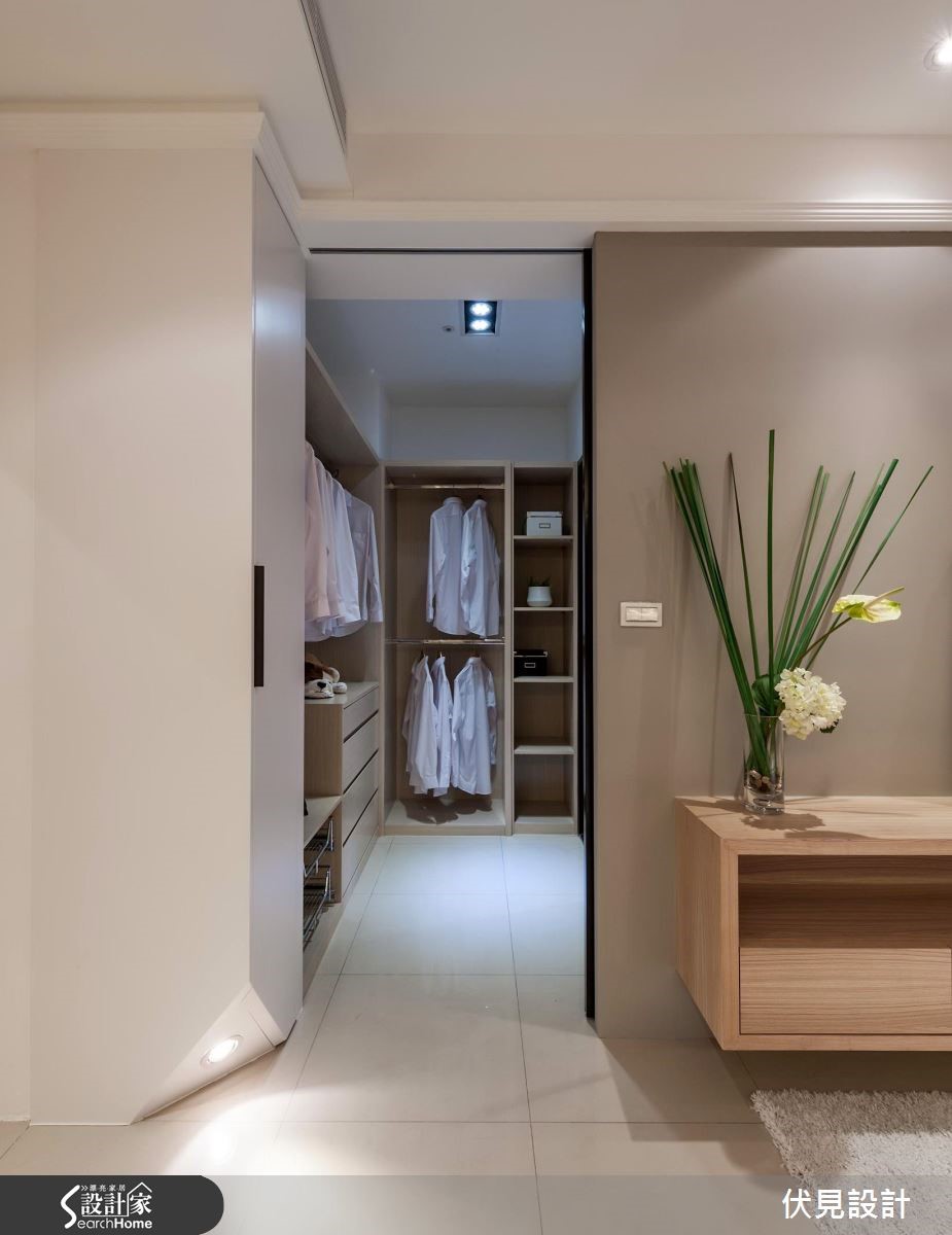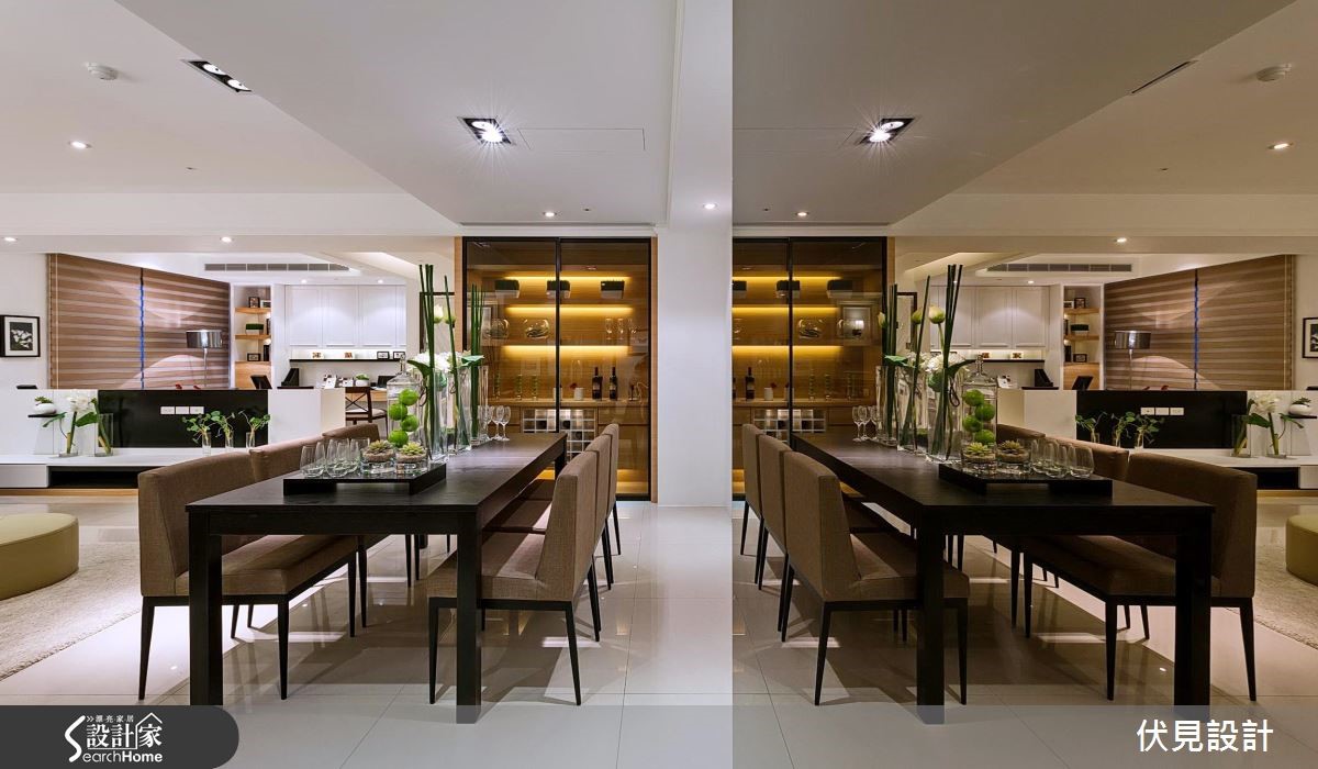 这户130的空间中,本案的设计重点是降低空间内的色彩比例,利用穿透式设计,让日光与灯光得以在空间流动,打造优雅不失温馨的美式居家。【几何斜角嵌灯,创造转角独特】公共空间以自然简约的纯白线板做出区域的界定与延伸,家具色彩也设定为大地与纯白,将表现空间留给典雅的壁灯及自然光的互动。为破除隔断带来的封闭感,开放式书房,成为穿透设计的典范:半高电视墙达成复合机能运用,也带来延伸视觉。晕黄灯光为餐厅旁的迷你藏酒间带来浪漫情调,侧边柜面更延续玄关收纳机能,结合树型吊挂设计,增添独特亮点。主卧延续光线的调度,在通往更衣间的动线中,设计师特意在靠近地面处做出几何斜角并嵌入壁灯,成为另类又时尚的安全性照明。
