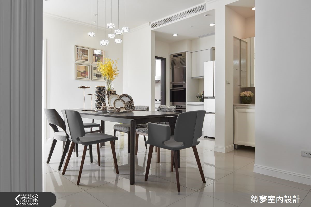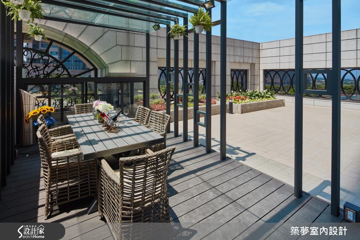 198平方米的空间,设计师采取简约的轻古典定调,并重划整体格局,把空间机能与风格无痕融合,打造出全家人心目中的理想居所。【线板修饰大梁,化解视觉压迫】玄关以柔和的浅白色系围塑,并配置透光雾面玻璃屏风作出场域界定,客厅则摆设古典感皮沙发款式,搭配跳色抱枕、单椅,搭构少量古铜色调,使白底背景突现色彩层次,同时利用线板修饰客厅区的大梁,并与电视墙作出结合,化解视觉上的压迫感受。【串连其他领域,层层递进场域】餐厅区则保有与其他领域的通透串联,并注入明亮采光,型塑空间放大感,搭配深色餐桌椅的置中陈列,营造协调的生活画面。寝卧床头结合大面积柜体,形成开阔立面表情、且扩充收纳机能,并将书桌安排在窗边,让人可在窗景相伴下,享有美好的阅读时刻! 循着客厅落地窗走向户外,即可来到专属庭院,空间融入挑高结构的光影线条,搭配带有南洋风的藤编家具、恰如其分的植栽配色等,让人在家中,也可作轻松坐享欧风庄园的下午茶时光!
