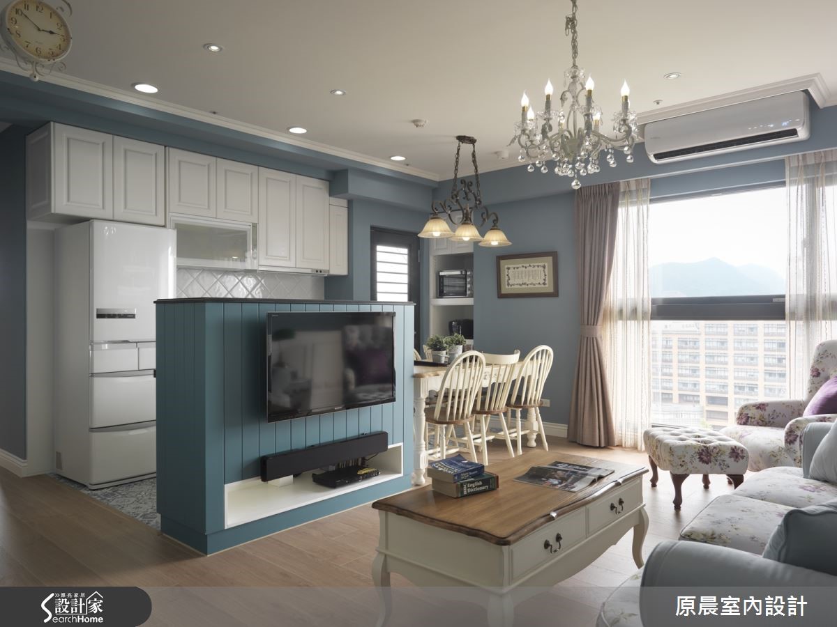 从事科技业的女屋主,买下属于自己的生活居所,以温柔疗愈的乡村风定义,搭配令人放松的迷人灰蓝色,在这里有一张可容纳多人的大餐桌,屋主可以舒适地和教友聚会、讨论,在厨房准备点心时,也能和朋友一起互动,回到家就能慵懒放松,享受舒适生活。 【呼朋引伴大客厅与餐桌】公领域采用开放式设计,以一张大餐桌拉出生活主轴线,而电视柜体另一面结合厨房水槽,将客厅与餐厨区整合,在有限空间中,打造随时可温馨互动、聊天的宽敞聚会场所。【一人独享充裕二居室】室内采光条件良好,透过大面落地窗的借景效果,将自然绿意转化为生活风景。设计师也调整格局比例,将原有3室修改为2室,放大整体空间的舒适尺度。主卧室融入衣柜及梳妆台机能,并特意与睡眠区位置错开,在卧室中创造充裕的更衣空间,动在线也不显局促。