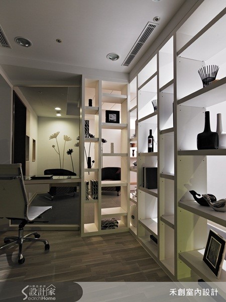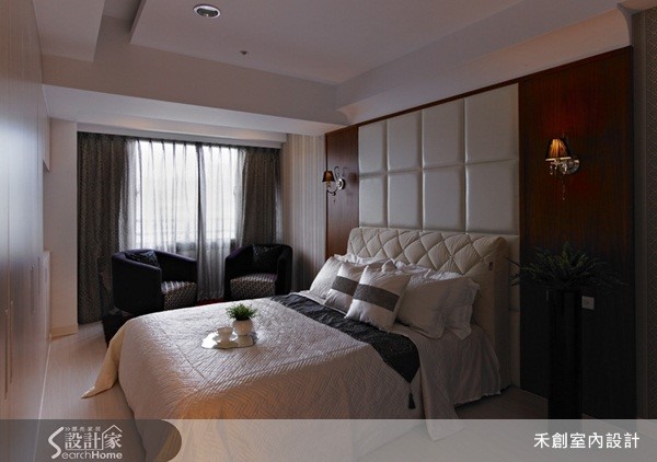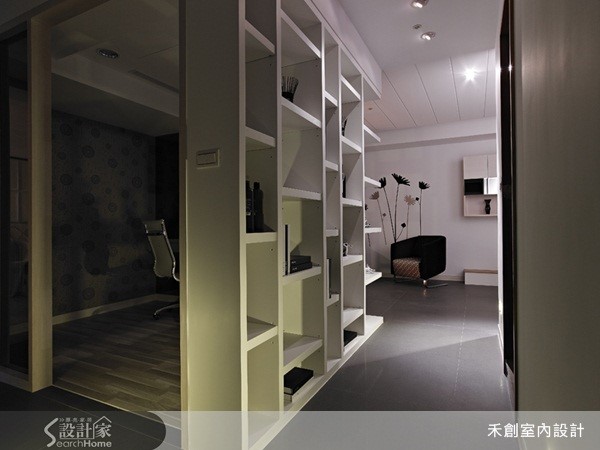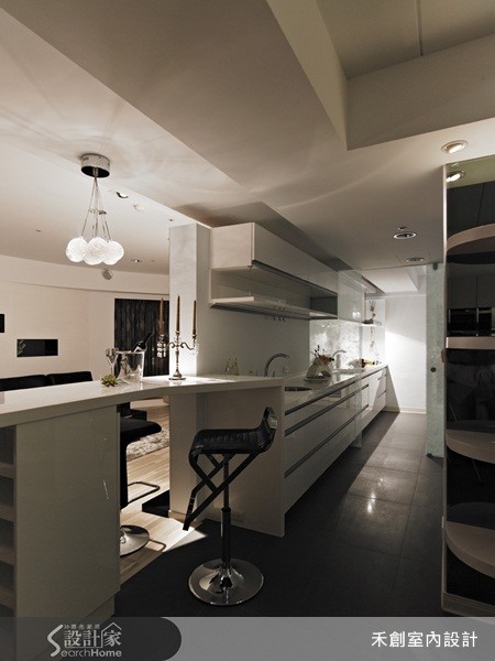屋龄超过15年的老屋,在设计师重整之下,避开既有格局缺点、突破管线及梁柱限制,并巧妙利用吧台串联、整合公共区域,同时加入皮革、玻璃、镜面等丰富质材,搭衬家饰的摆设,刻划出时尚的空间表情。 【黑白配色,展露高冷品味】居宅内以开放格局营造流动感,并藉由黑白经典搭配,表现简单利落的视觉力道。透过浅色木地板的温润铺述,中和黑色皮沙发的冷调阳刚,构成和谐色调比例。窗边安排飘窗迎纳日光,赋予偷闲角落;同时整合电视墙与厨房、轻食吧台,形成一体规划,维持流畅动线亦保有领域之间串联,满足屋主招待亲友的需求。廊道突破封闭立面,以白色开放柜取代实墙增加轻透感,且搭衬灯光投射,让展示格柜更具格调。主卧铺陈浅色地板,床头加入绷皮设计增添墙面立体感,两侧佐以木皮及壁灯点缀,在优雅之中烘托古典气质。