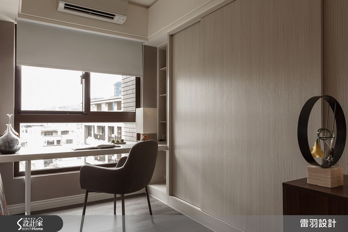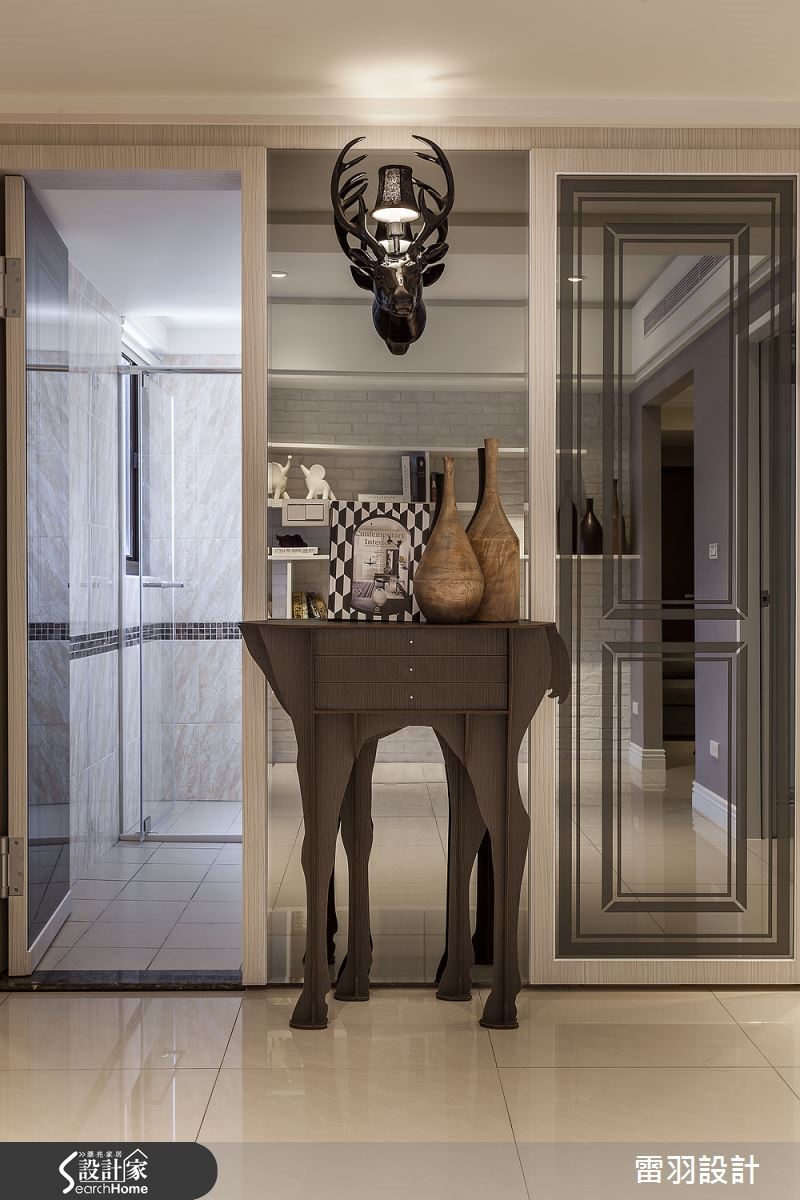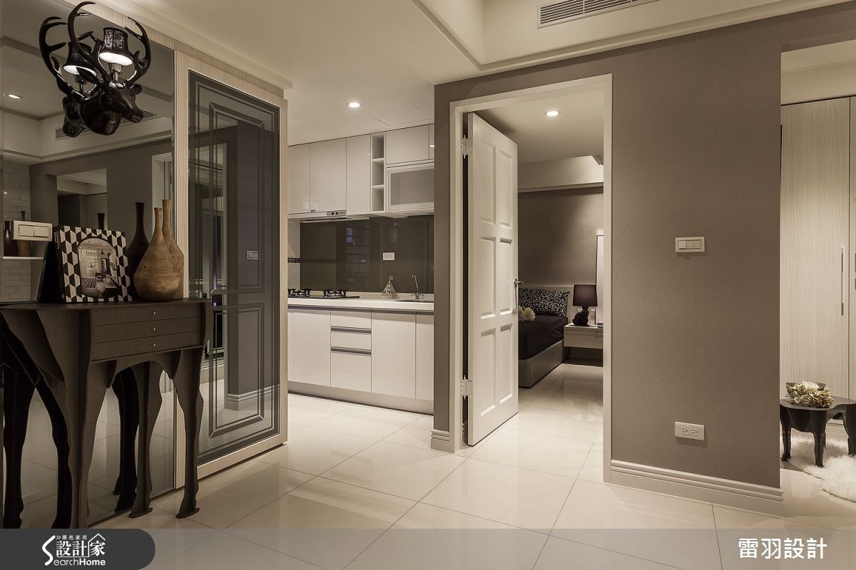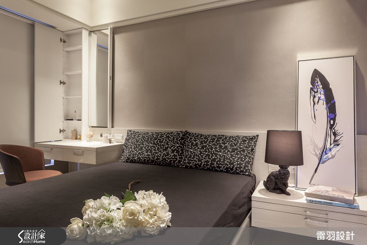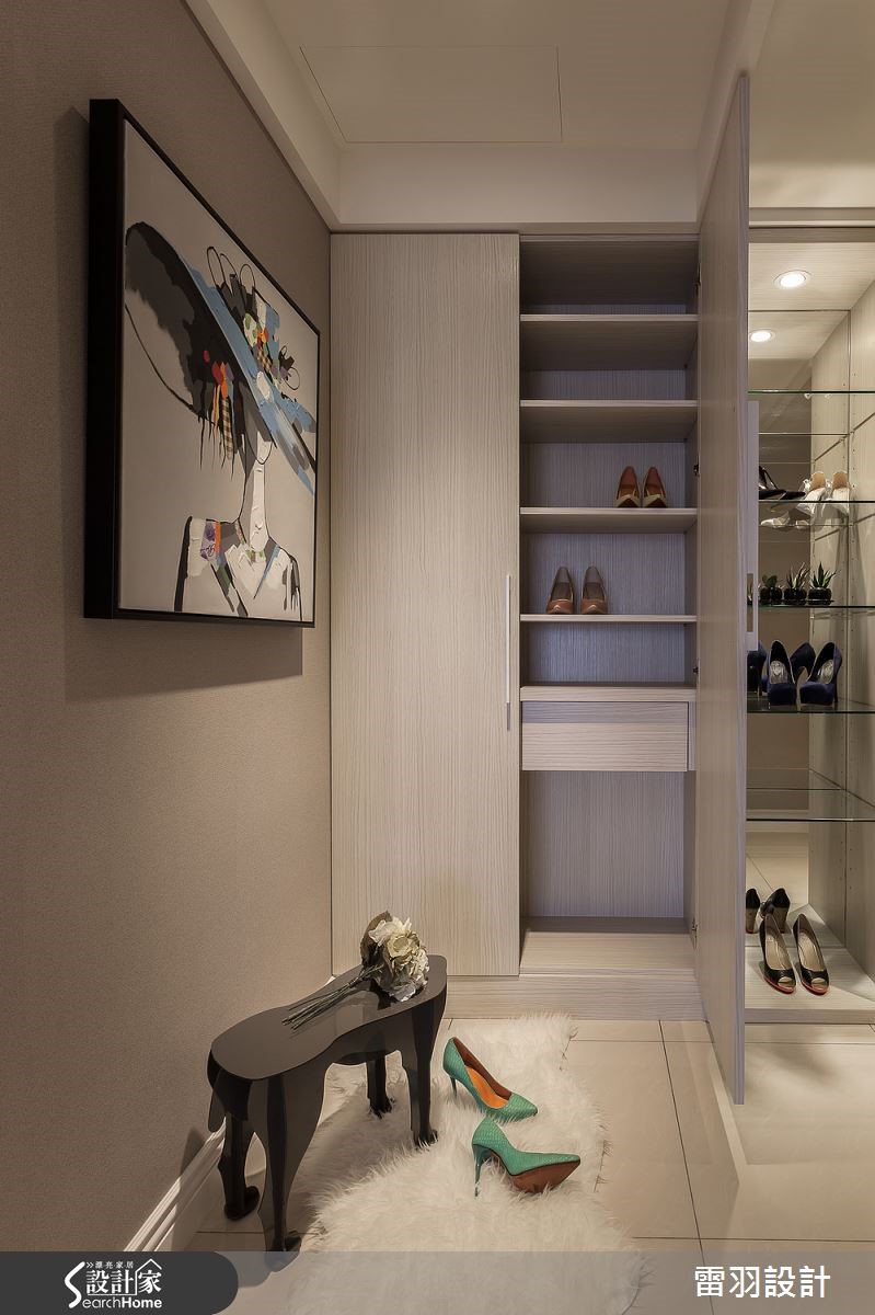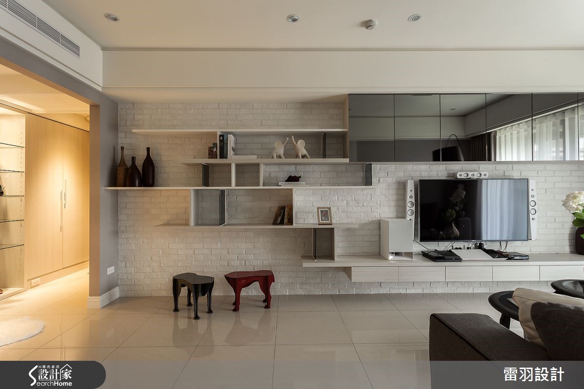 53平方米的单层居宅,空间并不算大,因此设计着重在扩容感及收纳设计,设计师利用镜面的映像效果延伸空间视觉,并赋予丰富机能及充裕的收纳规划,为屋主定制舒适而美观的精品级好宅,承载一家3口的幸福日常。 【大地色系搭文化石,造纾压氛围】从玄关进入,长型廊道导引动线,侧边安排衣帽柜和展示鞋柜,底板采用镜面并搭配嵌灯,打造出时尚的空间感。来到公领域,以灰阶层次铺陈展开,客厅主墙铺饰整面文化石,同时采用大地色系辅助,搭配浅色木质,打造沉稳的纾压感受。廊道墙面采用镜面延展视觉,伸展出双倍空间感,更利用对称美学原则,隐藏卫生间门片的突兀感,创造优雅迷人的过渡区。私领域延续静谧色调,床边分别加设床头柜与梳妆台,除了可以享受舒适的睡眠氛围,同时也有实用的收纳机能性。