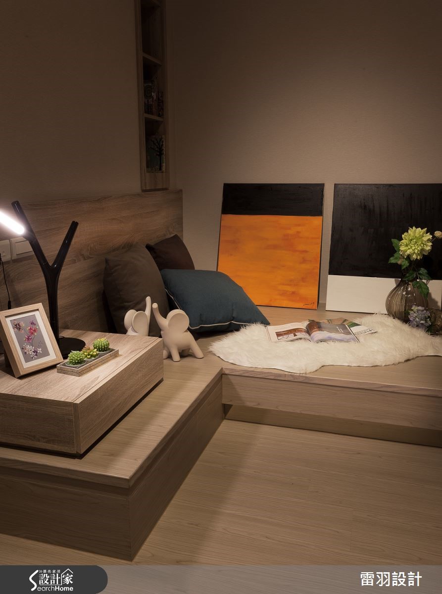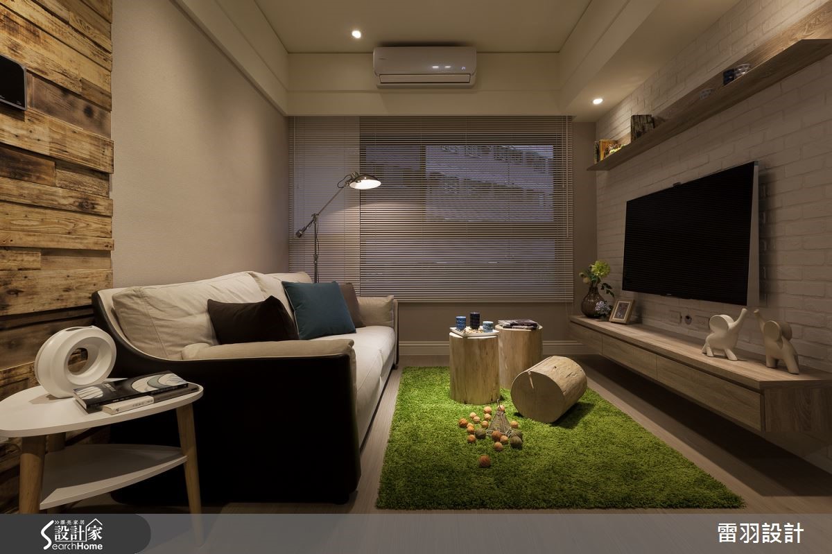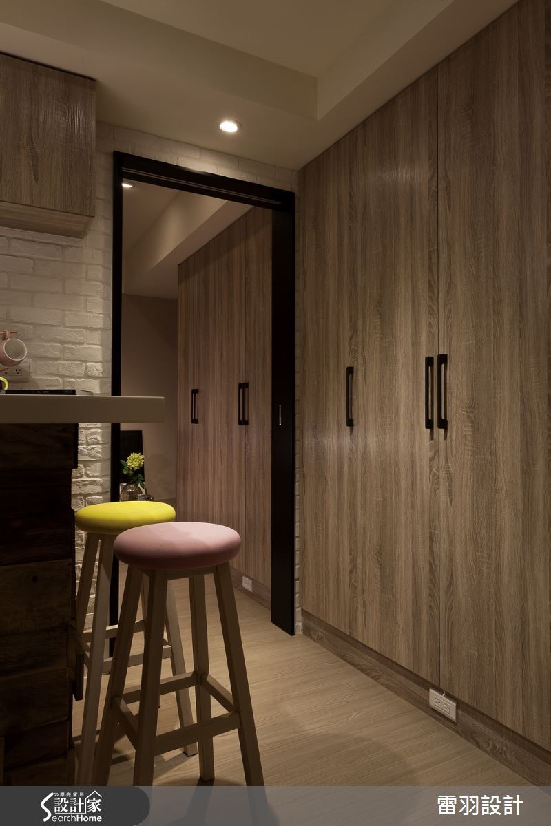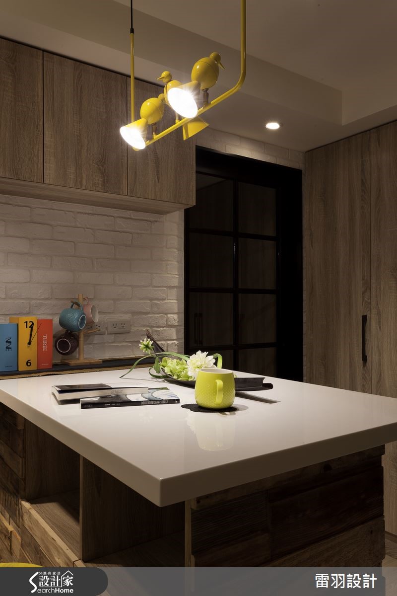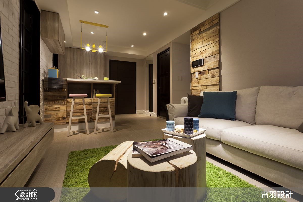 新婚夫妻买房通常拥有两大共同特征:一是预算相当有限,二是购置空间皆偏小。如何控制预算、配置格局同时完成风格营造,可说是设计师在小户型设计中面临的挑战。 【朴质空间,家具营造跳色效果】北欧风格的开放式设计,相当适合人口单纯的家庭与小空间。全室采用开放设计,打造通透的客、餐厅空间。而卧室则利用透明格状玻璃推拉门,作为公私领域间的区隔,打开时能扩张空间深度,避免狭小感受。餐厅区域利用吧台取代制式餐桌,让空间表现更加宽敞多元。吧台顺应梁下设置柜体,达成完整的收纳机能。客厅背墙及吧台表面皆以旧木拼接,搭配文化石电视墙,创造粗犷的自然纹理,同时别具巧思,以樱草黄吊灯和马卡龙色餐椅营造跳色效果,呈现地道北欧风格。