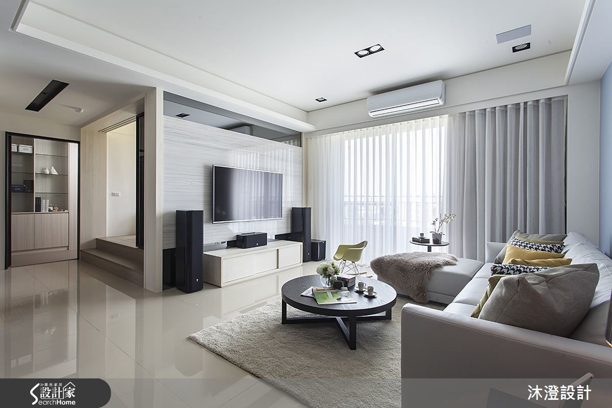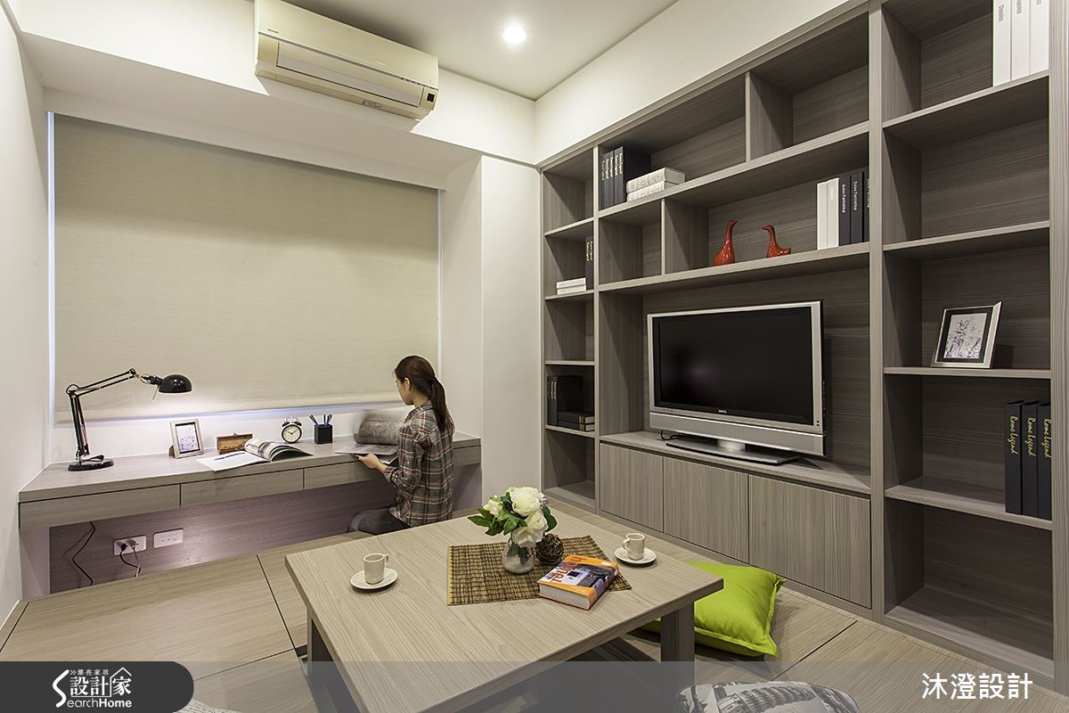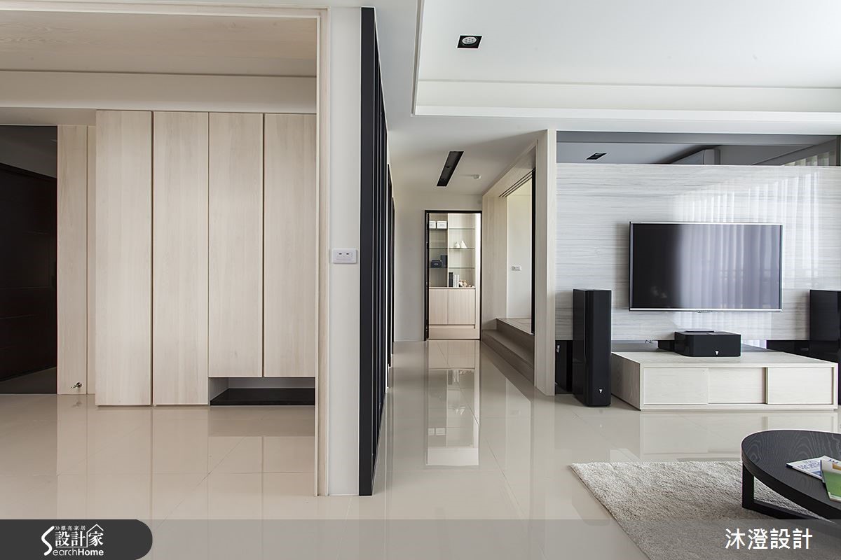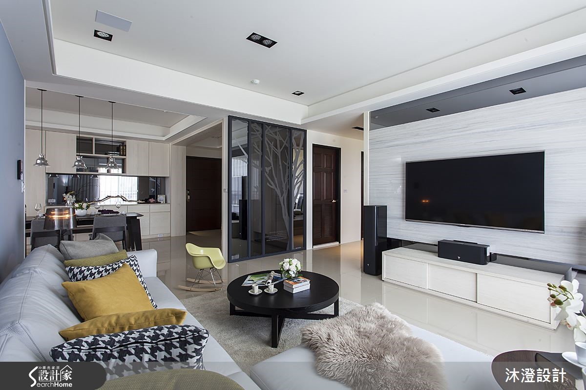 设计师根据家庭成员模式,创造出符合一家四口的收纳机能,并考虑两个活动力大的孩子,以半开放规划手法,塑造密切的亲子互动,打造出让大人、孩子都满意的生活空间,快跟着小编一起走进来看看吧!【跳色家饰,增添活泼氛围】走进大门,屏风的通透配置,替入口、客厅做出缓冲、创造视觉转折。于屏风上描绘守护家人的树木语汇,并藉着灰玻引流光线,扩容视野又能凝聚情感。空间整体以简约现代为基底,采以浅蓝色沙发墙为背景,穿插反差色调的家饰,带出年轻气息。公共空间设定为开放形式,使客餐厅相互串联,赋予一家人可自在活动的空间,并让餐厅享有充裕的前后采光,营造明亮视野。采以木皮建构墙面柜身,开放展示的段落则加入镜面底景,带来视觉层次感。书房让柜体、墙面一体成形,创造实用的收纳展示空间。地面中央则巧妙构置升降桌,透过弹性调节的使用形式,让书房可兼具休憩、客房等功能,因应生活中的每一种可能。