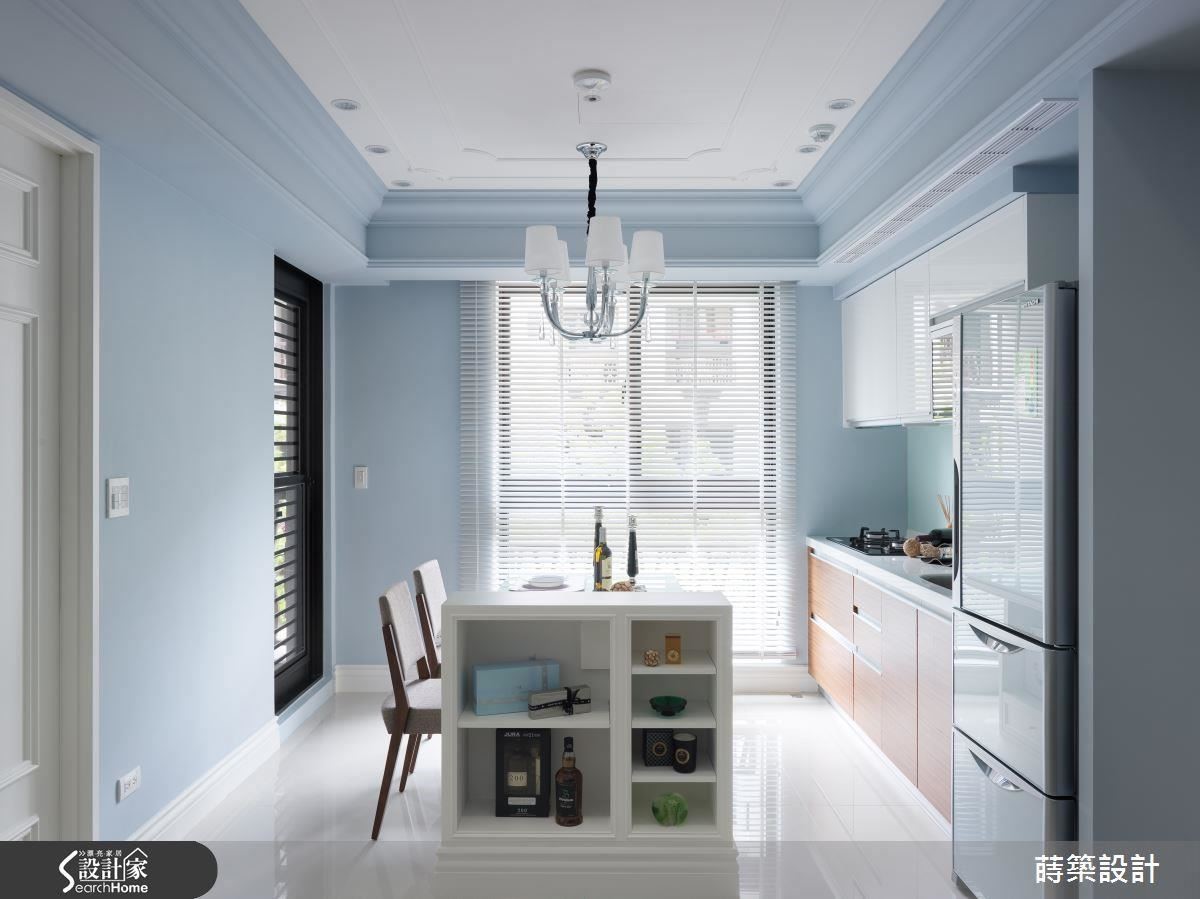 入住前,房屋格局呈现均分成直条的三等分,虽然没有畸零空间,但横向的分割导致动线不合理;调整后的环境,每室既完整又不会太狭隘,加上以水蓝色当作主色调,让人感觉利落又清爽,并在自然光的洗礼下,成就了年轻夫妻的梦幻小屋。
