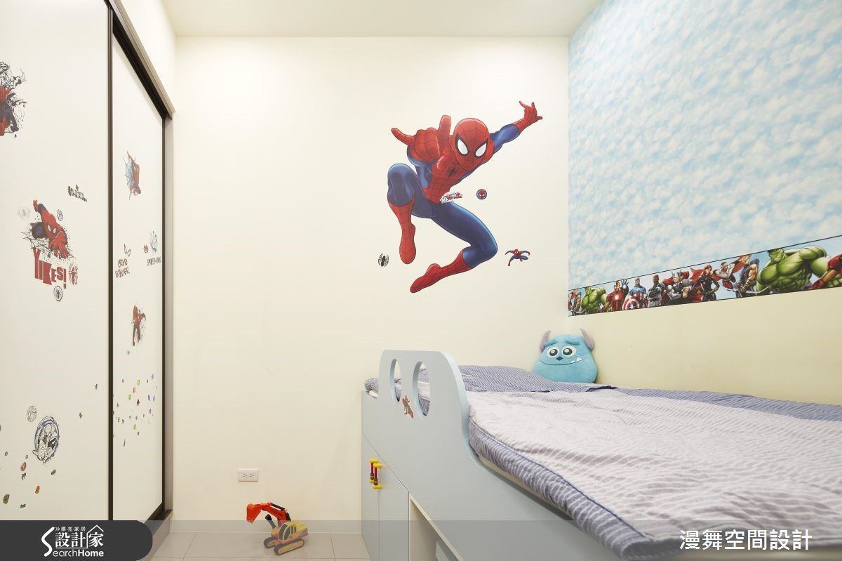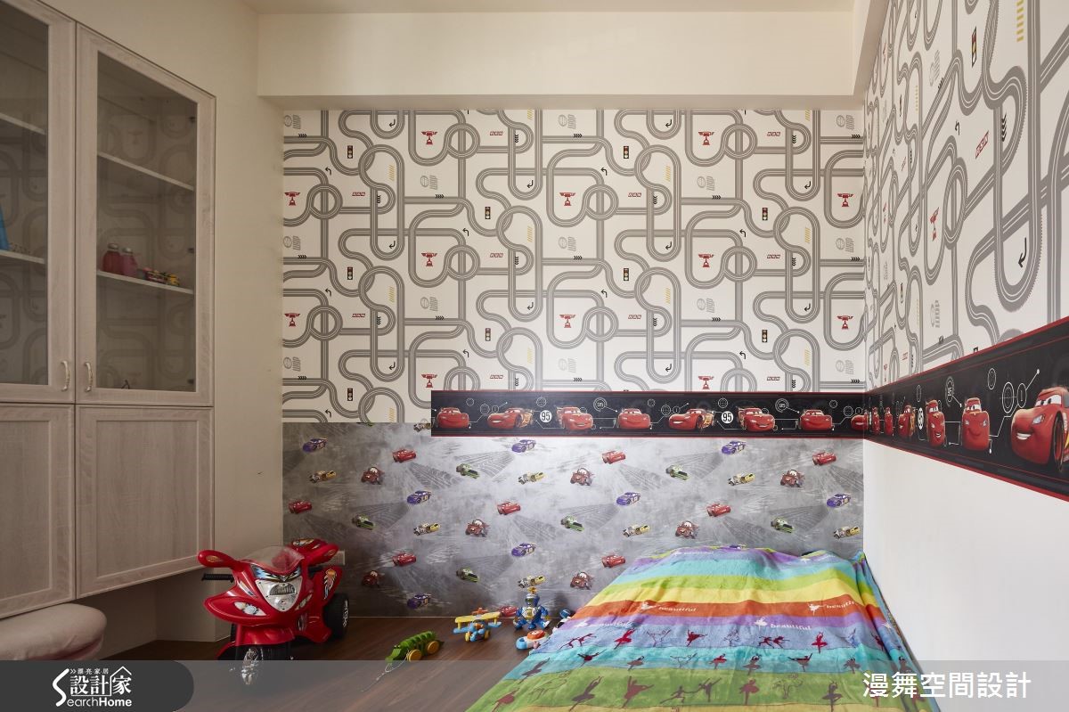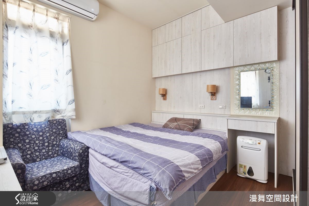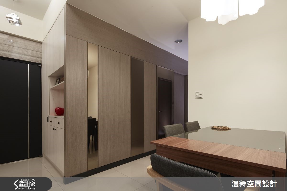 屋龄30余年的老屋,设计师彻底改善壁癌、格局动线、采光不良等问题,将厨房与卫浴挪移,彻底翻转格局,并让客、餐厅采开放式规划,使廊道缩短,有效放大空间,提升生活品质,让三代同堂可共享美好新生活。【微调隔断,公私领域比例均衡】客厅透过大理石电视墙展示天然纹理,辅以整体空间的素净表情,表现简约气质。为了避免电视墙、沙发距离过远,在沙发背后规划开放书房,以收纳柜做出界定,双重满足收纳与区隔需求。内缩既有房间范围,拓大餐厅领域,一旁柜体则扮演了展示及收纳机能,并让卫浴门片隐藏于墙,透过镜面、木纹的穿插拼接,展现具设计感的立面风貌。原先位于房屋底部的厨房,则经过拆解,成为主卧空间。主卧藉着各式收纳与展示柜活化空间,并善用走道两侧规划大容量衣柜,采用浅色木皮的大面积铺叙,让量体轻盈不显压迫;长亲房则将床头延伸拉大,方便长辈收取物品,并导引丰沛采光。