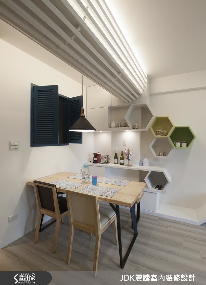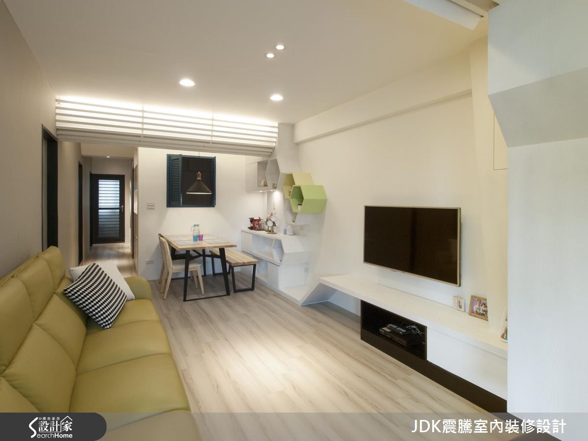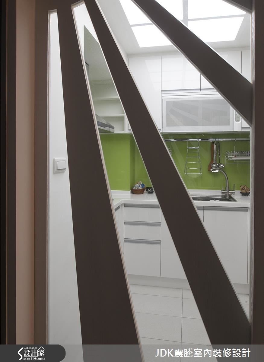 73平方米老屋有着壁癌、格局不均与动线失衡的问题,而有着一双宝贝儿女的夫妻,希望以儿童设计为主轴,除了三室需求,更希望打造充足的收纳机能与游戏空间。 【一空间一颜色,萌发少女心】设计师保留本身采光通风佳的优势,进一步更动格局,调整原先狭窄的厨房,卧房入口转向,导正动线,完美贴合屋主需求。顺应玄关开窗处设置开放游戏间,不仅让下班回家的爸爸可以一眼就看见宝贝子女;架高地板的设计,也扩增充足收纳。餐厅旁的儿童房由于四周无窗,因此墙面开窗引入光线,运用百叶窗造型,创造童趣气息。同时以"马卡龙风格"为创意发想,为空间注入缤纷甜美的色彩,并依据成员需求,每个空间漆上粉嫩甜蜜的色彩,让马卡龙氛围蔓延整体居家。