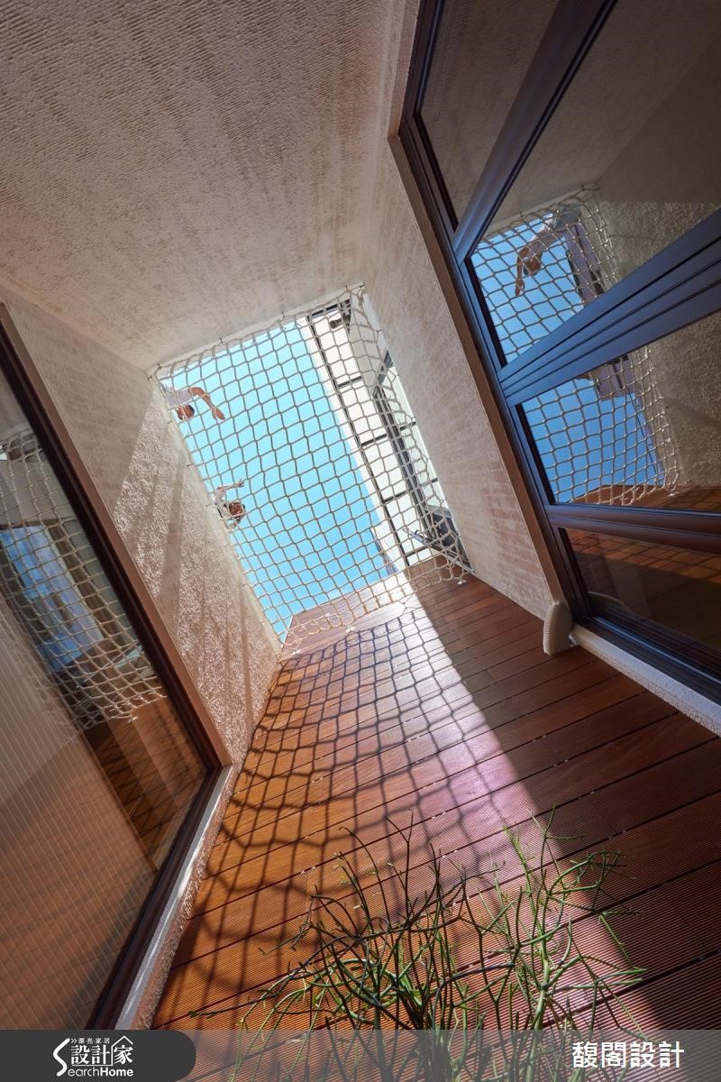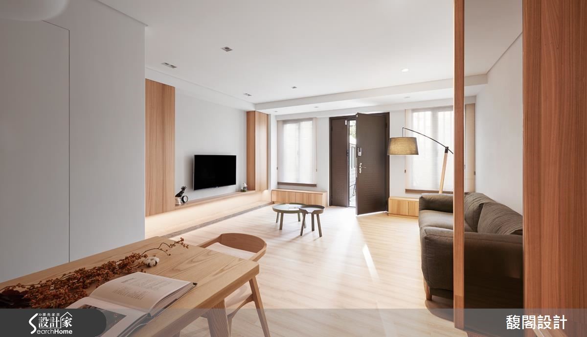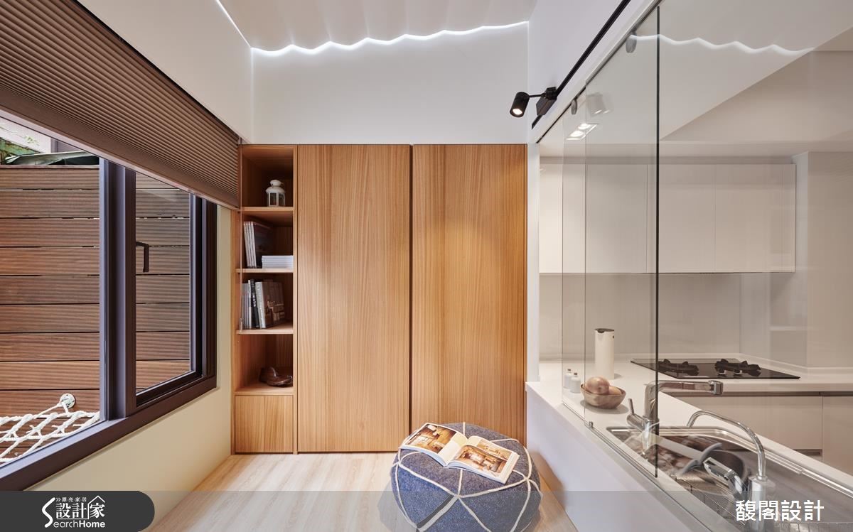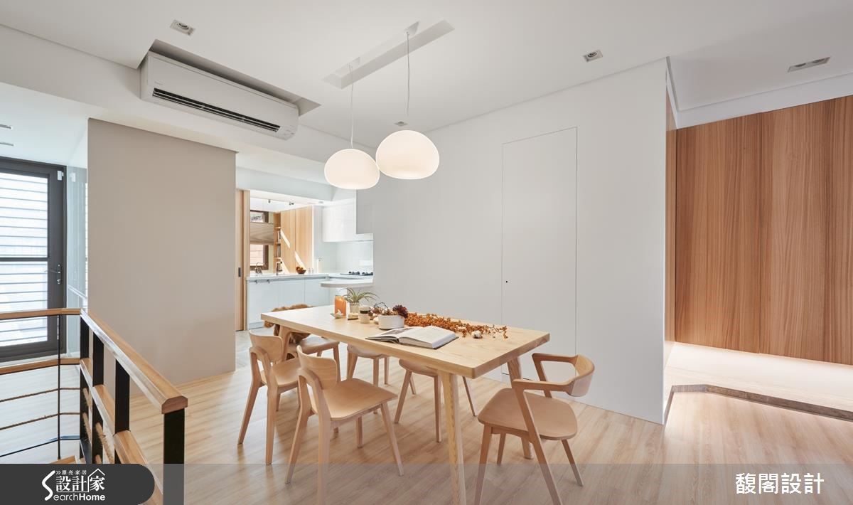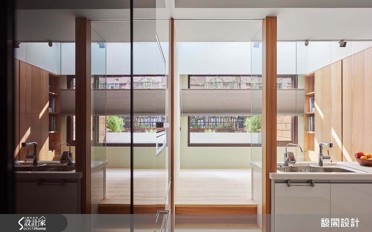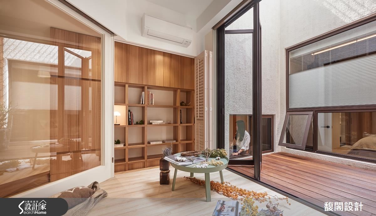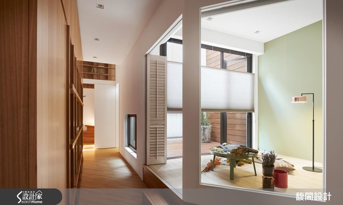 屋主一家渴望拥有宽敞的居家环境,虽然屋中有一座天井,原有的格局却影响客厅及餐厨的采光,日光也无法深入地下室,让卧室显得幽暗。设计师适度修整格局,并完整发挥空间优势,揉合阳光、绿意、木质等条件,建构人与自然的亲密互动,让生活更富趣味性。 【挪入口、移主墙,采光动线好转】设计师挪动电视墙及大门位置,疏通光流动线,并将厨房改为U字型,面向后方庭院及多功能室,既可以望见院中的怡人景色,也让厨房成为家庭的互动中心,随时都能参与家人的生活动态。另增设电器设备柜和料理平台,让平时喜欢做菜的家人能一起使用。 来到地下室,半开放式和室成为引渡日光的通道,大型挑高书廊伫立一旁,渲染清新宁静的气氛。光线沿着长长廊道深入室内,为卧室带来阳光明朗,挑高的主卧室上方增设跃层,既可作为女主人的工作空间,也能延伸为未来的小孩房。