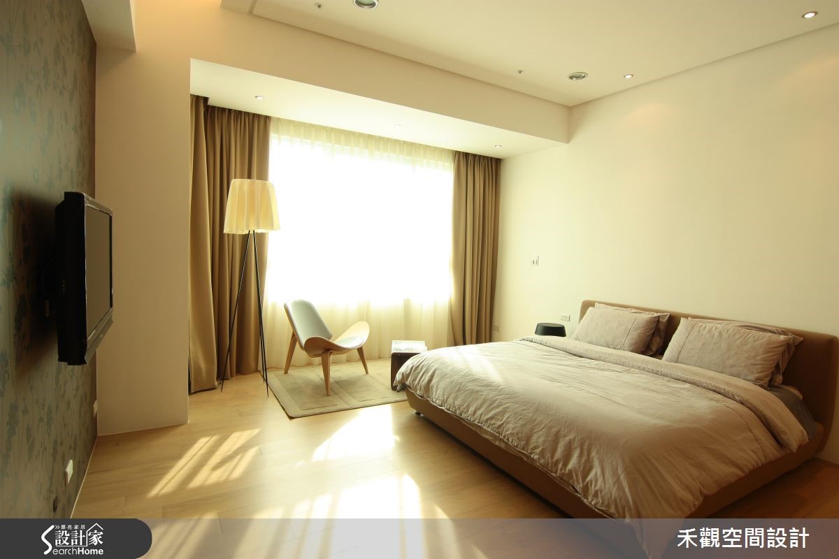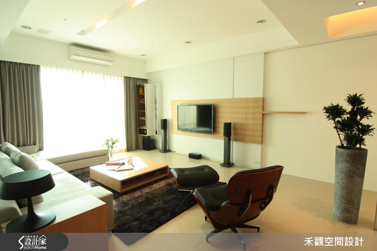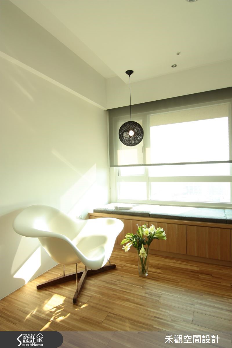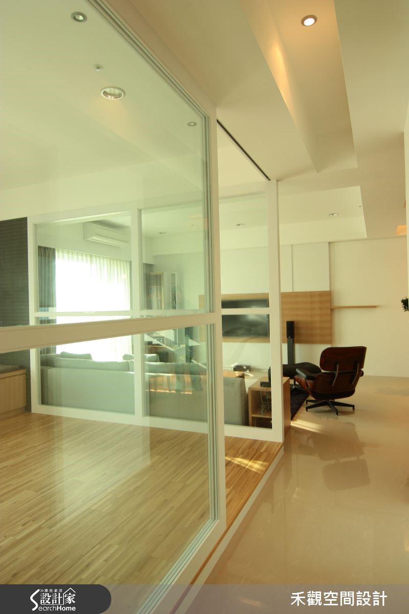 空间风格的定调来自于屋主的性格与对于生活的品味,于是设计师配合屋主需求,降低复杂的设计线条,采用大量木素材和纯白色调。以带有浓厚休闲气息的风格,打造令人心旷神怡的住家。【抹除隔断界线,空间更开放】在玄关做出悬浮鞋柜,形成入口走道,藉此划分玄关范围。开放的客厅与餐厨坐落于同一水平线上,让单面采光的光源得以长驱直入,再加上整体采用白色调性,更能打亮空间。搭配清新自然的木元素,包含客厅主墙的集层材与餐厅柜面的风化木,创造休闲惬意的气息。书房刻意不做隔断,利用白铁件及清玻作为书房屏隔,保持空间的通透性,让日光得以恣意流转,也拓增一家人的生活动线。主卧延续客厅调性,以木元素与纯白色系为主轴,打造高雅闲适的睡眠空间。