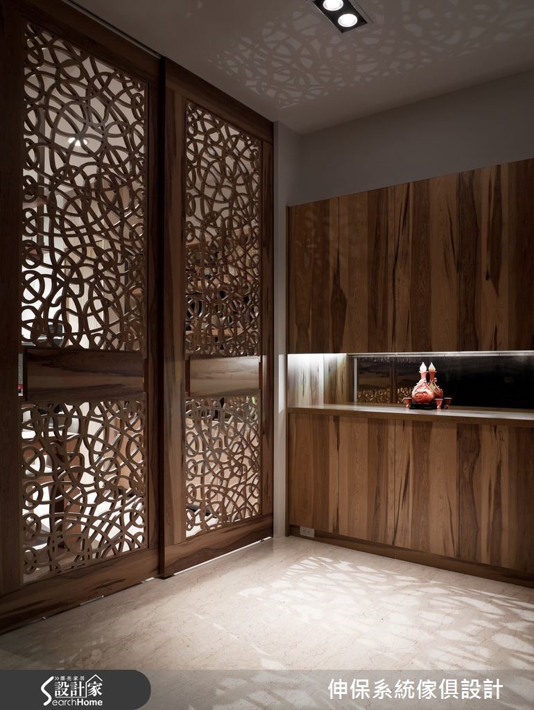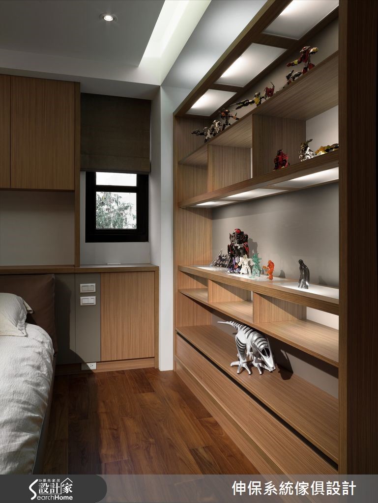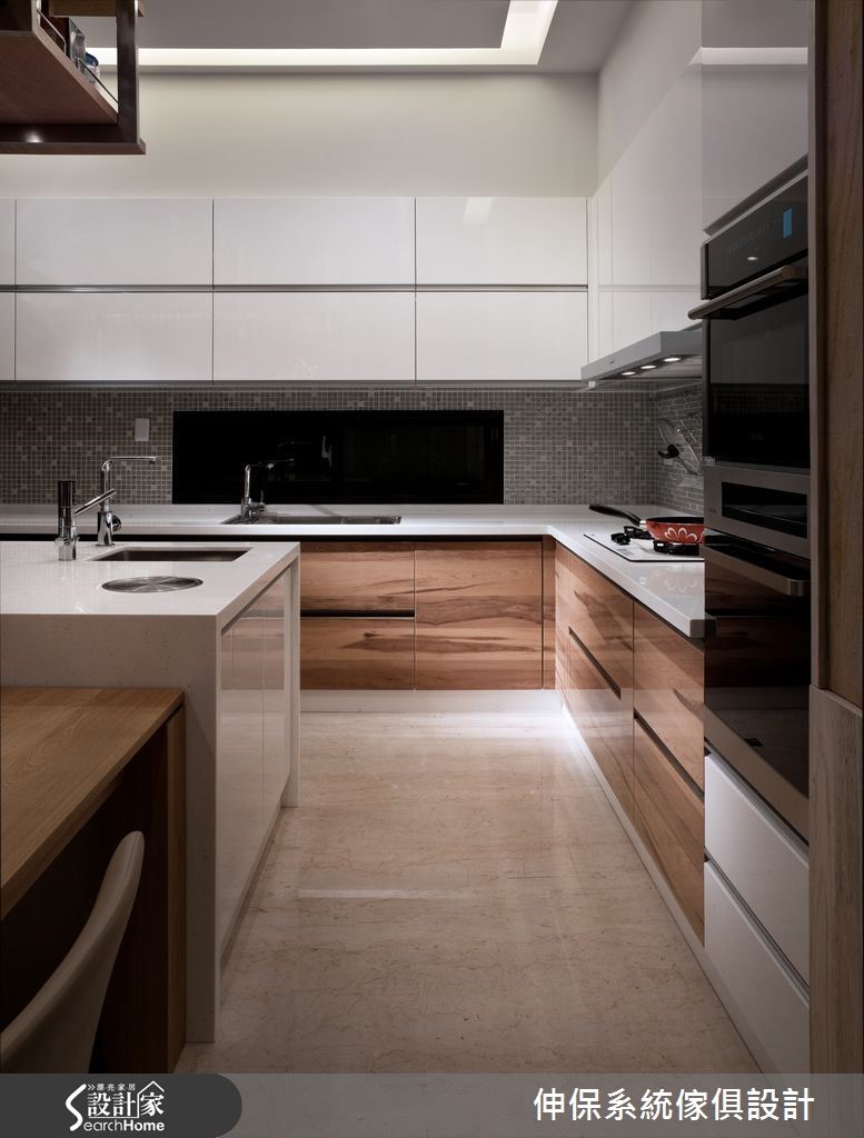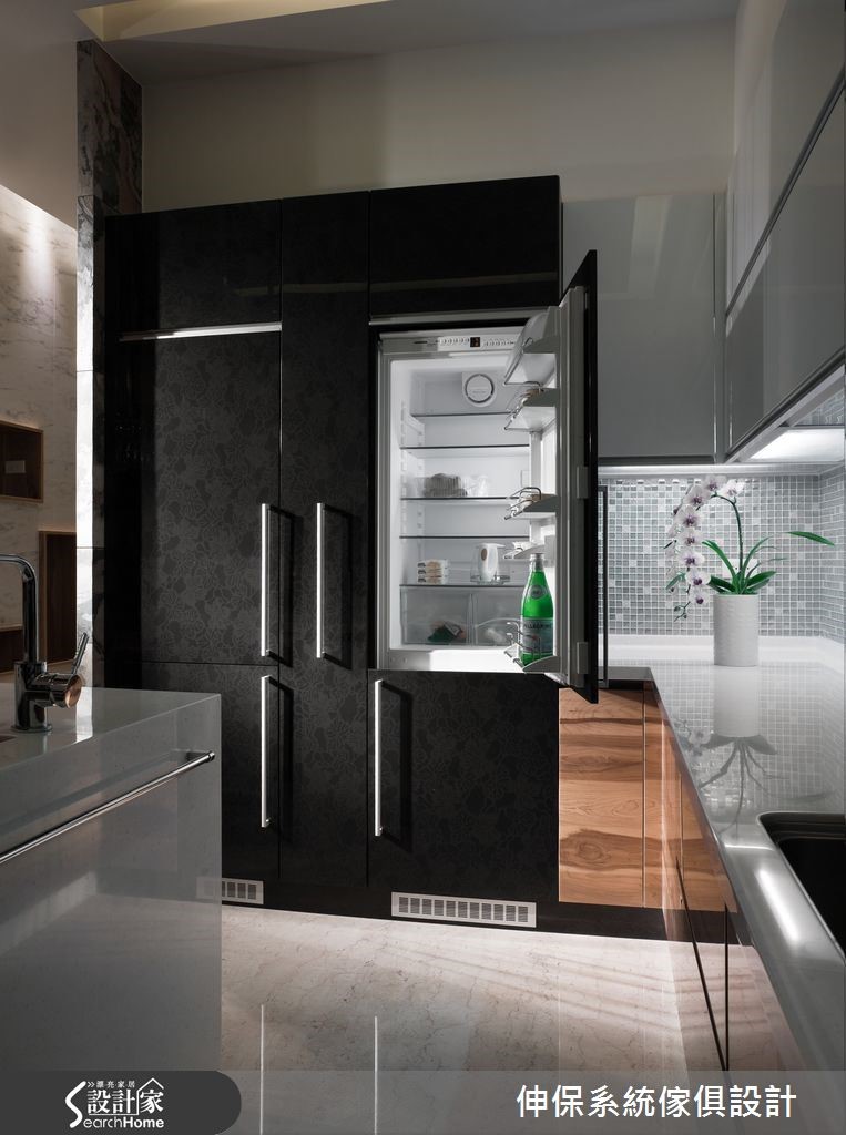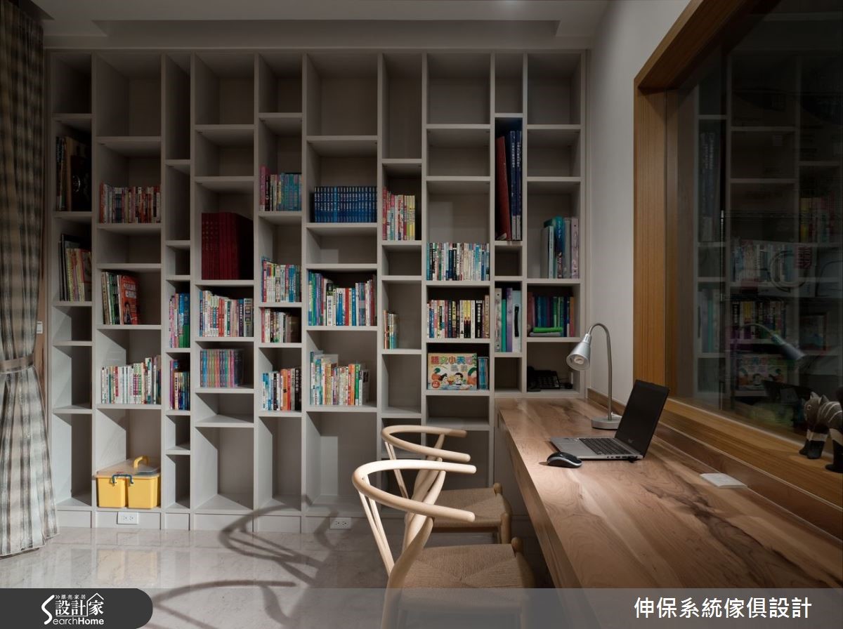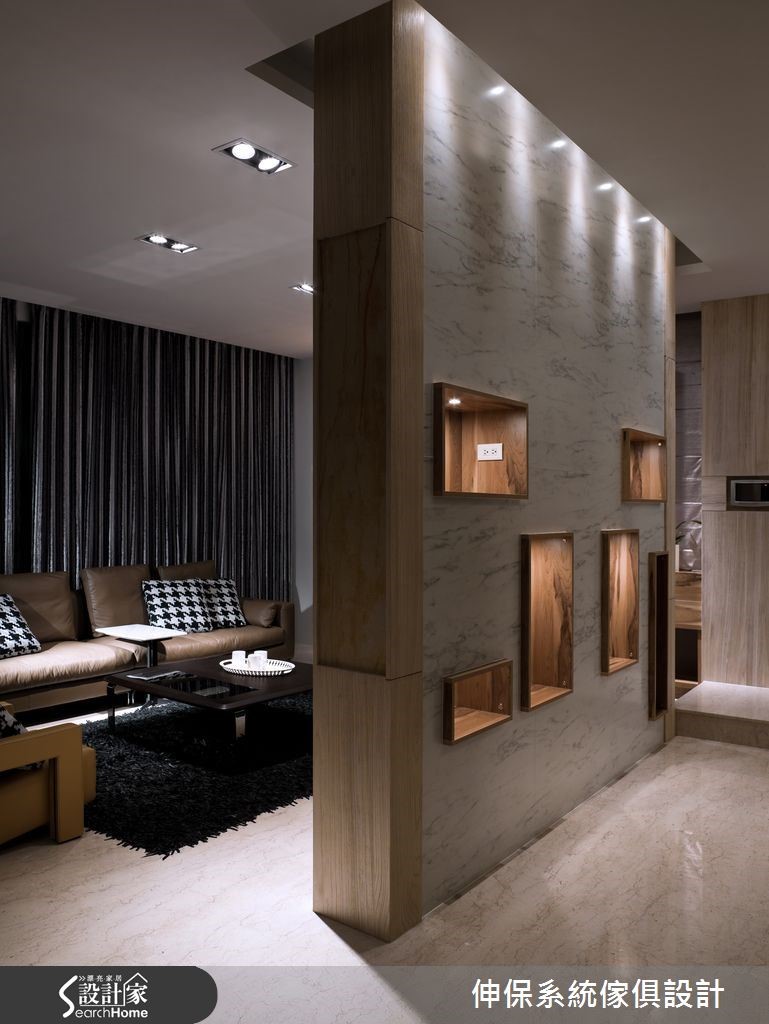 以舒适风格营造,是屋主对于设计团队的期待,设计师以系统柜板材融合华丽元素,结合美观与实用的特性,破除一般人对于系统柜的既定印象,完成高贵与机能兼具的人文宅。【立体纹路拟真设计,为质感加分】设计团队以多维、安全的系统柜设计,抹除年龄限制,打造一家大小都适合的独栋楼居家。以”健康维护”与”精致华美”为设计概念,选择木、石与布纹系统面材,利用其立体纹路的拟真设计,打造充满质感的华宅印象。玄关处定做拼接镂空门片,客厅以大理石纹面材作为电视墙,更以大面积柜体完成收纳需求。开放式餐厨因应男主人品酒喜好与女主人的烹饪动线,以互动度高的相连设计为主,并以富含天然石木纹理的系统面材为点缀。书房以机能性设计为主,设置简洁的收纳柜与长桌,并利用大面积玻璃降低空间压迫感。卧室秉持舒适、健康的原则,以大地色板材与五金规划完善的收纳机能与衣柜。