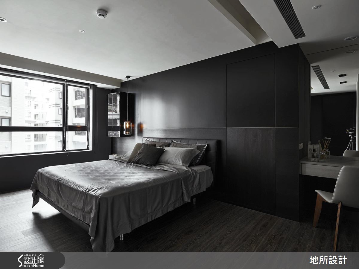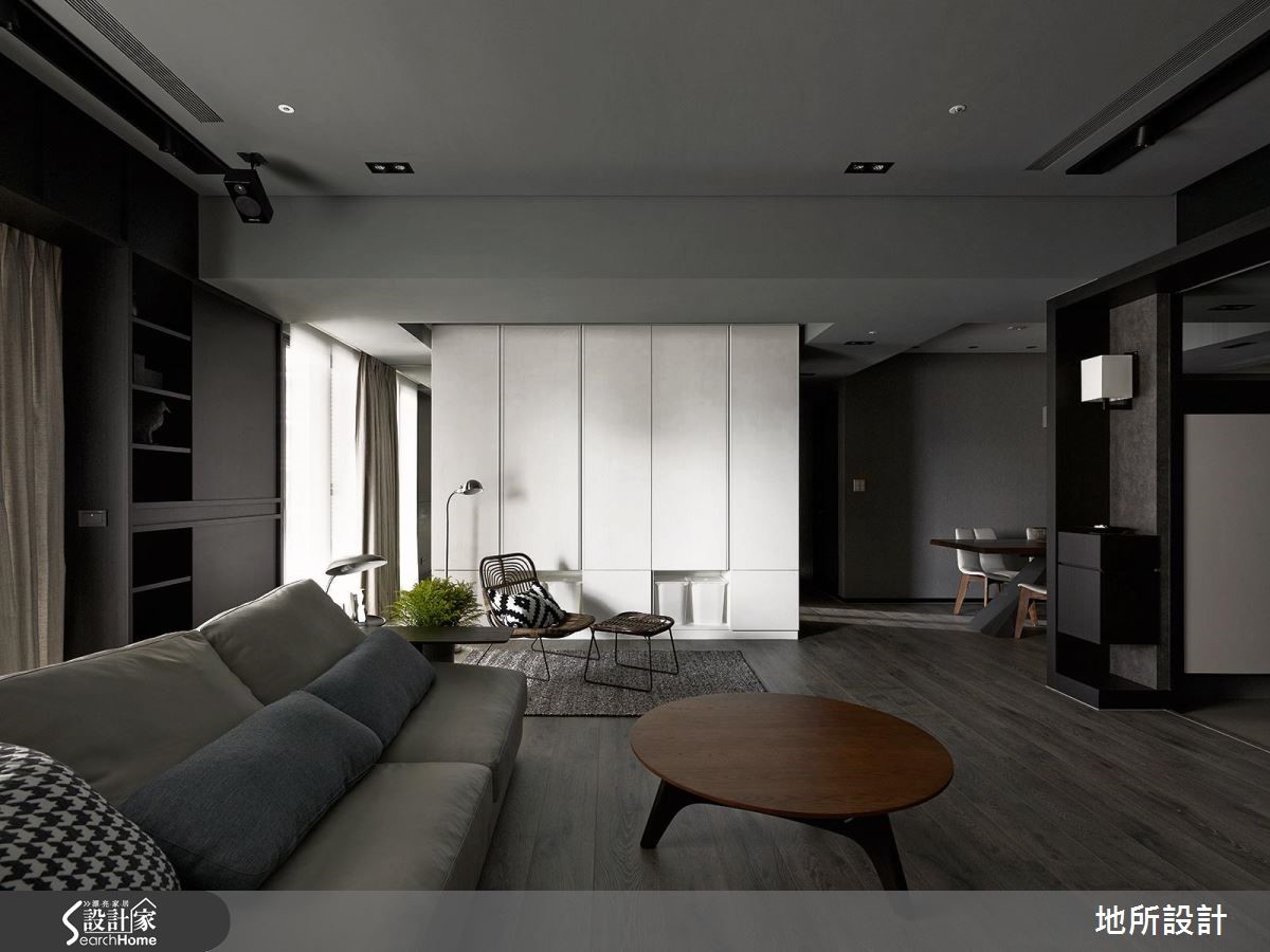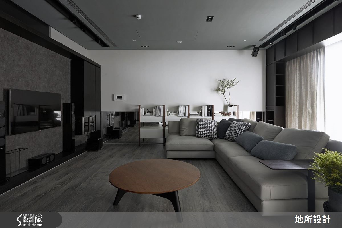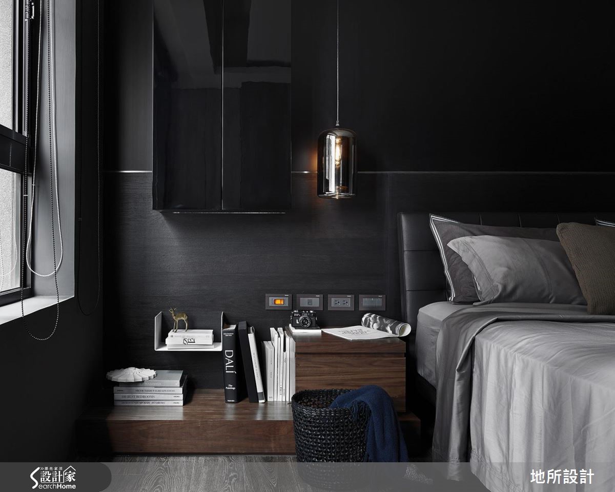 在高冷灰的时尚空间中,其实这是一个为亲子生活所规划的住宅。突破一般常见的格局配置思考,设计师让客厅转向,动线自然连贯餐厨空间,打造适合陪伴孩子、阅读绘本,并且好收纳的居家生活。【沿窗设置柜体,扩增收纳机能】整体空间选用屋主夫妻所喜爱的深邃色调,搭配细致的木纹、金属以及镜面等不同材质,呈现精致而舒适的生活情境。为了让使用空间更为广阔,客厅特地转向,以落地窗为生活背景,便多了左右延伸的空间,也能安排儿童游戏区,能随时与家人互动。为了扩增收纳量,除了在客厅两侧墙面设置柜体,沙发后方也沿着窗框做出U字收纳柜,不浪费任何空间。餐厅与玄关的隔断除了界定领域,更加入收纳机能性,刻意采用不及顶的局部镂空设计,保留光线与视野的通透性。走进主卧室,床头墙以刷漆及木皮染色拼接,一道细腻的金属线性从中划分疆界,延伸至另一侧床边,则可看见镜面烤漆柜与精致玻璃灯,运用质感单品点缀,诠释生活的时尚态度。设计师也将时髦的特质延伸至卫浴空间,墙面选择富有感性的浅灰纹理。地面则采用黑色六角砖,并延续至浴缸的转折立面,满足屋主夫妻对于摩登生活的期待。