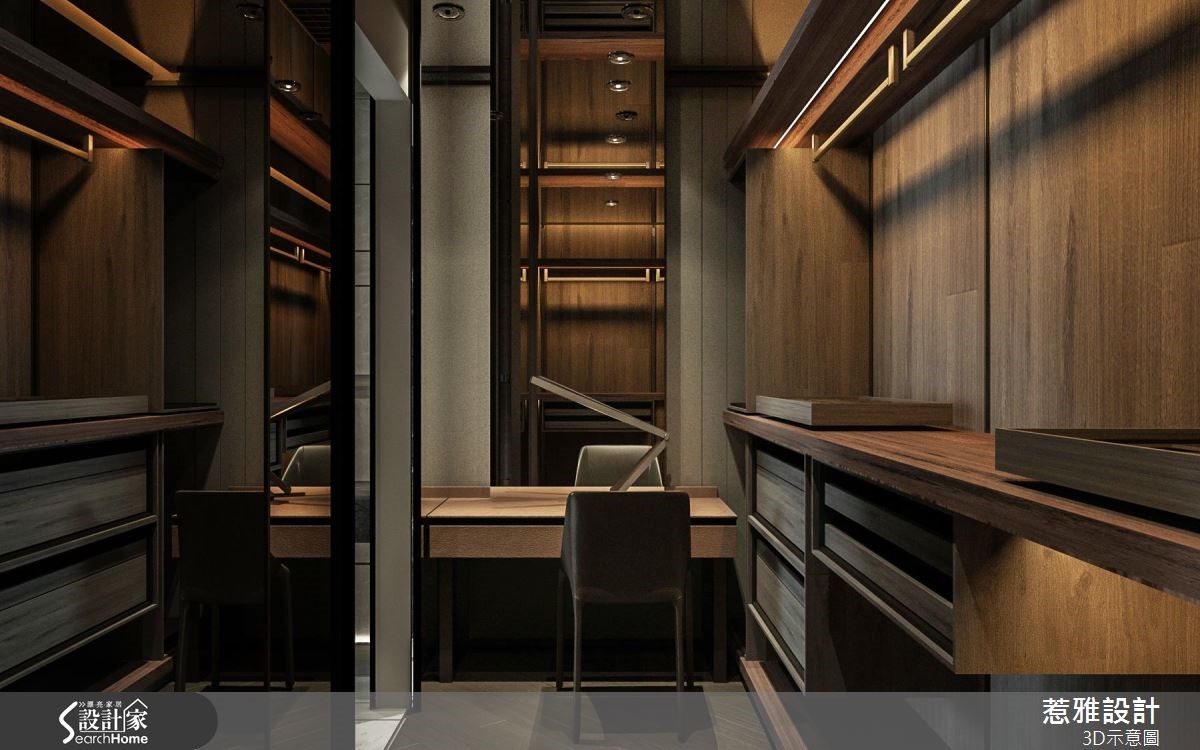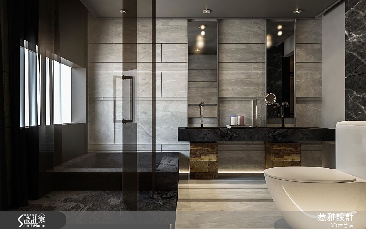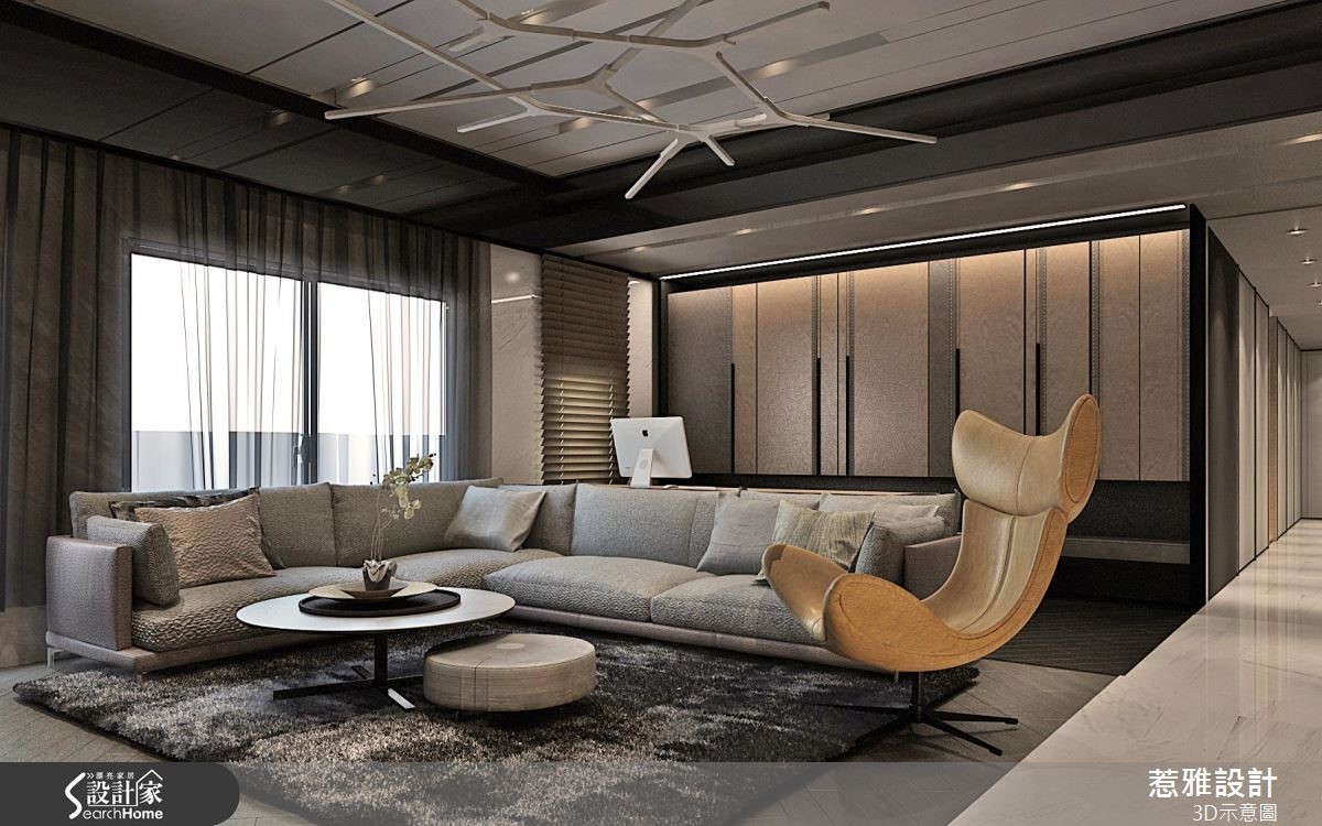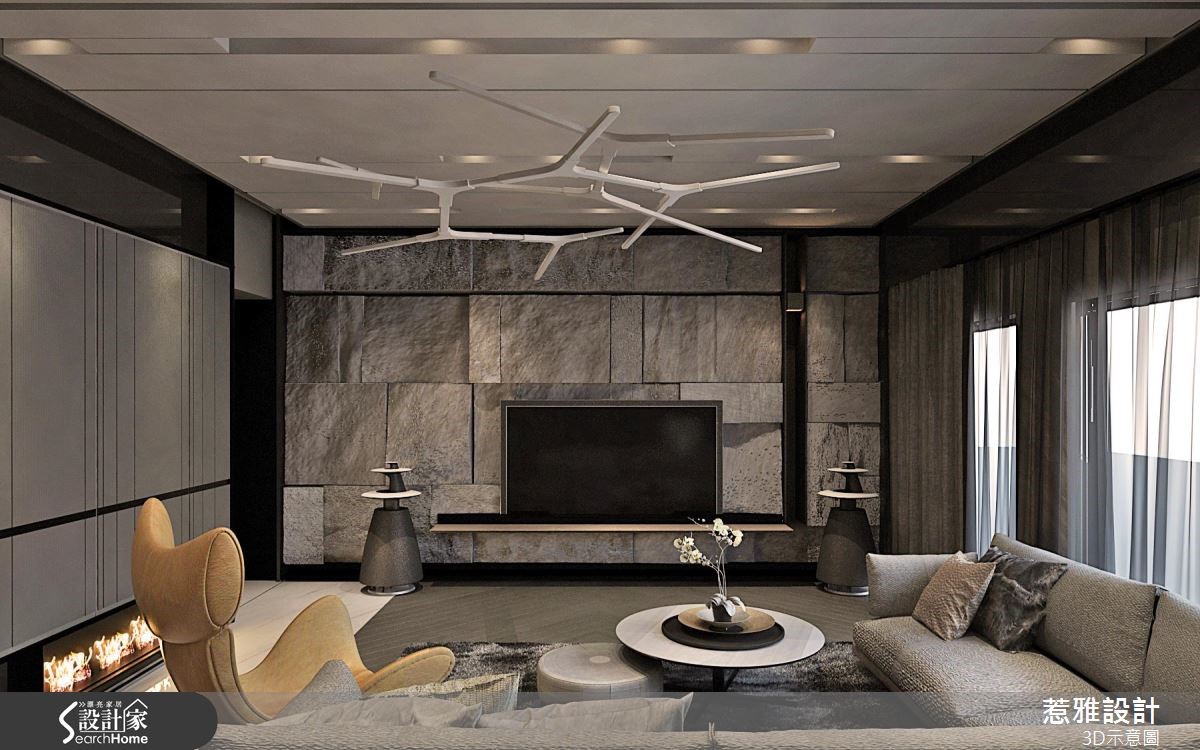 314平方米豪邸,透过镜面、黑铁、钛金属等材质,为从事金融业的屋主,打造低调奢华居家,不仅兼顾机能,也注重质感的堆砌,定制属于居住者的精致品味。【沉稳理性线条,引注雅痞气质】步入这处精品宅邸,神秘、沉稳的色调,以及充满秩序性的线条,勾勒出都会雅痞所钟爱的居家轮廓,客厅运用切割和半悬空的造型,展现粗犷原石的视觉张力,后方留有开放式书房,在色彩、灯光和线条的建构下,让空间气质更显知性优雅。【多功能吧台,小酌餐饮皆宜】长型廊道纵向串联动线,并在餐厨区纳入中岛吧台、电视墙和舒适的沙发,适合小酌聚会或是日常休闲,在家中就能尽情品味生活。私领域的规划媲美精品酒店,包含更衣室及卫浴等机能,利用大理石材、沉稳木质,调制时尚风采。