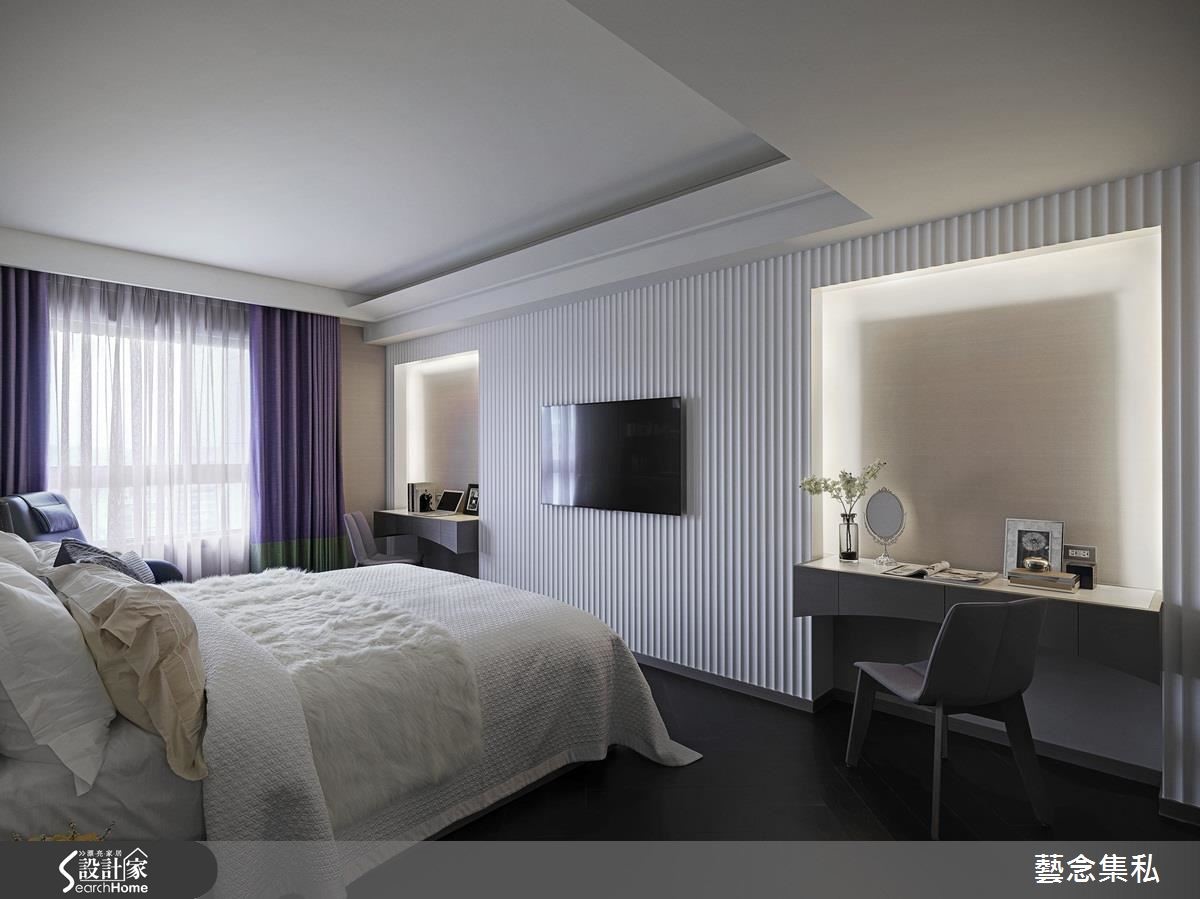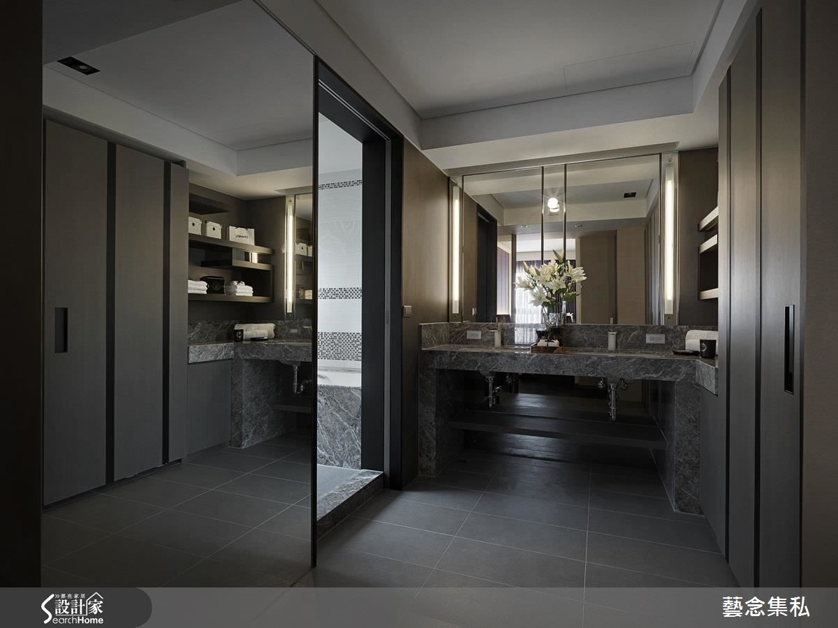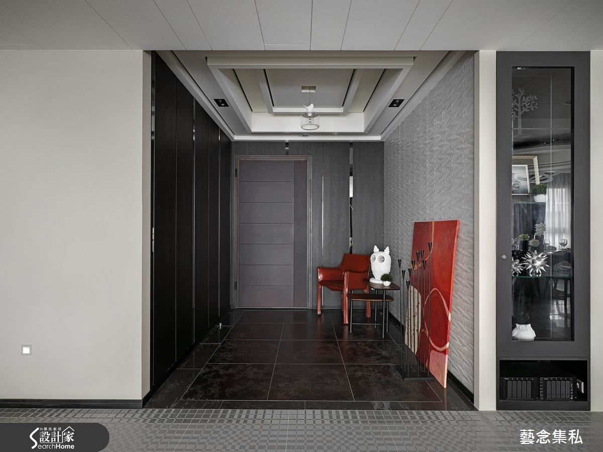 拥有一双儿女的屋主夫妻,期望能在繁忙都市生活中,坐拥专属一家四口的放松居宅。设计师透过由里到外、无微不至的高级定制手法,替居家空间注入人性温度,建构出时尚纾压的度假宅邸。【多材质打造时尚精品气息】玄关处,以灰白色几何立体砖铺贴墙面,搭配具设计感的单椅、桌几与猫头鹰饰品,开启充满艺术感的入门印象;客厅区于地面作出不同材质拼接,透过纹理及触感差异,隐性划分空间场域,电视主墙以皮革绷板、钛金条压边镶嵌灰镜,展现精品质感。【大器圆融,全家人互动好空间】餐厅则作出圆形天花板造型,对照圆盘餐桌,带入大器圆融的氛围,后方的开放柜体以花卉图纹及绿色交互穿插,构成曼妙的展示端景,一旁连结的是开放吧台和厨房,并植入展示机能,创造放松的用餐情境。