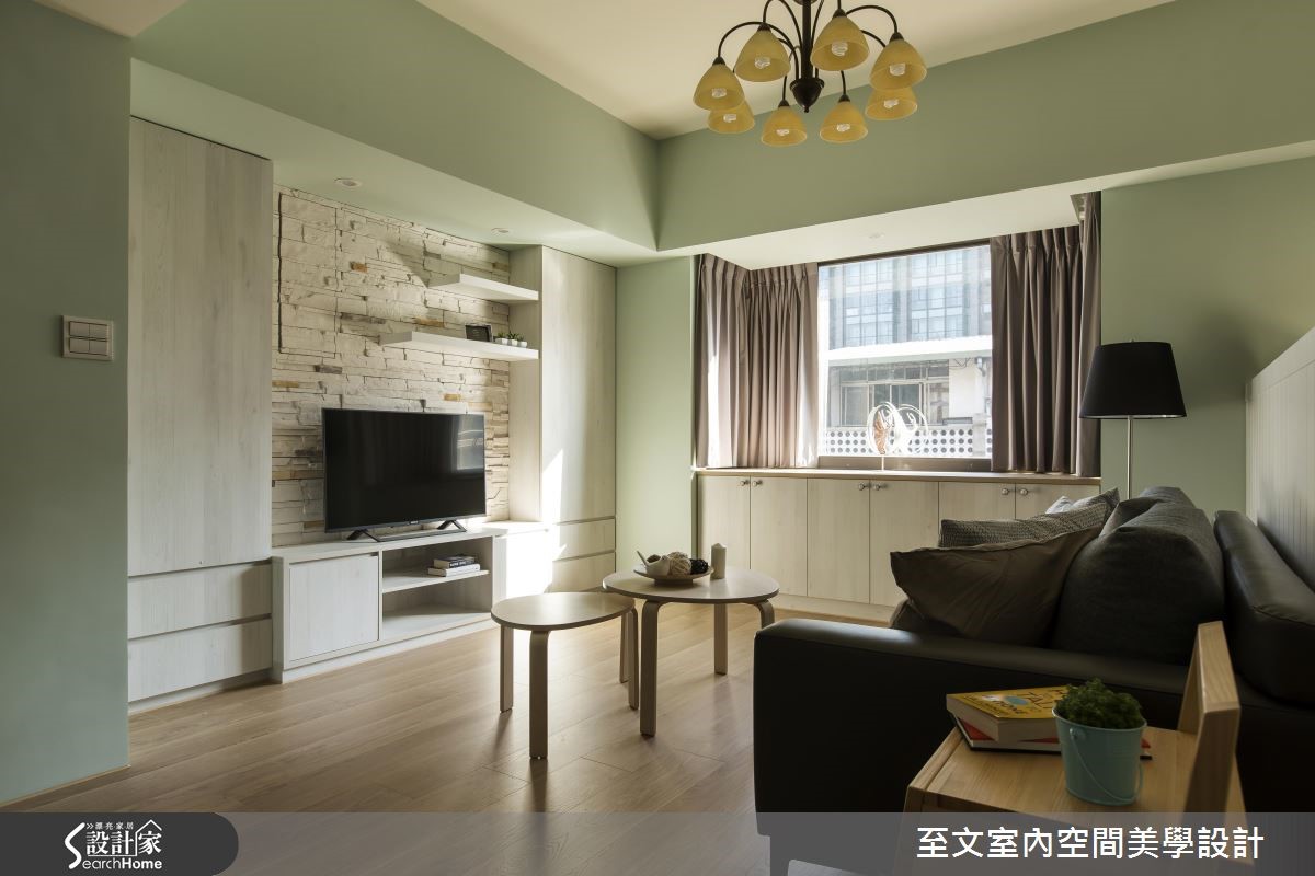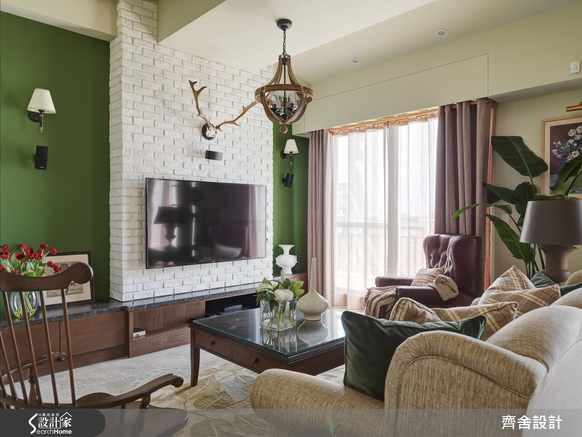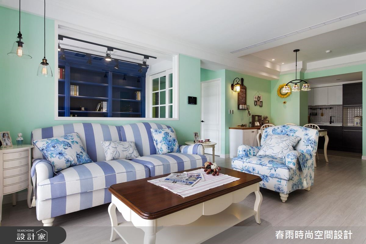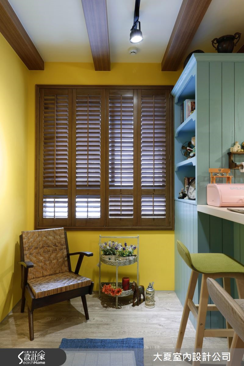 你是否曾有着想住进童话中森林小木屋的憧憬?只要精简掌握两个重点,包含"色彩搭配"与"材质运用",就能打造富有浪漫色彩的乡村风小窝。【樱草黄和复古红砖,造经典乡村】利用明亮清爽的樱草黄做为公共空间的主色调,并以红砖质地的文化石与木梁带出经典的乡村风元素,搭配仿旧家具,营造粗犷自然的氛围。开放式餐厨空间为本案一大亮点,因应单纯人口,设计师以吧台取代餐桌,去除制式用餐动线。以复古砖区隔开放式客、餐厅的界线,接着以水蓝色涂刷一字型厨房的柜面与吧台壁板,并在墙面拼贴花砖,构成甜美简约的乡村厨房。设计师更在木百叶窗边预留一张单人椅,打造光感十足的独享空间。