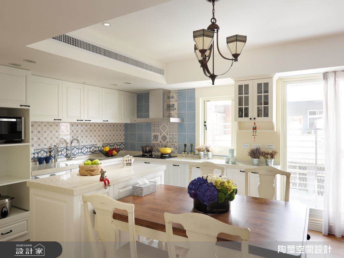 水蓝柜面与白色线板铺陈,乡村宅更显温柔