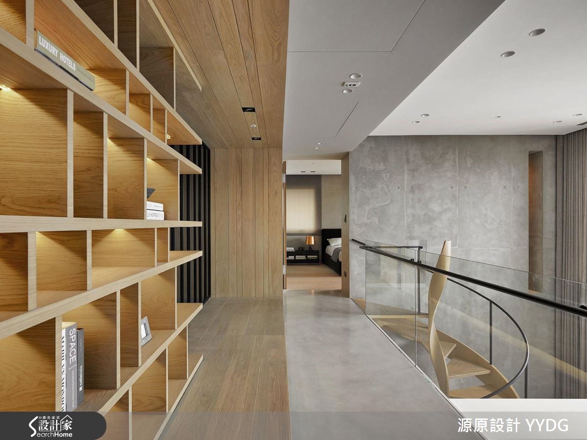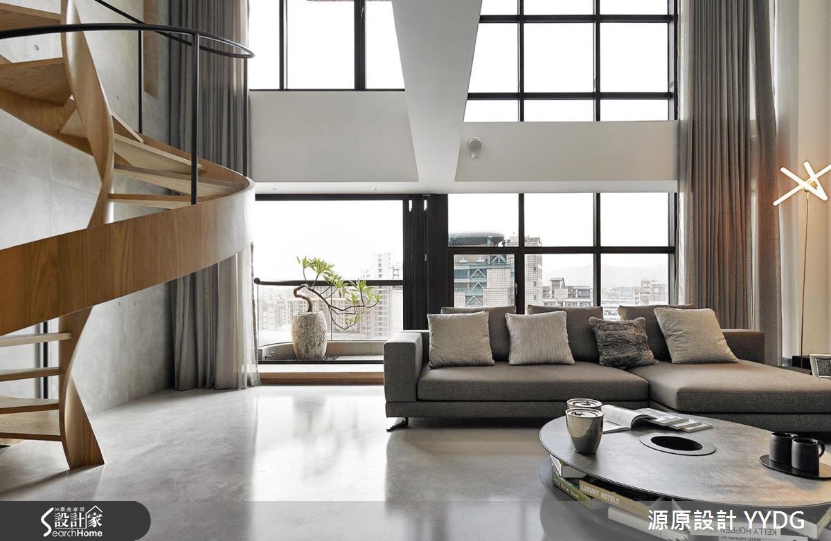 明亮、开阔,并拥有美好的窗景视野,彷佛遇见梦想中的生活居所!148平方米的复式楼建筑为屋主夫妻2人的住宅,纯粹的水泥原色、自然质材触理,以及一道绝美回旋而至的阶梯,不仅是串接上下场域的衔接点,更以优柔曲度向上翩然起舞,创造艺术美感。【螺旋梯设计,造高挑质感】一楼作为公共领域用途,包含客厅和餐厨,楼上则安排为半开放式书房和卧室。二楼楼板局部留白,不但让客厅更加开阔高挑,在书房阅读时,也能享受自由流淌的亮度及风景视野,达到放松、纾压的效果。运用橡木、石材的质朴原色,为喜爱自然感的屋主打造质感生活。随着优美的梯阶弧度向上行走,来到宽敞的阅读区,以温暖木色作为基础,并利用玻璃及铁件线条作为扶手隔屏,带来良好的视觉穿透性。卧室延续简洁色彩,并透过清透隔断延伸空间,创造宁静氛围。