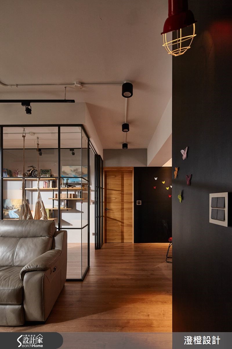 走进这处缤纷多彩的92平方米住宅,洋溢浓浓的可爱童趣感,不但带有北欧和Loft风格的放松自在,通透开放的玻璃书房内更设置一道吊床,让大人、小孩都能在家里开心玩耍,打造属于一家3口的北欧游乐园。【童趣与环保健康兼具的质感宅邸】玄关入口拼贴复古六角彩砖和花砖,迎入彩色活泼感,空间中也有许多充满童趣的设计巧思,比如栗子餐灯、黑板墙,以及依照卡通置物篮的尺寸打造的电视柜框格,可爱的图像除了丰富墙面,也吸引孩子目光,激发孩子的无限创意。客厅后方安排为玻璃书房,透过清透的玻璃隔断,方便父母随时照看宝贝,而视使用者需求,也保留使用弹性,既可以作为阅读书房,也可以是孩子的玩具室,或是平时的休憩空间,赋予多元的生活想象。
