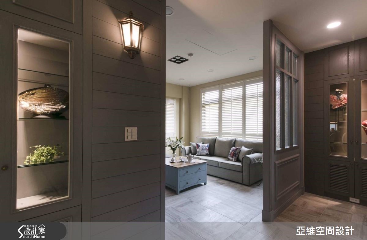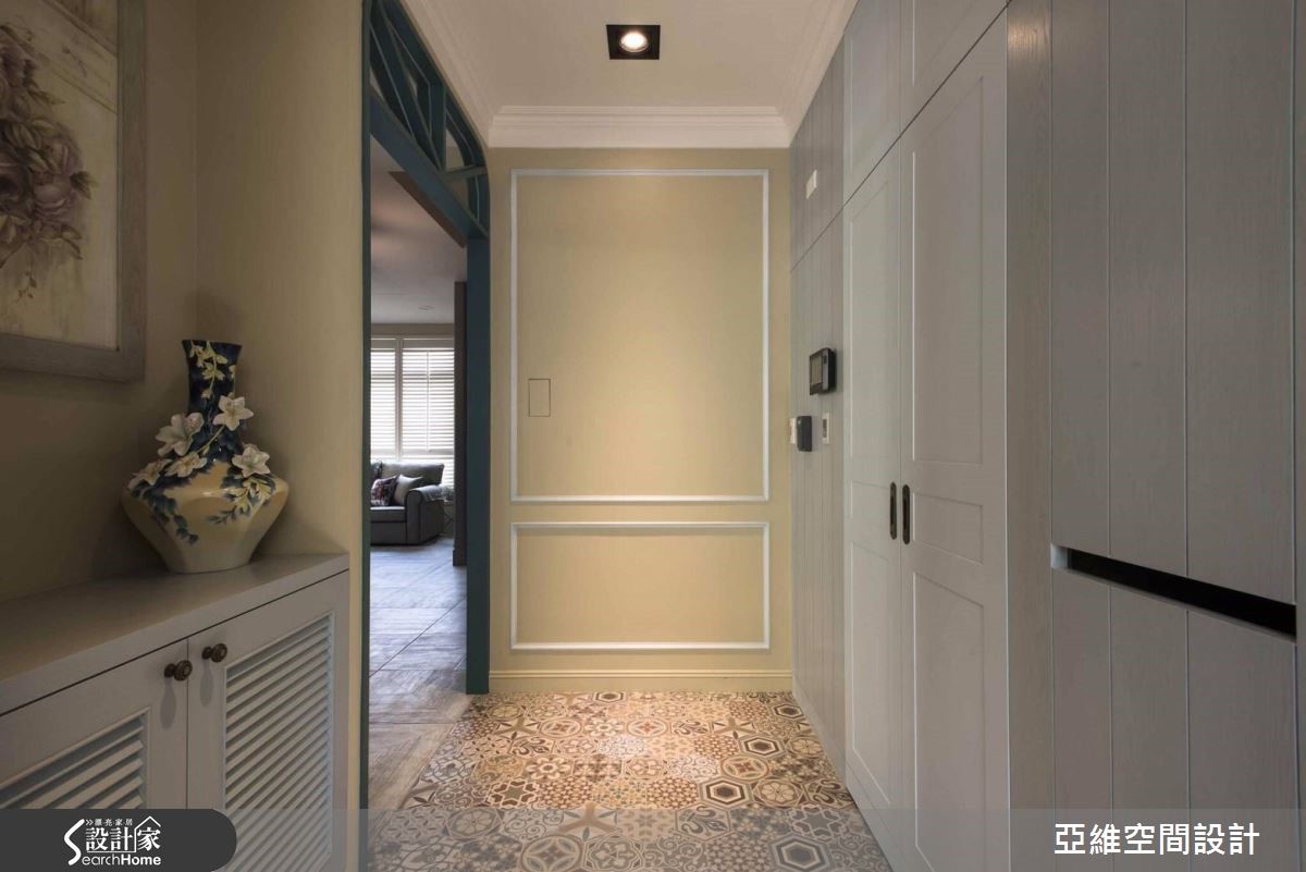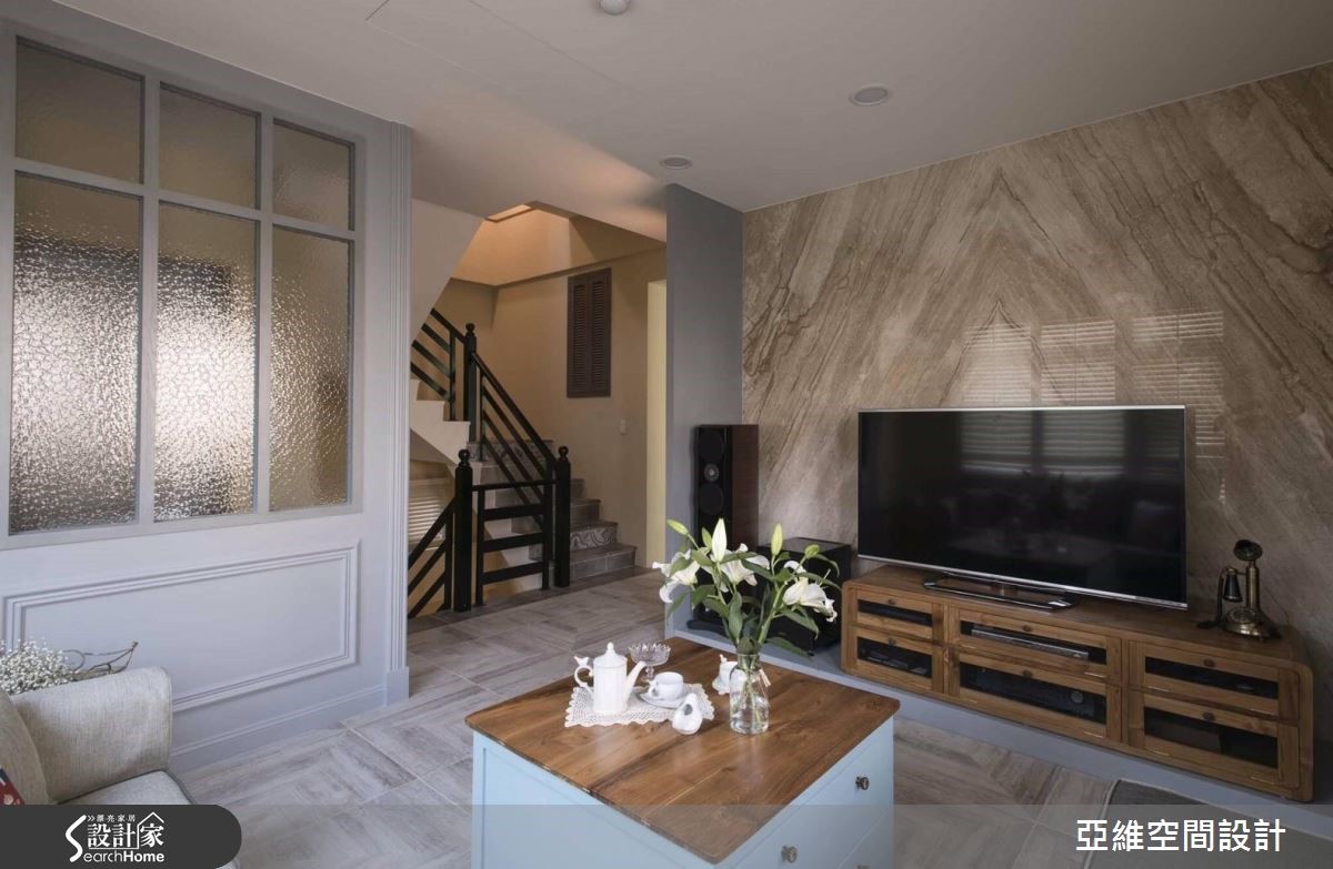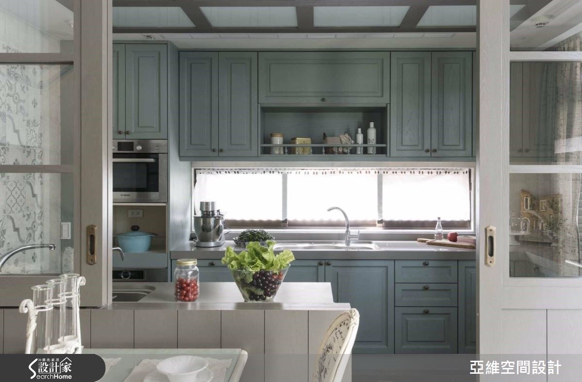 有别于普通的浪漫甜美乡村风,设计师透过法式乡村特有的古典与优雅,于室内挹注淡雅色彩,并结合户外的美好绿景,打造出城市之中的世外桃源。【融合对花纹理,调和温朴感受】玄关处,运用复古地砖的延续铺陈,引领自在的生活步调,再藉由动线的缓冲,转折进入客厅,呈现不同的居家风景,整体透过法式乡村风格作为基调,于电视墙融入对花纹理,搭配家具的木质色彩,调和出温朴感受。【拉门界定,适度调整隐私与开放】餐厅与厨房之间配置推拉门做出界定,在保有适度隔绝的同时,亦维系家人之间的互动关系,并妥善安置各项收纳及烹调机能,满足使用者所需。【斜屋顶设计,增添空间趣味性】主卧为复古砖地面,除了注入睡眠机能之外,更依循屋主需求,规划轻食场域,增添浪漫的生活意趣;同时考虑男主人的需求,规划书房兼飘窗区域,以斜屋顶创造有如童话木屋的氛围,结合游戏、阅读、休憩等机能,共享天伦之乐!