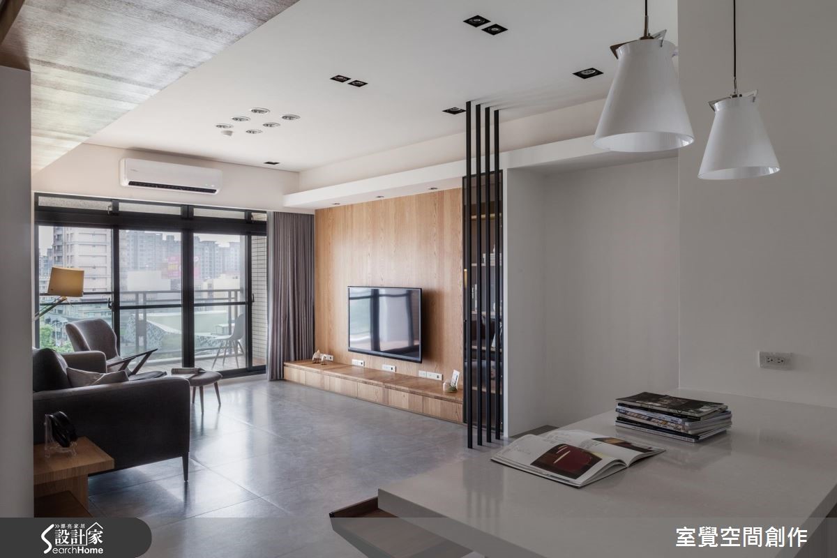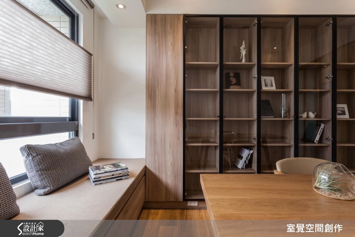 由于格局无变动需求,设计目的以美观、实用为主,并因应屋主喜好,为现代居家注入温润明亮的北欧元素,并依屋主性格以理性、清爽的材质配置,打造静谧风格。 【木皮虚化大梁,架高地板添层次】抹除居家空间的多余赘饰,设计师以简单的动线规划,凸显屋案既有的采光与窗景优势,以纯粹的色调与木元素,展现设计质感。入门处以镂空格栅作为具有穿透性的隔屏,维持开阔视觉。压梁问题以实木皮虚化梁面,与电视墙面相互对应,营造温润自然气息。巧妙将独立书房地坪垫高,并将木地板延伸至公领域与走道,创造空间层次与链接,并在书房内部设置大量展示收纳柜体与飘窗,打造富含休闲机能的空间。