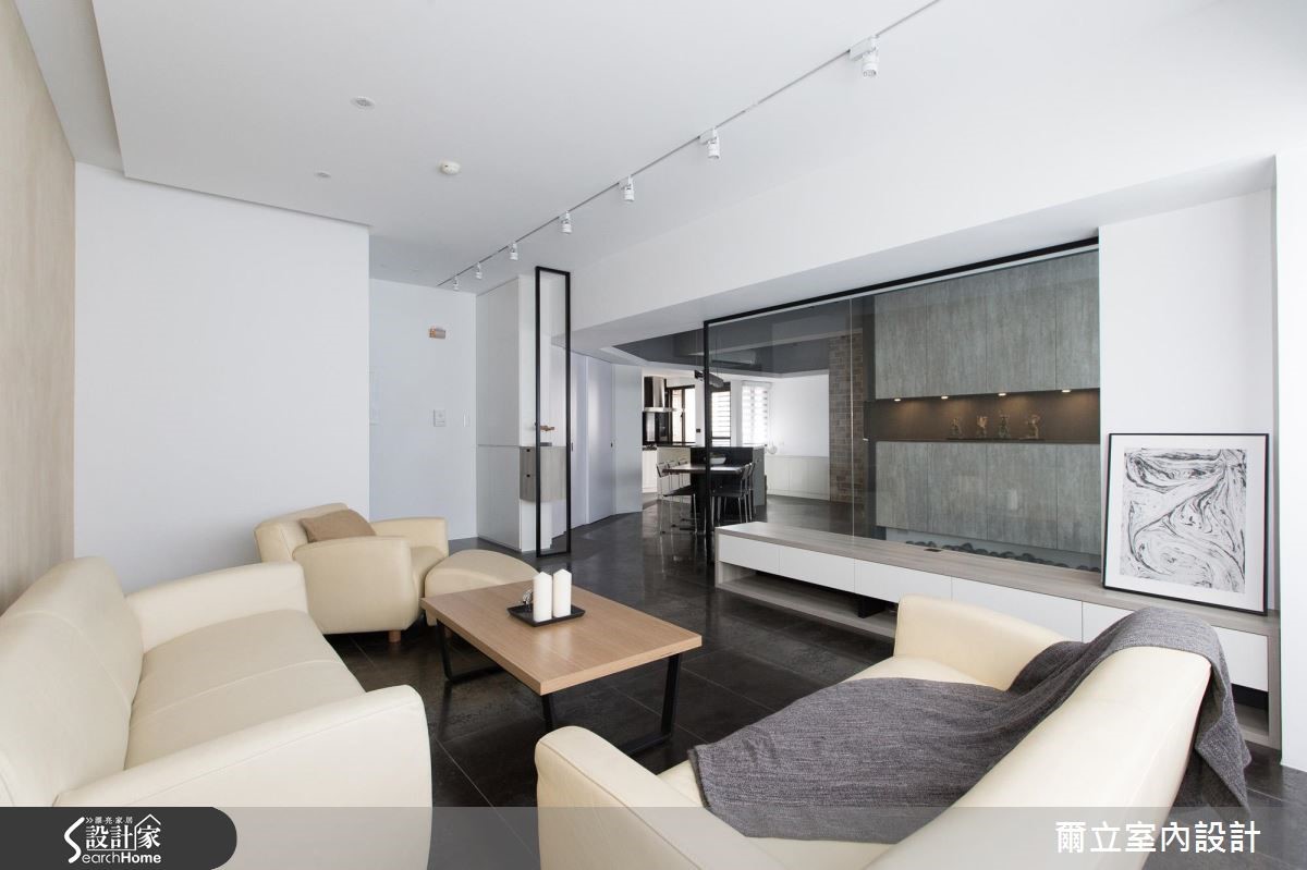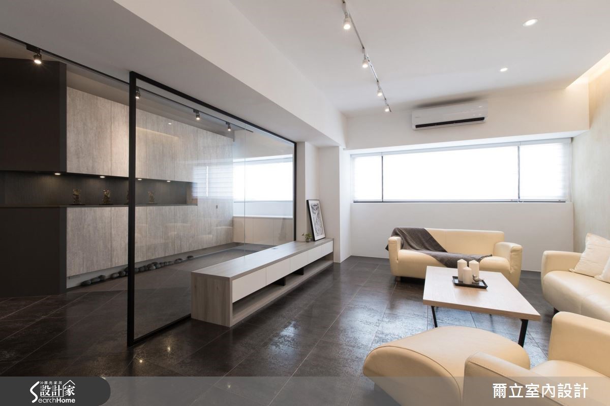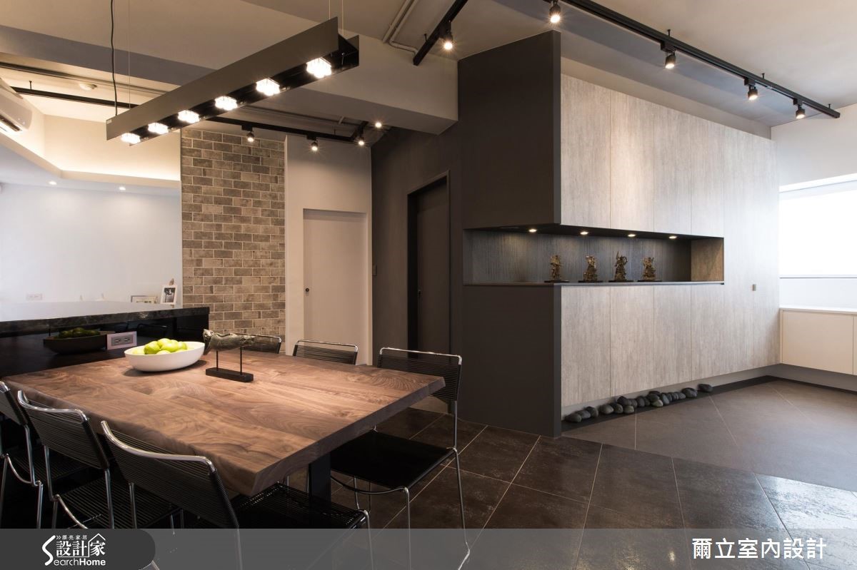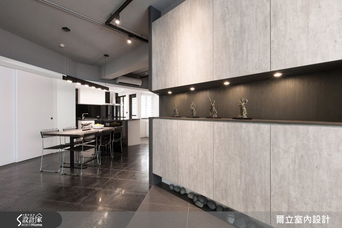 为改善老屋漏水、设备陈旧问题,屋主夫妻决定依赖专业设计师,重新规划动线与采光。跳脱方正格局的迷思,以U型轴线规划,竟能塑造方正格局无法达成的通透光感!究竟如何能办到? 【去除隔断,纳入明亮采光】由于居住人口单纯,设计师拆除原先厨房、和室与次卧等多余隔断,成功援引大量光线进入室内,让视线不受零碎隔断阻碍,为公领域双倍扩容。在格局改造方面,设计师在开放餐厨空间让动线U型转弯,让客、餐厅动线得以紧密串连。用餐区更利用大面斜墙结合柜体与推拉门,达成多维利用机能。客厅前方的斜角柜除了展示屋主的收藏品,更利用斜面化解深柜笨重感。客、餐厅之间以大量黑白纯色搭配玻璃隔断,营造时尚俐落气息,让视觉更显通透。全室地面皆以意大利金属砖搭配凿面石英砖,顺应空间角度混搭拼贴,营造宛如蒙太奇的分镜效果。设计师以不露痕迹的分割与重组,为屋主创造崭新的居住思维。