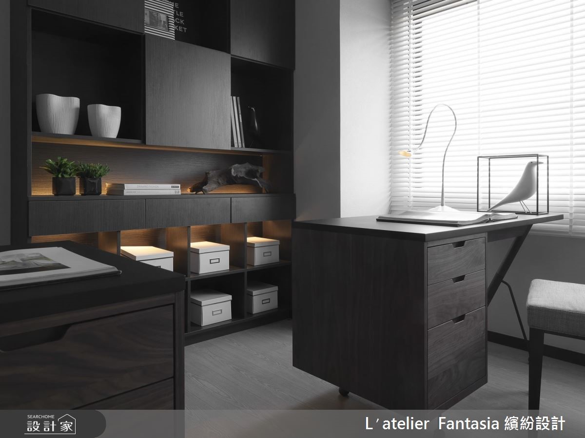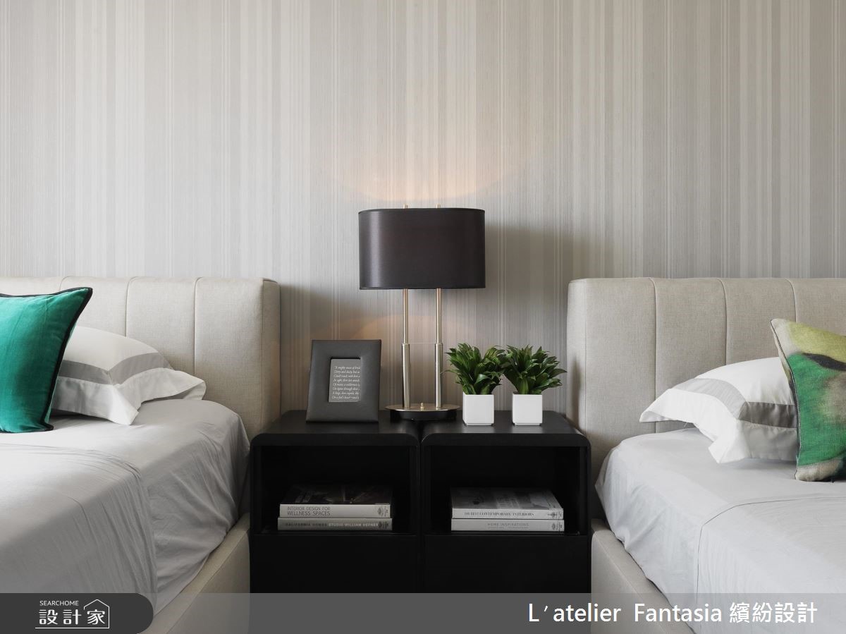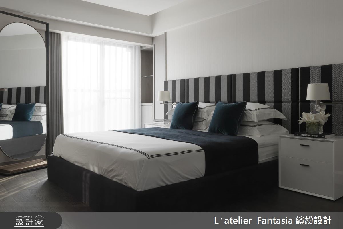 温柔、简约的灰阶色调,搭配艺术气息浓厚的现代摄影作品,这是为热爱摄影、音乐,独具美学品味的屋主所定制的居所,并以圆融曲线和自然植栽点缀,柔化方正理性的现代风,在生活的每一刻,举手投足间皆能演绎迷人优雅的生活内涵。 【开放设计与低彩度带来沉稳层次】恰到好处的黑、灰、白比例,在开放式的公领域中调制出清爽而舒适的色彩层次,搭配深邃色泽的木皮,利用材质的差异性,表现丰富的视觉效果。客厅和餐厅间横亘的梁柱,运用镜面虚化存在性,拉抬了空间高度,也为生活空间注入银亮的时尚色泽。【定制款家具饰品彰显屋主品味】而家具和家饰的选择也带有成熟而温柔的细腻韵味,沙发摆设丝质的进口布艺订制抱枕,在触感极佳的面料上,呈现出如东方水墨的晕染笔触;墙面则悬挂以光影为题的摄影作品,将绝佳的生活品味,引注于日常生活之中。【私人空间以酒店式规划注入质感】主卧室延续简洁的色调、线条安排,带来精品饭店的质感氛围,也埋下视觉伏笔,巧妙凸显出床头墙的条纹对比。至于为孩子们所规划的阅读书房,运用布织质感的灰色壁纸作为温文背景,加入裱框的摄影作品装饰,从日常点滴中感受生活美学的潜移默化。