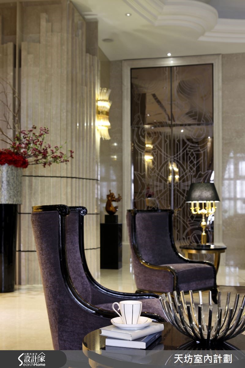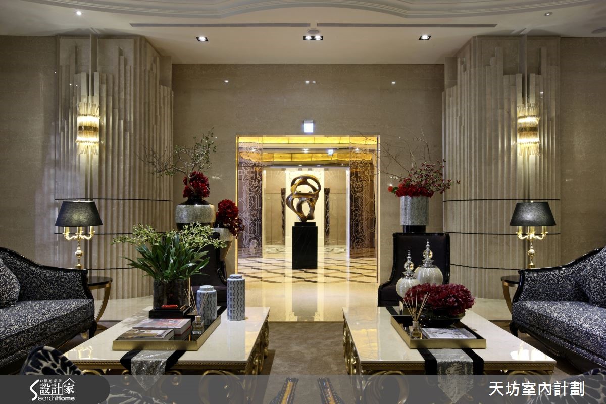 本案串联家、生活及艺术的空间思考,设计者将思想和态度,通过空间设计的转换,以独特视角清晰表达,让会所不仅只是单纯追求华丽表象,更让使用者产生归属感。将沙发、家具与艺术品相融,让石材纹理与柔美灯光相互辉映,跳出新东方美学的独特气质。【以金色饰边,轻奢又优雅】整体设计重视室内外的协调,强调建筑风格、景观环境之间的统一性,以对称手法强调深远具层次的框景,建构赏心悦目的空间气势。天花则呈现圆融的框架,显现挑高扩容,且透过大理石材的运用呈现高雅气度,搭衬金色表现精细而费工的线条,刻划优雅的视觉。