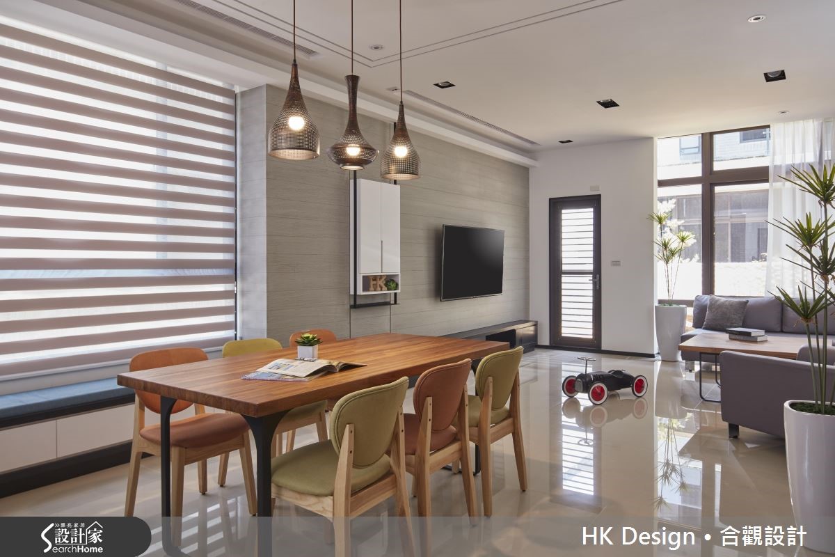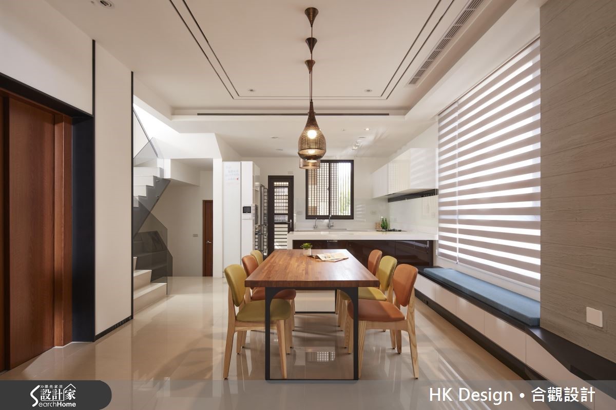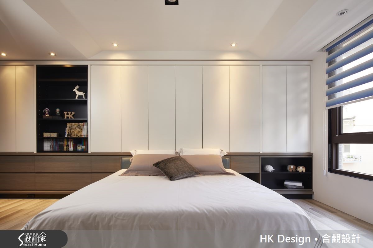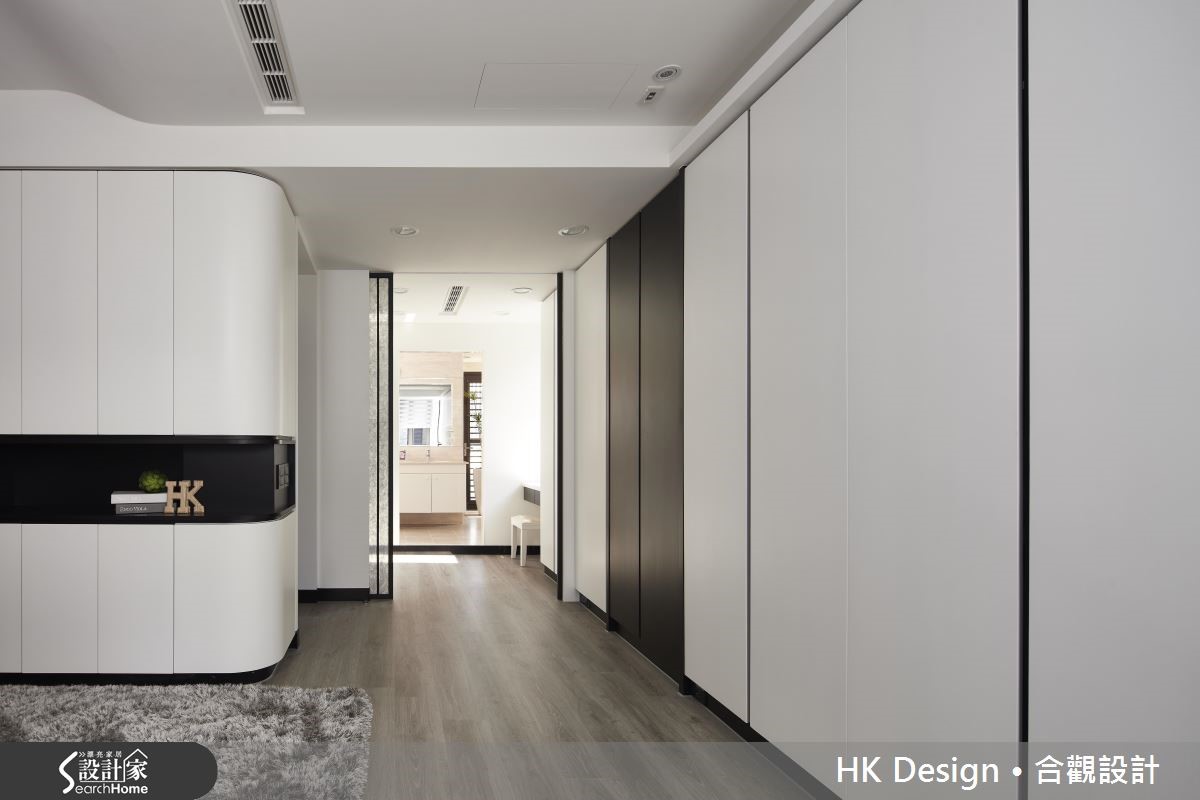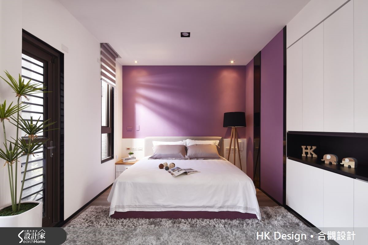 这座独栋楼坐拥六层楼格局,设计师在了解一家四口的生活习惯后作出分层规划,保留优秀采光条件。并让起居、休憩、迎宾、聚餐等各机能完美配置、恰如其分地安置于流畅动线之中。【不做隔断的通透设计,维持明亮】设计师保留优秀的采光条件,为空间注入明亮的光线,并在客厅墙面加入置物展示空间,嵌入轻盈的材质或悬吊柜体。一旁餐厅呈开放规划,配置低矮中岛吧台,形成餐厅、厨房交界,赋予穿透视感,打造公共区域流畅的动线。主卧融入利落线条设计,在天花、柱体边角等处融入圆弧设计,增添温柔的视觉。并挥洒黑白主调,画龙点睛地在床头墙铺陈紫色调,带出浪漫性格。次卧房于床头加入储物空间,做出隐藏式抽盘,取代常见的床边柜配置,充满弹性且内敛地表达实用机能。