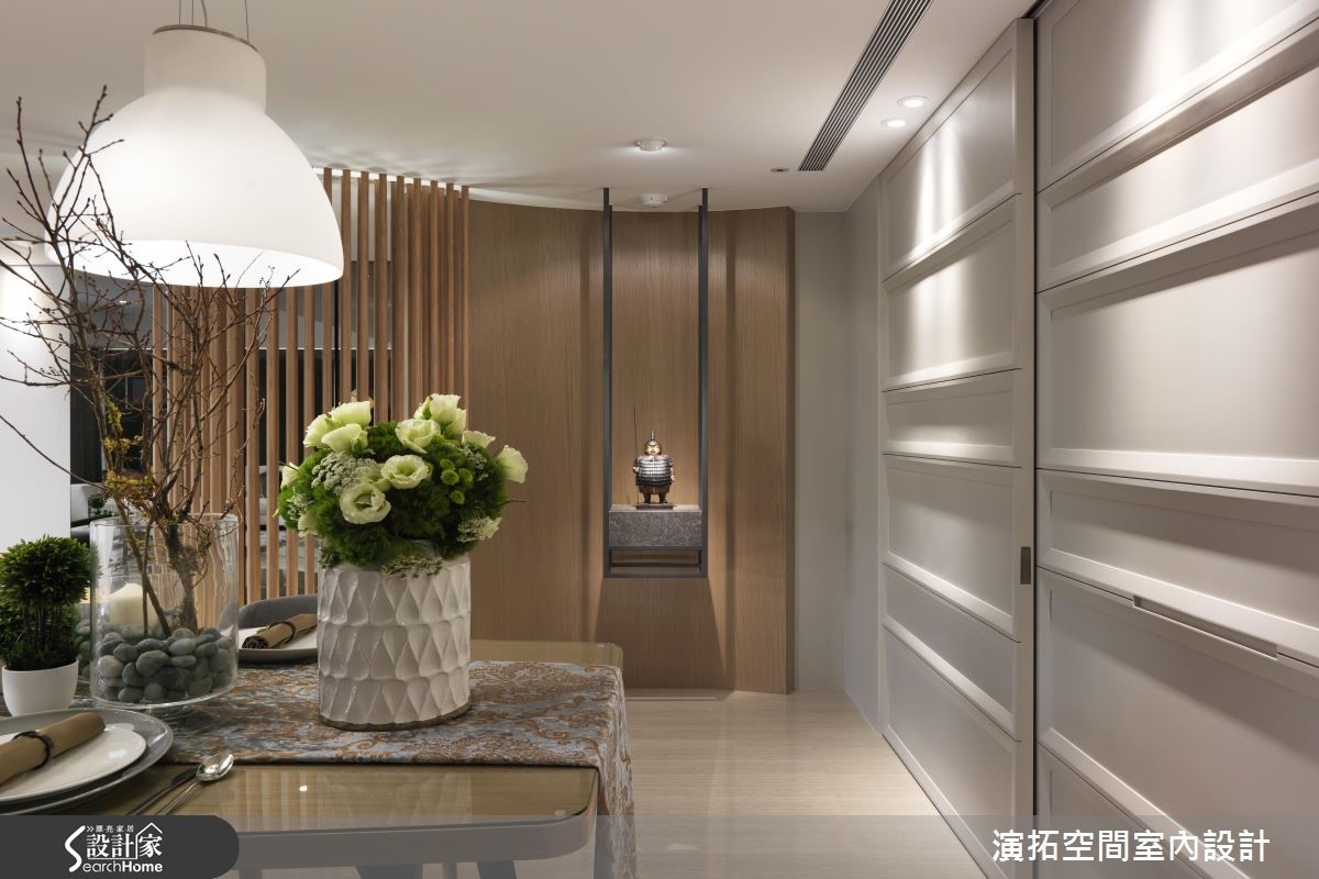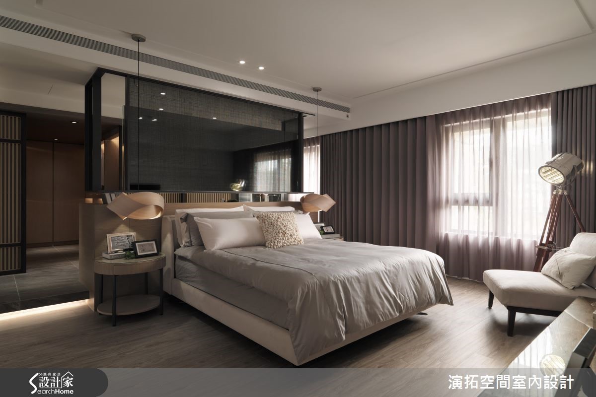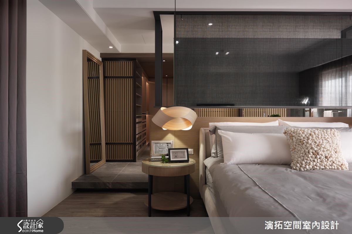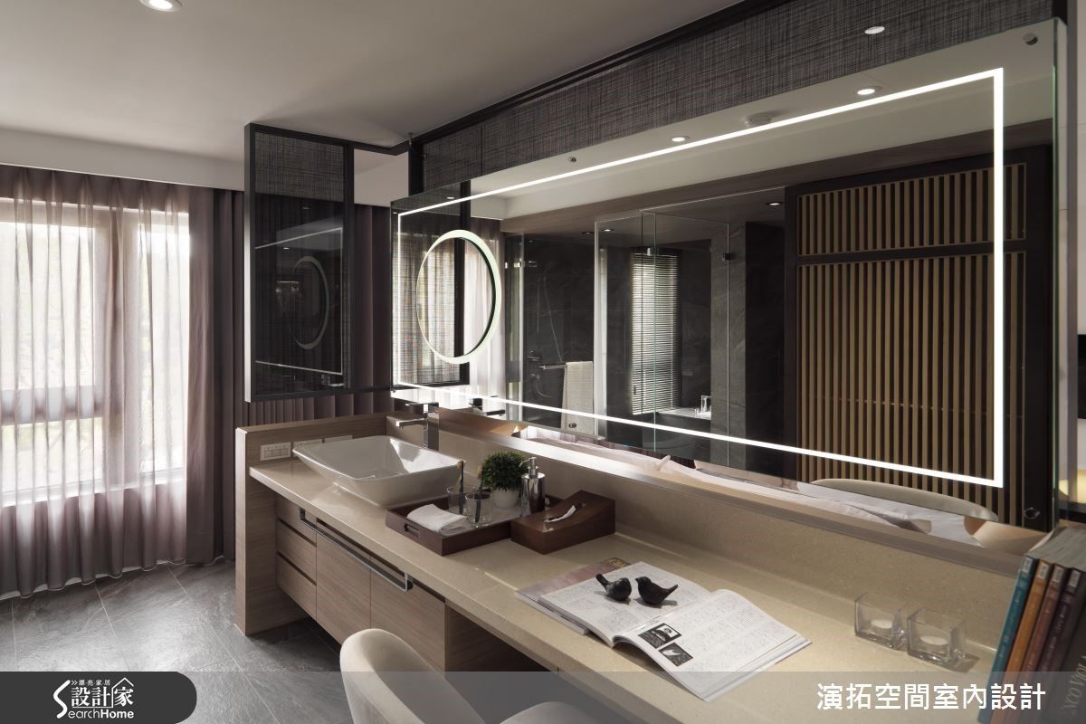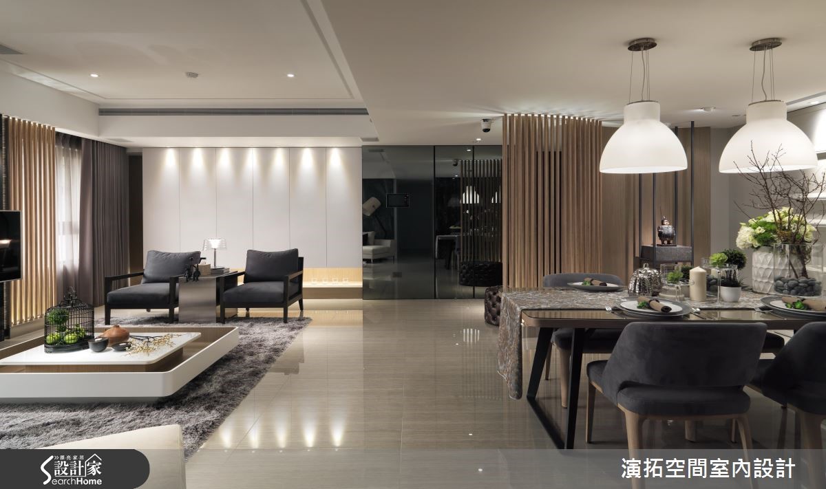 为了缩短装修的施工期,此间139平方米的新成屋于预售屋时期即采用客变(客户变更;建设公司在施工阶段依照屋主需求,预先提供变更格局、设备等服务),也能避免耗材的浪费与不环保;而希望能拥有入住酒店般的舒适与享受的屋主,设计师会如何帮他完成愿望呢?【色彩与材质,营造高质量居所】设计师以现代简约且利落的材质,混搭呈现出有如入住星级酒店的生活氛围。进入家门,玄关木质隔屏上浪漫地写上" Ciao "彷佛欢迎回家来度假;公共空间地板如光亮的大理石与深灰系家具、地毯、黑色镜面相映衬出具高质感的空间气息。【黑色大理石,打造优雅公领域】客厅电视墙以大片开窗与黑色大理石作包覆,背墙则覆上欧洲古典建筑的墙纸,呈现优雅美感。餐厅墙面延伸黑色大理石,搭配造型利落大方的餐桌椅与灯饰,展现大器质感,设计师并透过白色推门设计,将收纳柜体与家电器具彻底隐藏。【加高石材地板,划分更衣场域】卧室则多采用木质语汇做铺陈,并于床头后方以石材为地板材质,加高后成为卫浴空间与更衣空间,同时规划出拥有长型镜面的梳妆空间,完整满足屋主入住酒店风居宅的梦想。