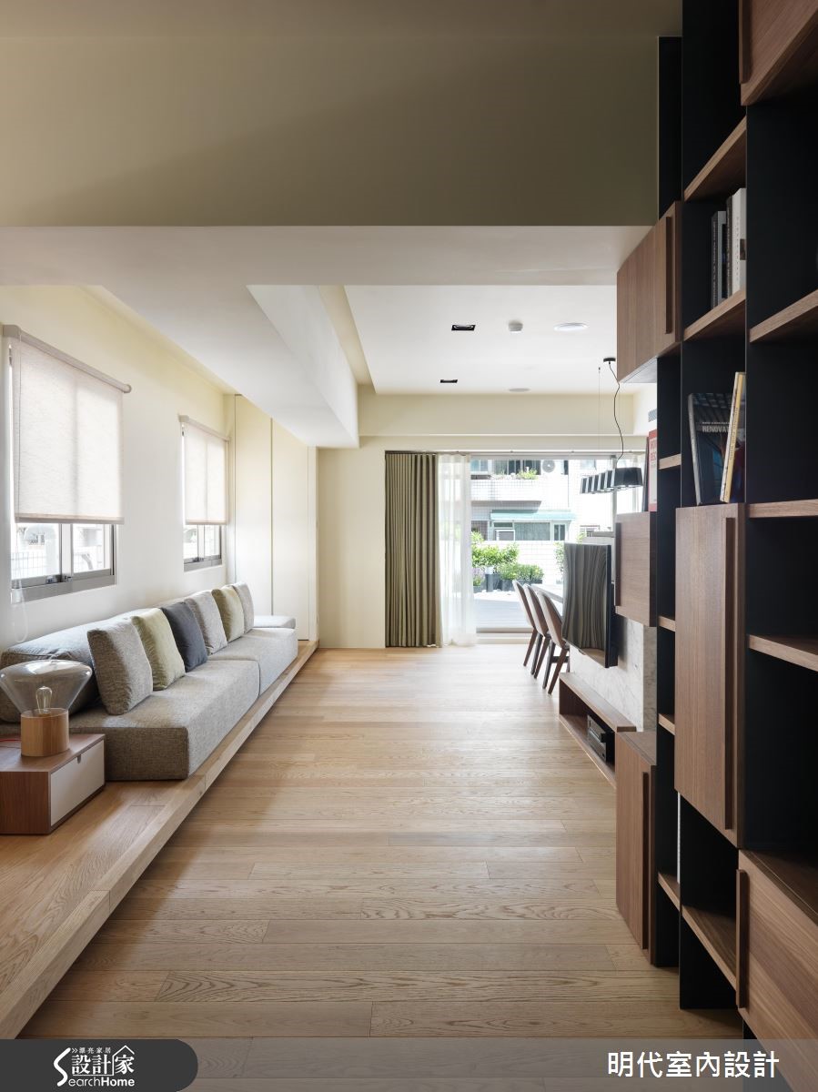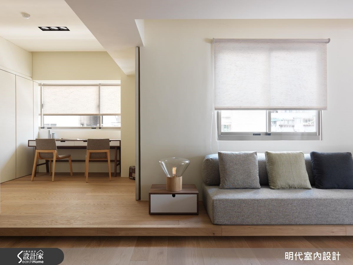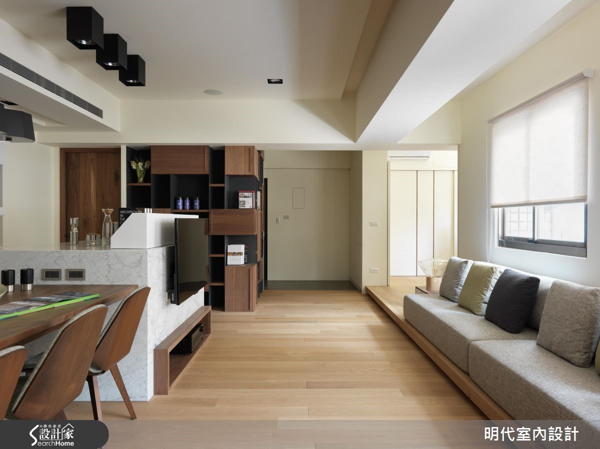 20年以上的大龄二手房,是新婚夫妻的生活新居,设计师改善动线不佳的屋况,并导入阳光、绿意,结合休闲风的整体规划,发挥居家露台的效果,使空间明亮度更加乘,打造出清新甜蜜的两人世界。 【与好采光一起迎接新婚生活】设计师透过大面落地窗的设计,连结大露台与室内范围,把客厅、餐厅、厨房三者开放串联,不仅共享窗外采光,更凝聚了夫妻之间的情感交流,无论是身处何处,都能感受到户外的蓝天绿意。【用木地板打造随兴自在的生活感】设计师更于整室铺陈木地板,摆脱制式的沙发形式,将地坪架高取代沙发椅脚,让座椅兼具飘窗功能,增添随兴自在的生活感,同时导入双动线,让电视墙兼具吧台机能,将厨房、餐厅与客厅予以连贯,使空间可随时展开互动,并与阳光、美景相伴,共度惬意时光!