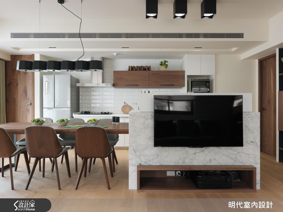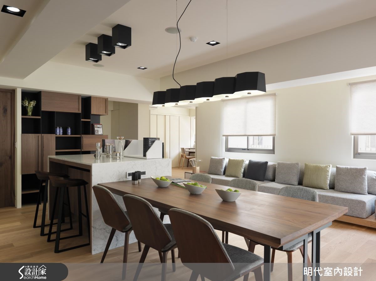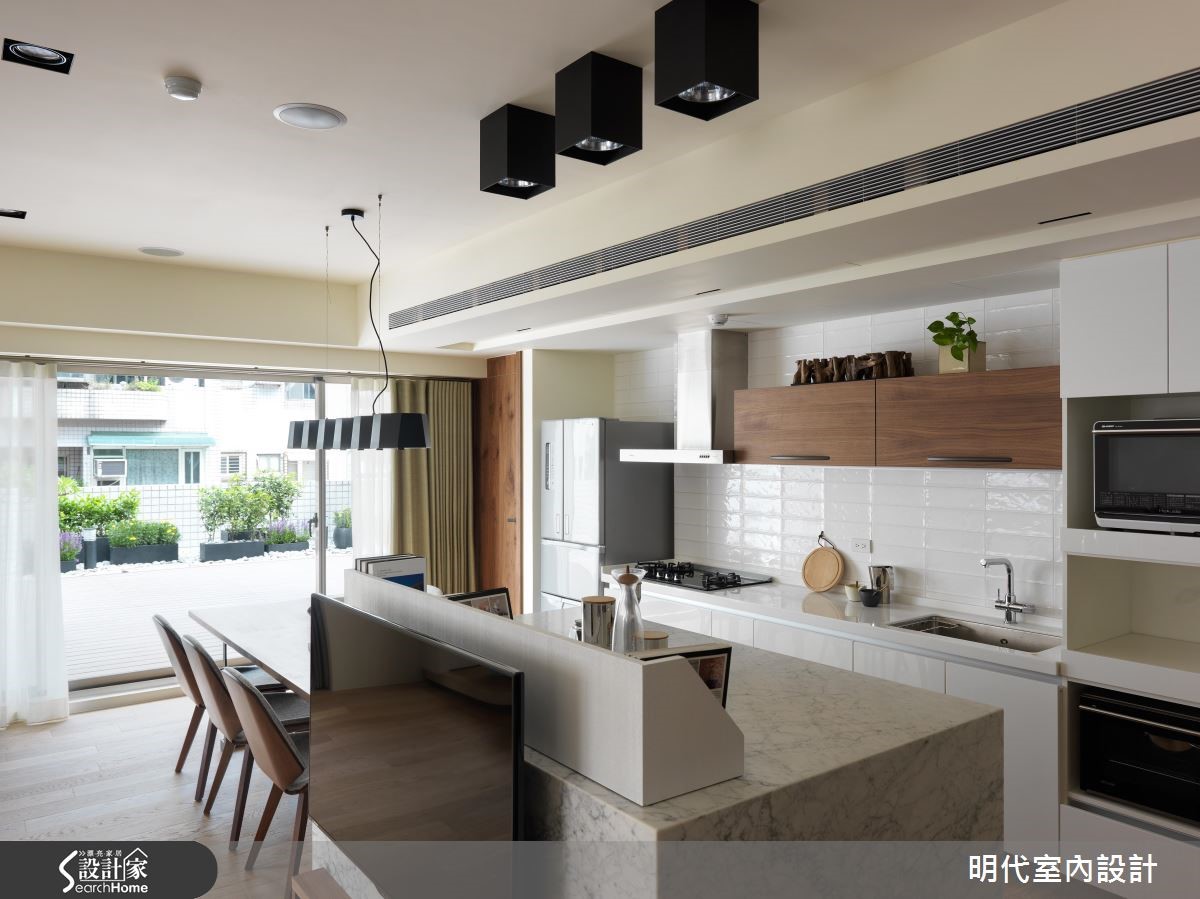 20年以上的大龄二手房,是新婚夫妻的生活新居,设计师改善动线不佳的屋况,并导入阳光、绿意,结合休闲风的整体规划,发挥居家露台的效果,使空间明亮度更加乘,打造出清新甜蜜的两人世界。 【与好采光一起迎接新婚生活】设计师透过大面落地窗的设计,连结大露台与室内范围,把客厅、餐厅、厨房三者开放串联,不仅共享窗外采光,更凝聚了夫妻之间的情感交流,无论是身处何处,都能感受到户外的蓝天绿意。【用木地板打造随兴自在的生活感】设计师更于整室铺陈木地板,摆脱制式的沙发形式,将地坪架高取代沙发椅脚,让座椅兼具飘窗功能,增添随兴自在的生活感,同时导入双动线,让电视墙兼具吧台机能,将厨房、餐厅与客厅予以连贯,使空间可随时展开互动,并与阳光、美景相伴,共度惬意时光!