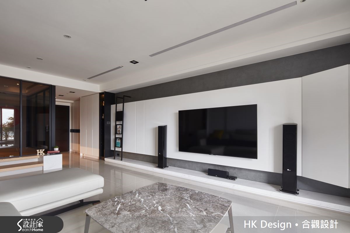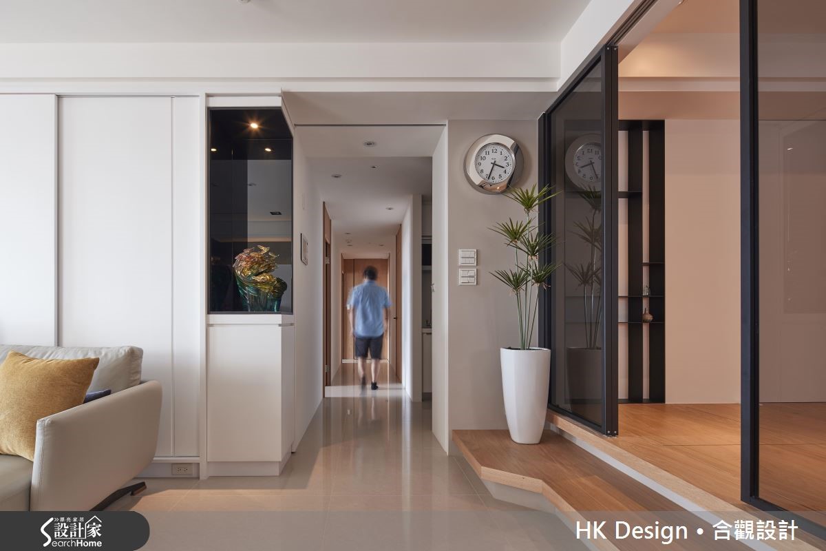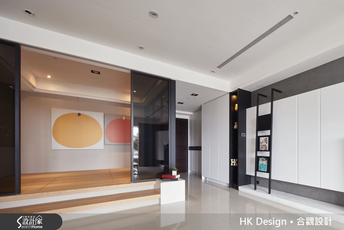 延续先前愉快的合作经验,屋主一家四口购入的新居,再次找上了合观室内装修工程团队。双方凭着默契与情谊,融入对于空间美感的理解、机能的佈局,展现出住宅的现代风貌。 【雾面材质,展现俐落现代感】公共区域呈现出开阔格局,给予简约有型的天花线条。而橱柜的门或拉门融于牆面中,色彩则加入黑白对比,以雾面白色冷烤串联沙发牆、电视牆,藉着延伸牆面来拉长整体空间感,搭配採光成就时尚明亮的氛围。考量到长辈需求,和室的配置中,加上升降桌及收纳机能,提供亲朋好友泡茶及聊天的互动区域。同时配置深色门片,让和室坐拥隐私、可兼作客房使用。一旁通往卧房的廊道规划滑门,将公私范围做出分界。来到主卧,可感受到俐落简明的调性,巧妙让书桌呈现弹性设计,让人可将桌体收整于牆面内,需要时再抽拉出来,充分运用每个空间。次卧在床头背牆加入温暖木素材,牆面中段则加入淡紫色色带,呼应衣柜的腰带设计,连成俐落的线性表情。