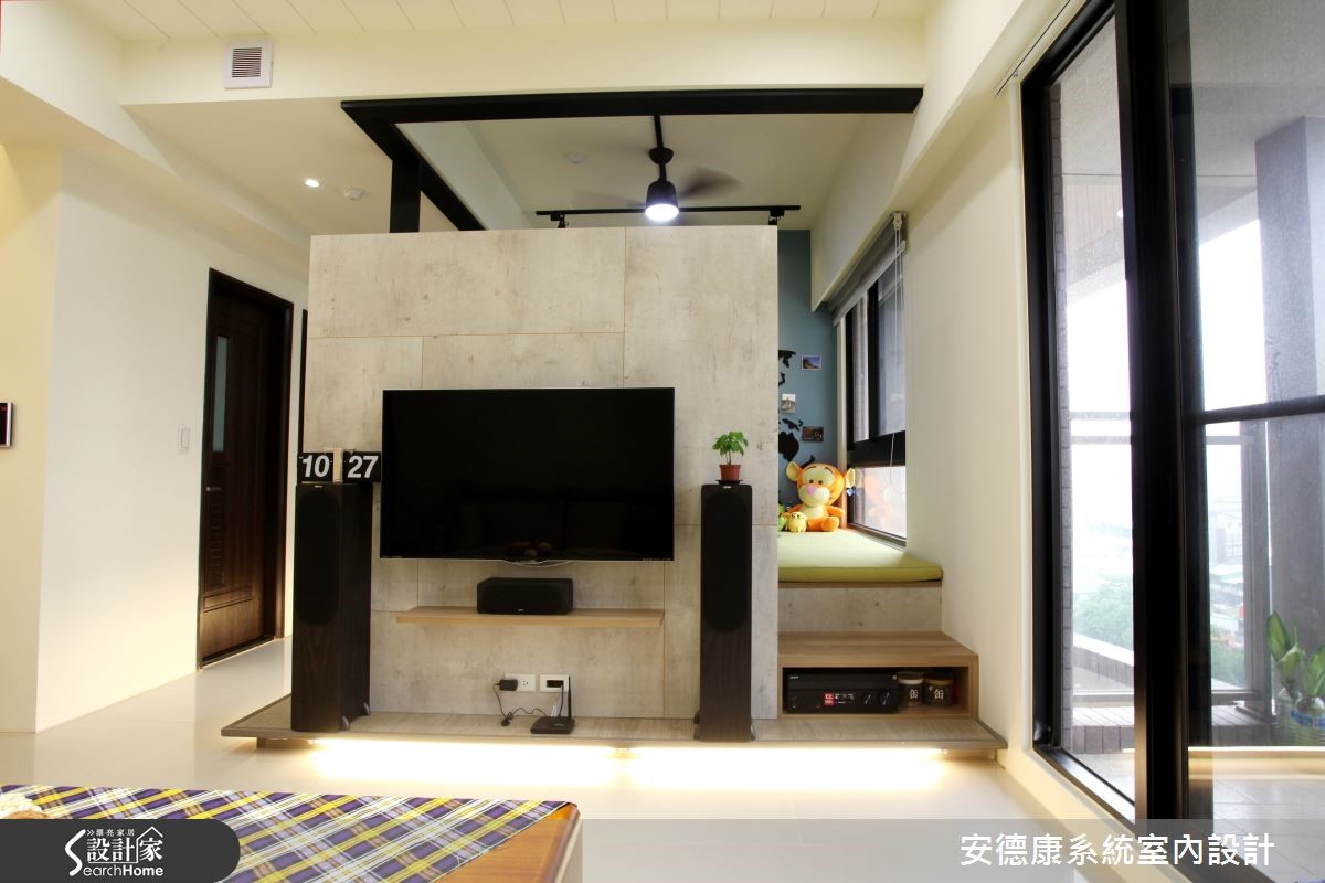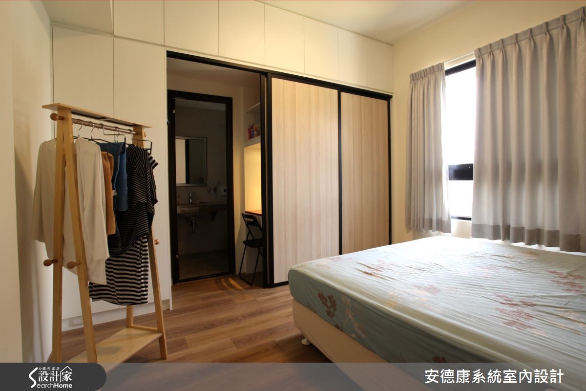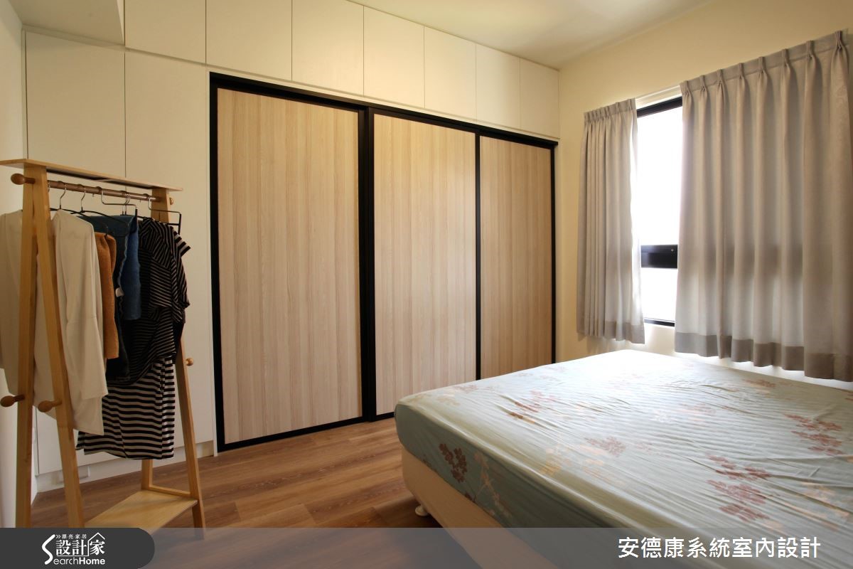 年轻夫妻购置市中心的屋案,坐拥优良的生活机能,惟预算有限,故在室内环境必须依靠设计达到扩容目的,并呈现放松舒适的氛围。设计团队以系统柜有效控制预算,达到风格机能兼顾的休闲美宅。【拆一房微调动线,放大公领域】为使83平方米的室内空间兼顾机能与美感,玄关设置镜面与大面积收纳柜,并将突兀的电箱隐于灰镜后方。让出电视墙后方的一间居室,當作开放多功能空间,同时动线微调,有效达成擴容目标。並改善原有的空调排水问题,拆除隔断重新配管。而电视墙与后方多功能房则以系统柜划分,半高设计具有视觉穿透性,也富含收纳机能。空间开阔的同时也能满足需求。而柜面运用仿清水模的质地,散发高冷质感,成为空间中吸人眼球的焦点。同時,设计师更看见未来需求,在地坪下方加装间照的多功能房预留铁件结构M以便加装拉门,方便作为游戏室或卧房。主卧延续机能设计,将卫浴、更衣间与梳妆台隐于柜门后方,空间回归简约大方。