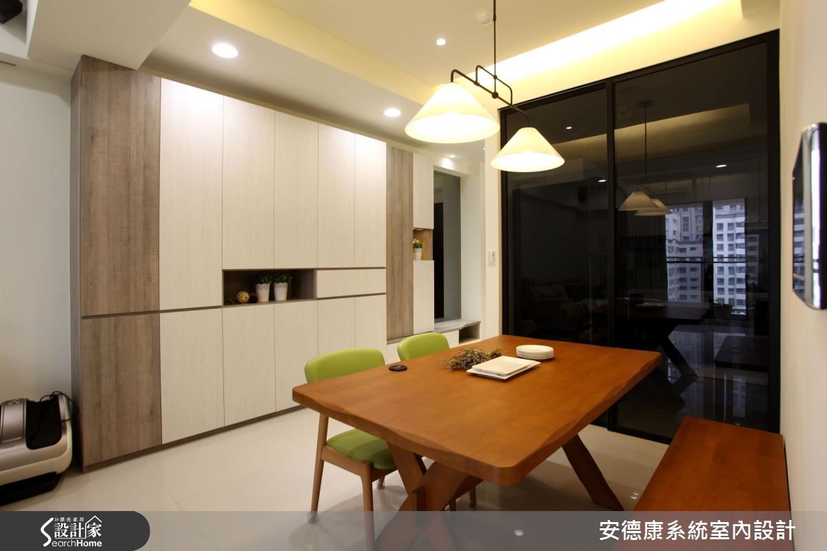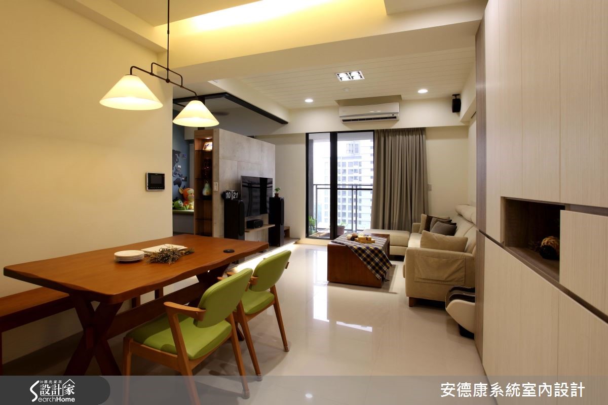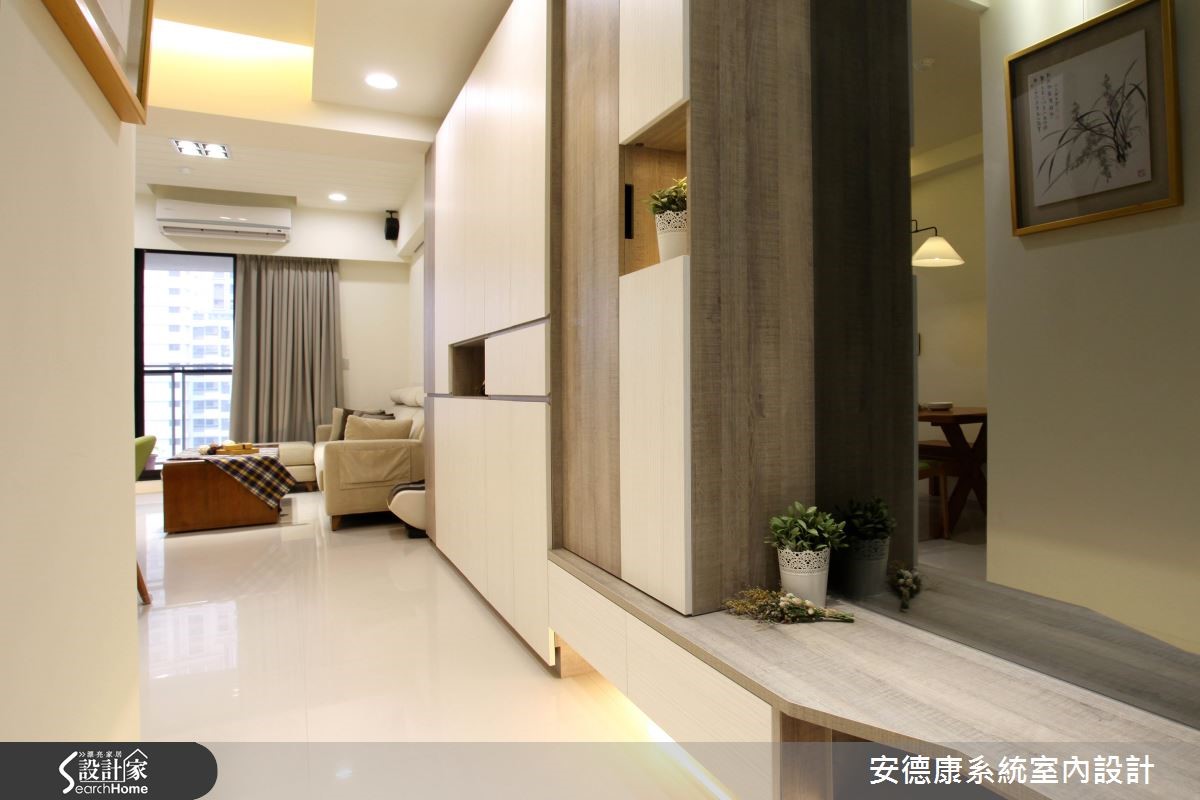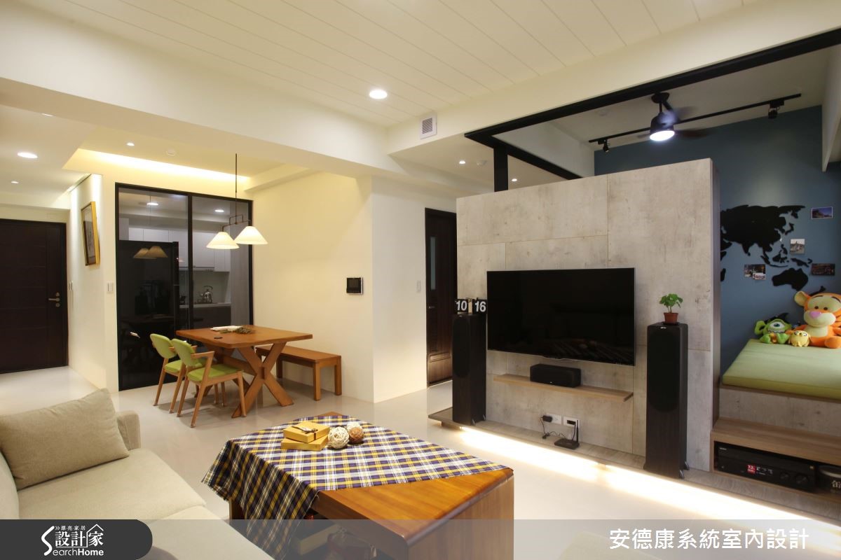 年轻夫妻购置市中心的屋案,坐拥优良的生活机能,惟预算有限,故在室内环境必须依靠设计达到扩容目的,并呈现放松舒适的氛围。设计团队以系统柜有效控制预算,达到风格机能兼顾的休闲美宅。【拆一房微调动线,放大公领域】为使83平方米的室内空间兼顾机能与美感,玄关设置镜面与大面积收纳柜,并将突兀的电箱隐于灰镜后方。让出电视墙后方的一间居室,當作开放多功能空间,同时动线微调,有效达成擴容目标。並改善原有的空调排水问题,拆除隔断重新配管。而电视墙与后方多功能房则以系统柜划分,半高设计具有视觉穿透性,也富含收纳机能。空间开阔的同时也能满足需求。而柜面运用仿清水模的质地,散发高冷质感,成为空间中吸人眼球的焦点。同時,设计师更看见未来需求,在地坪下方加装间照的多功能房预留铁件结构M以便加装拉门,方便作为游戏室或卧房。主卧延续机能设计,将卫浴、更衣间与梳妆台隐于柜门后方,空间回归简约大方。