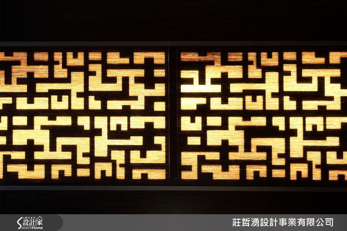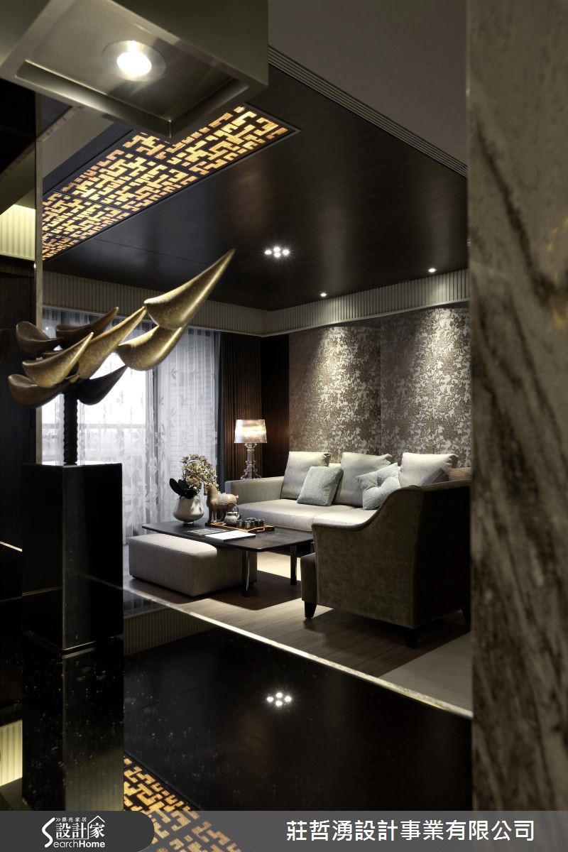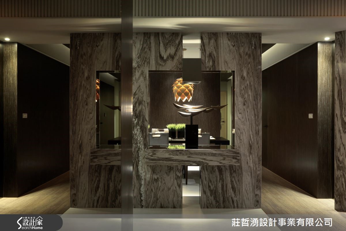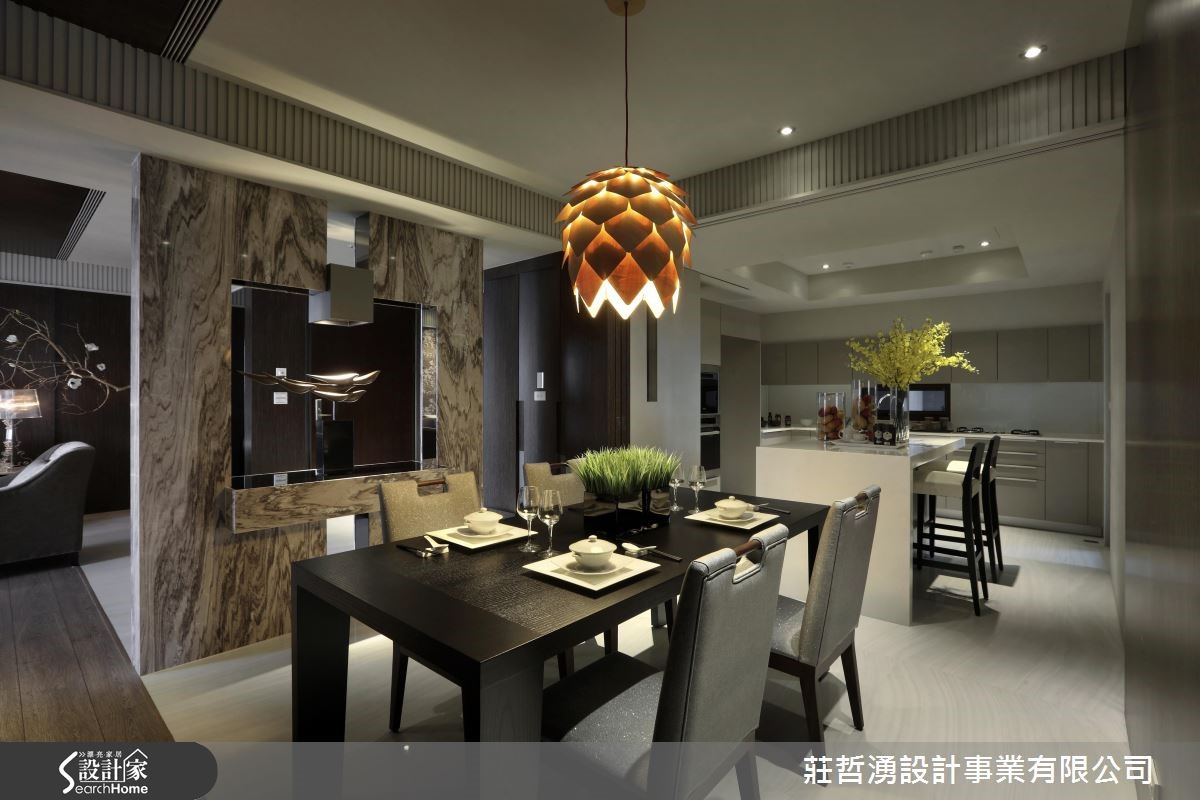 215平方米的开阔居宅中,以东方风格为主轴运用鲜明纹理的大理石,营造山水泼墨般的背景,同时纳入木制窗棂和花卉墙纸;新颖的现代家具,则传递崭新的风味。快跟着小编一起走进来看看吧。 【传统中式饰品,传递东方气韵】空间中以白色引申为"动",木质隐含"静",拼凑出动静相融的平衡比例,并让天花的对比色差呼应地坪材质。立面则经由山水大理石、深色木皮、花卉壁纸等素材,将中式元素加以转化,透过切割、转折等手法,丰富视觉层次,营造仿若山水画作的空间。 餐厨揉入了意大利白磁砖,呈现现代感利落格调;木地板则铺陈于起居空间,藉以表现温润之美,透过材质的多维使用,符合空间不同机能、方便维护。同时,在天花安排扁平出风口,巧妙解决了公共区的空调需求。