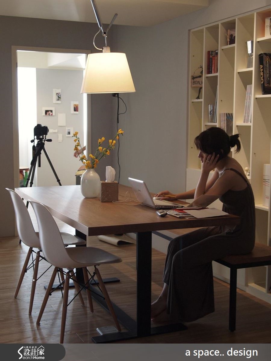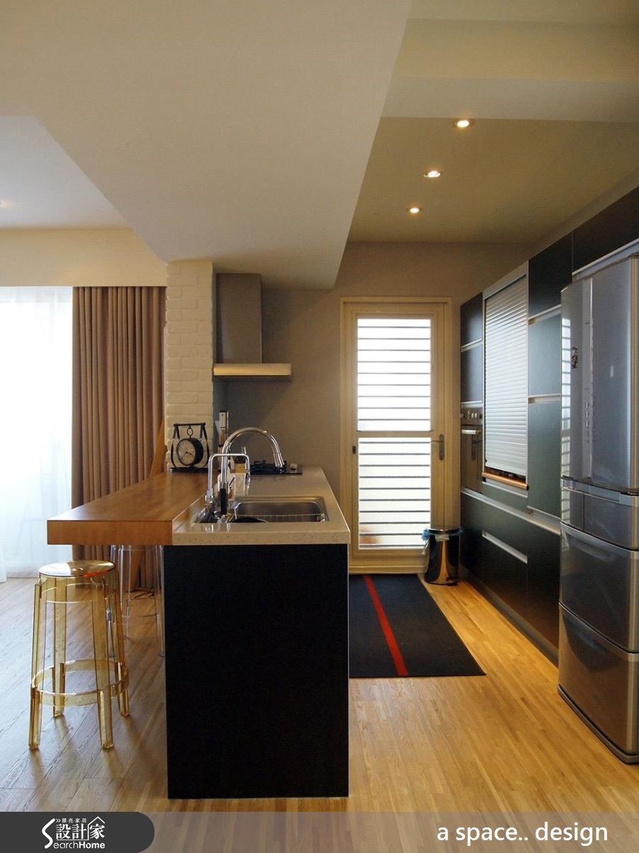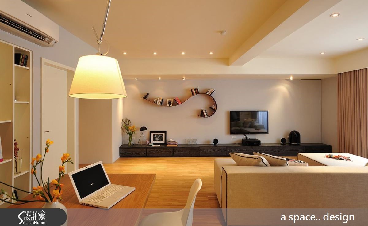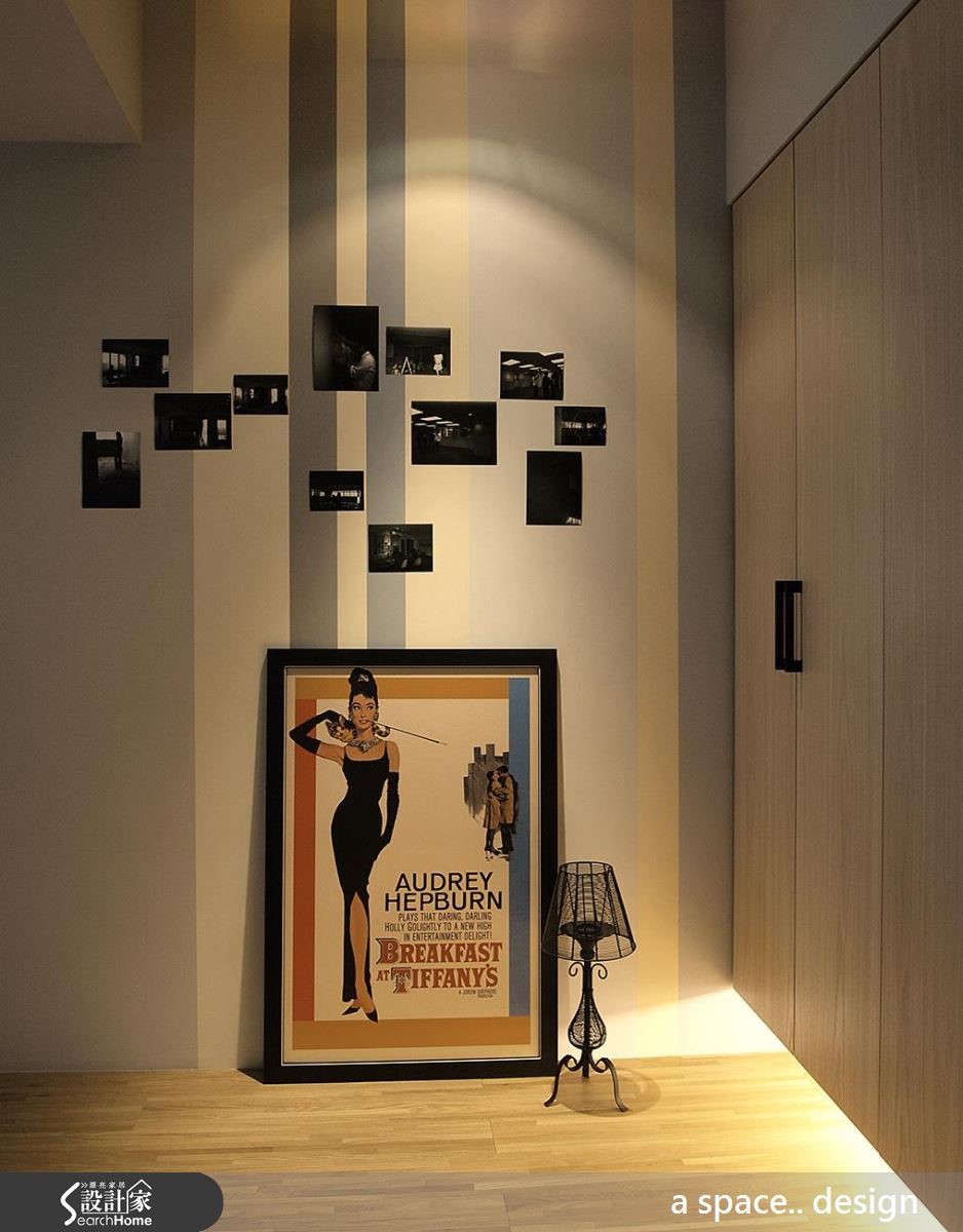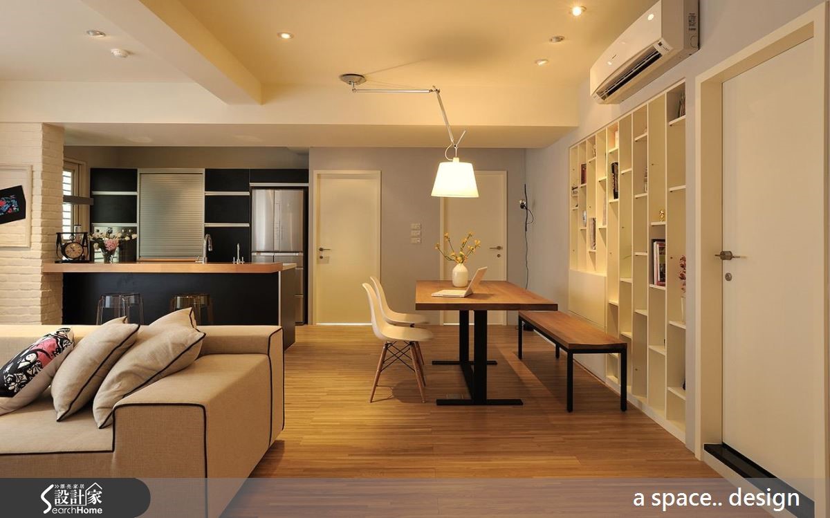 前身为30年屋龄的老旧商业空间,设计师重新架构格局、机能与管线,并拆解隔断,赋予开阔的公领域格局。再铺述大面积木地坪,融合高冷的灰蓝色点缀,平衡整体色彩温度,使居宅充满着休闲风韵味。【柜体满足收纳,又修饰设计美感】走进居宅,可见玄关墙面揉入渐层线条,并摆设画作及照片,使鞋柜呈轻盈的悬吊姿态,搭衬光源辅助照明,型塑备感纾压的情境画面。厅区电视墙采以白色背景为底,搭组独特流线的拱型书架,满足机能亦达到吸睛效果,凝聚墙面张力。同时,让木地板一路拓展,给予灰蓝色局部点缀,以及轻质简单的软件摆设,形成悠闲平衡的视觉。整体透过延伸通透的格局,达到串联动线的作用,让餐厅身兼书房功能,利用隔板的错落安排,达到陈列与收纳主题。厨房则安置于客厅后方,藉由黑色厨柜建构简洁块面,将人造石台面连结实木桌体,保留空间的双向交流。卧室为符合居者气质,在墙面挥洒清新色调,且顺应结构柱存在,作出空间领域的隐约界定,并以窗户导入自然光影,调和出整室的宜人暖度。