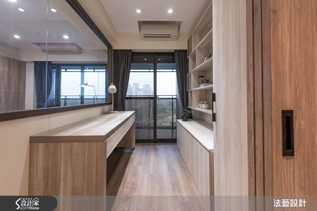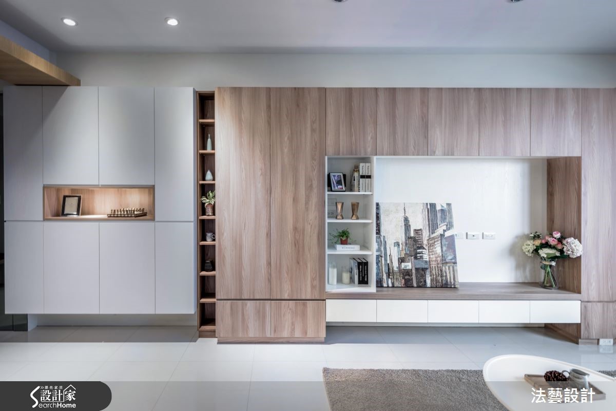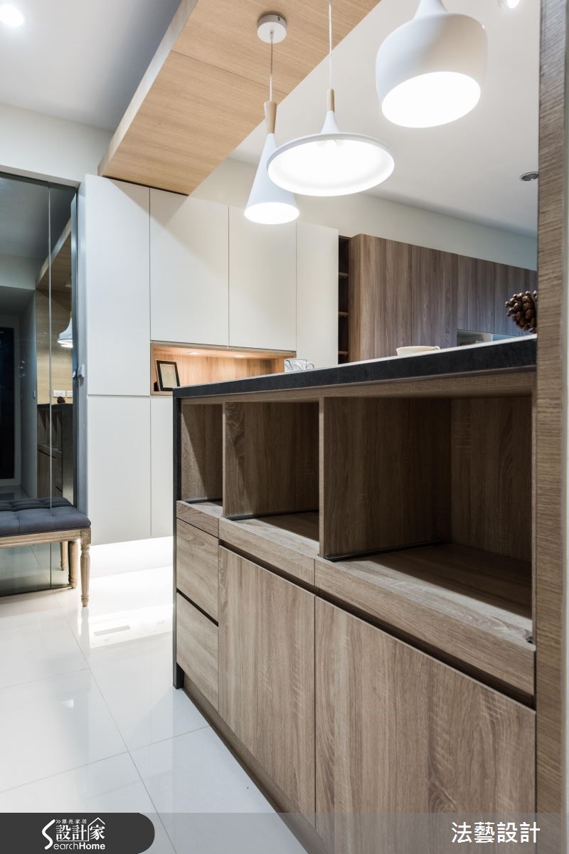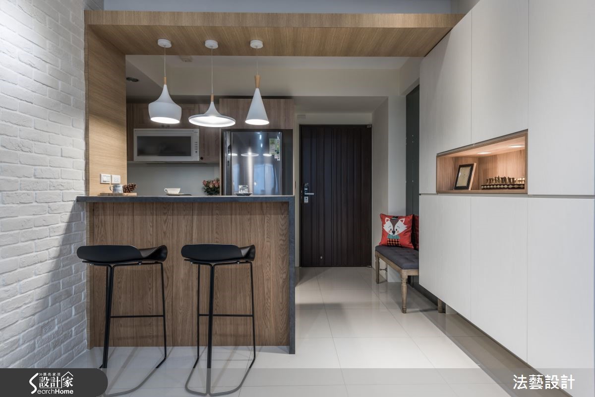 设计师依据小资家庭的有限预算,打造清爽的混搭风格,且在公共空间扩增一处书房空间及轻食吧台,满足家族成员们的生活需求,让一家子轻松坐拥质感空间,快跟着小编一起走进来看看吧!【精算家具与空间陈设比例】室内掌握木质的温润特性,借由温煦色调搭配、避免繁杂凌乱的感受,且精算柜体比例,将入门鞋柜、电视柜整合,塑造舒适自然的生活面貌,并配置画作取代电视聚焦视觉,同时保留电视管线。因应未来的弹性调整,客厅区一旁在采光好的位置摆放一张单人座沙发,搭配立灯照映,酝酿优雅的人文气息;书房则采大片玻璃隔断,型塑一览无遗的视野,并延续木质素材挹注朴实稳重感。书桌设计成滚轮活动式,可将桌体挪动,与书柜完全紧密贴合,让出作为客房使用时的宽阔空间。餐桌改为吧台形式,也身兼收纳机能,达到双重机能满足。并以文化石铺述墙面,加入木作板材延伸,搭饰三盏造型主灯,空间散发出独到美学!