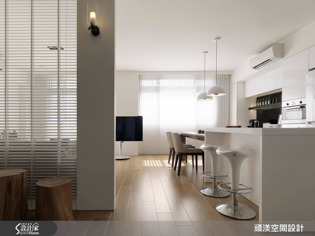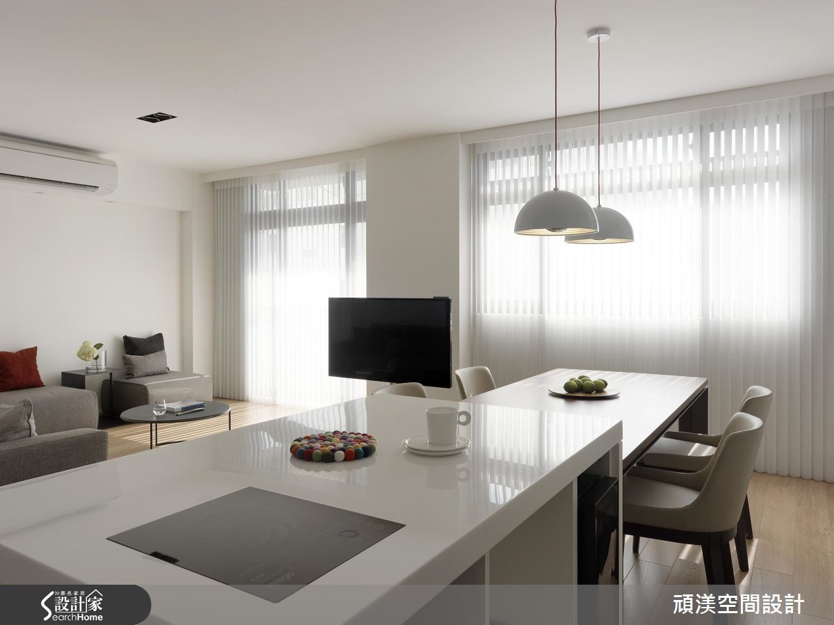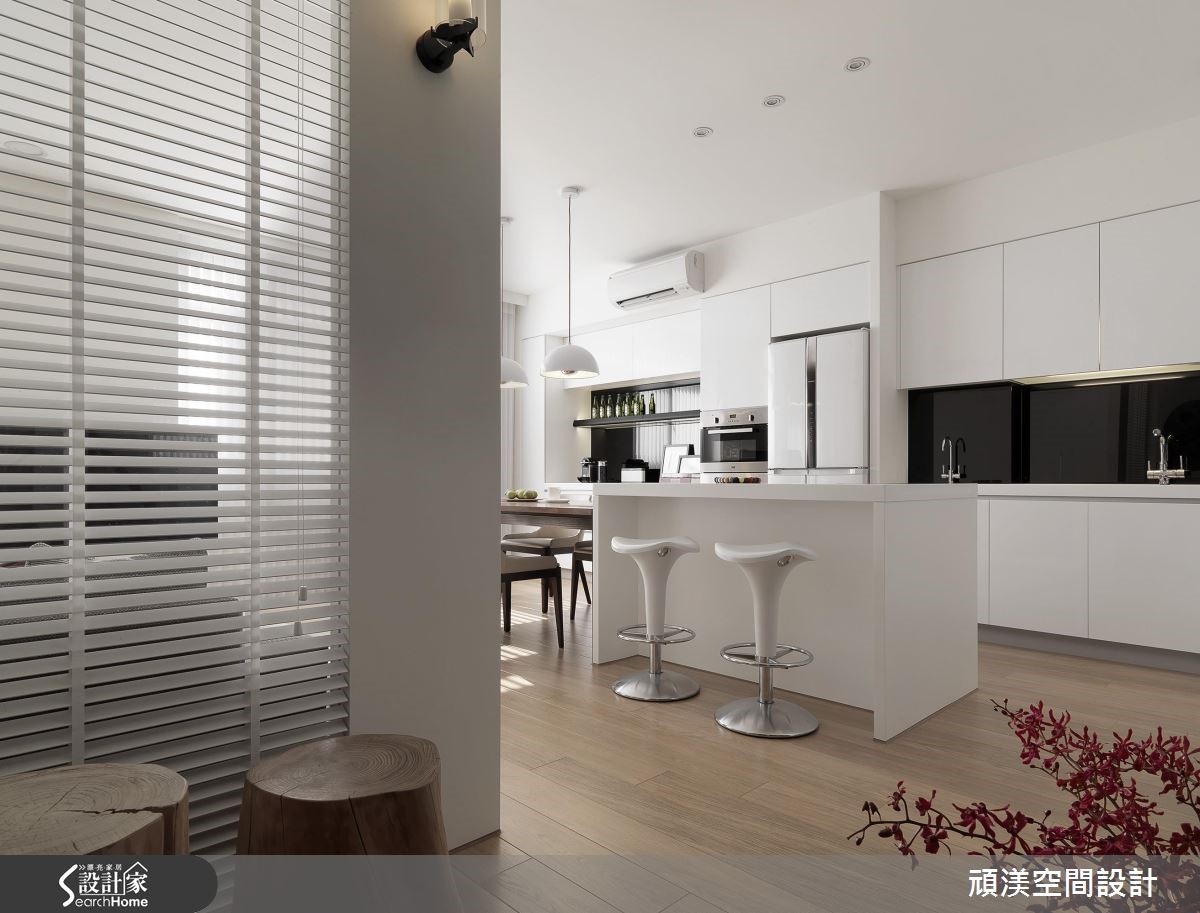 4层楼的独栋楼空间,设计师导入明亮愉悦的采光,并以住商合一概念规划整体,不仅结合接洽区、商品展示功能,也包含了私人休憩区域,在住宅和商用需求的完美整合下,注入流畅的复合式生活机能,快跟着小编一起走进来看看吧! 【展示机能收于立面,空间线条完整】空间引用开放式布局,以白色调营造轻盈基底,并藉由家饰局部跳色,建构简约时尚的生活画面。同时给予流畅无碍的动线,将整排厨具清爽收整,空间更为俐落。再配置厨房长型中岛连结木作餐桌,不仅供做料理使用,也成为接待社交场合。室内透过大面窗户引入柔和日光,隔屏亦选用玻璃建材搭配铁艺框架,布置百叶窗帘筛落光影。不仅保有通透视线,也柔化整个空间,弥漫着舒适不刺眼的和煦暖度。私领域则延续自然光的美好,在清浅的色彩基调中,藉由跳色抱枕、绿色植栽,展现率性自然的生活感。