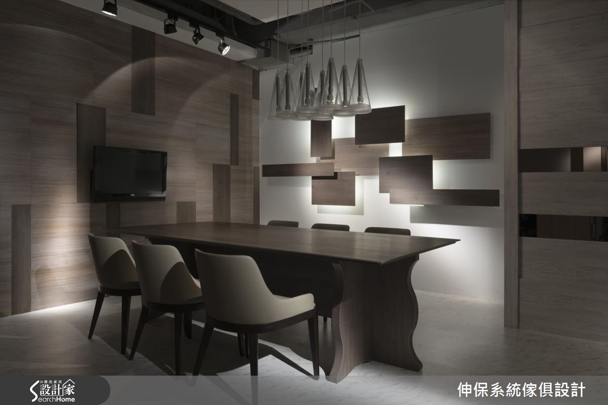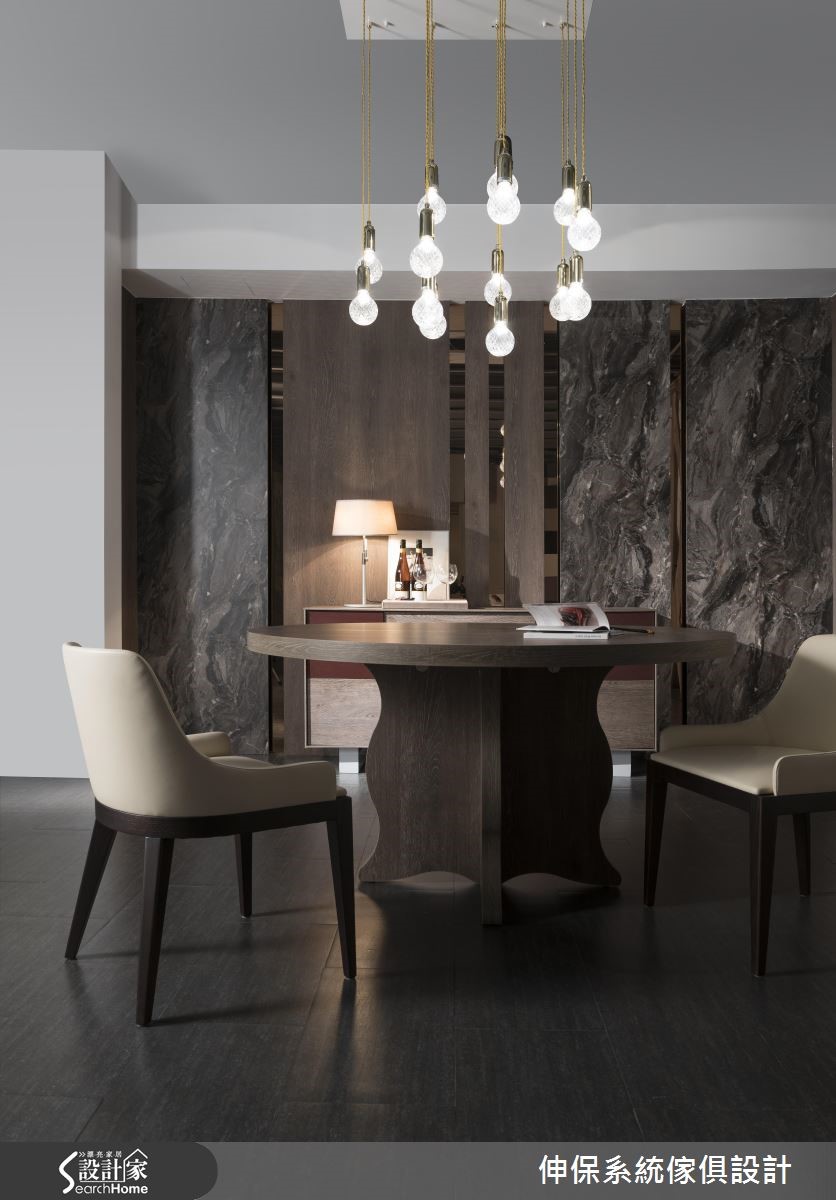打破系统柜单调、仅供收纳的印象,设计团队开创水波、石材、皮革等纹理,为外观增加崭新的选择性,并透过系统柜展示中心将完整的居家空间搬进展间,并结合独特、新颖的材质与花纹,让客人得以透过实际触摸与观看,选择适合自家的柜体。【纹理与色彩,成就家居风格魅力】展示中心以客厅、餐厅、卧房等区块划分,精准的示范了各类型花纹,无论是创新的大理石、皮革与水波纹理,或是经典的木色质感,皆可依屋主需求营造沉稳、富有质感的风格。客厅电视墙采用安格拉大理石纹搭配黑色钢烤板材,打造大器锋芒;时尚感的皮纹为壁面或柜体创造轻奢质感。而时尚的水波纹设计可依据空间不同,以海蓝与酒红色调创造放松或生机盎然的效果。经典的木纹有着众多色调、木种,呈现自然美感。